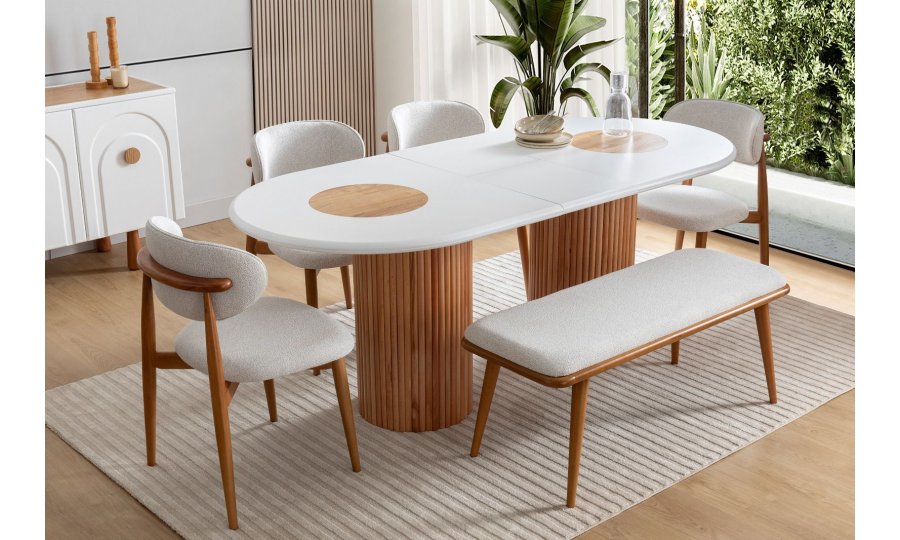 1ad. konsol, 1ad. konsol aynası, 1ad.açılır masa ve 6ad. sandalyeden oluşmaktadır.