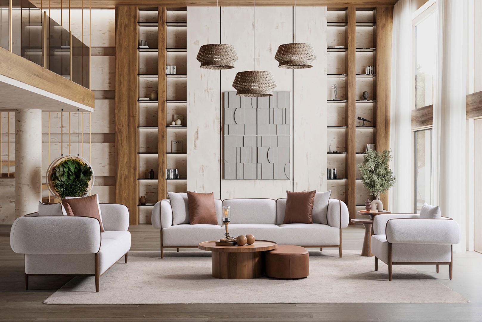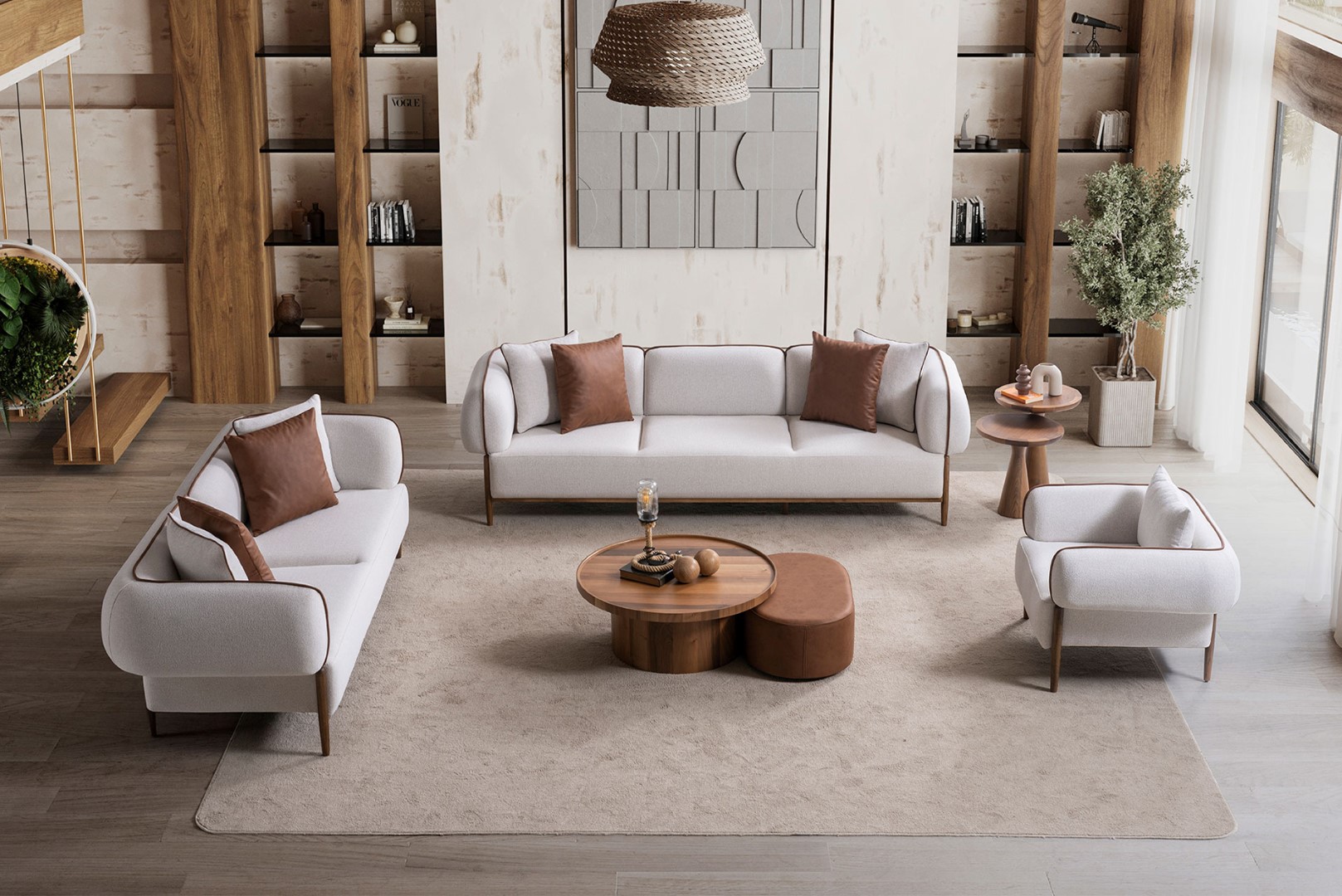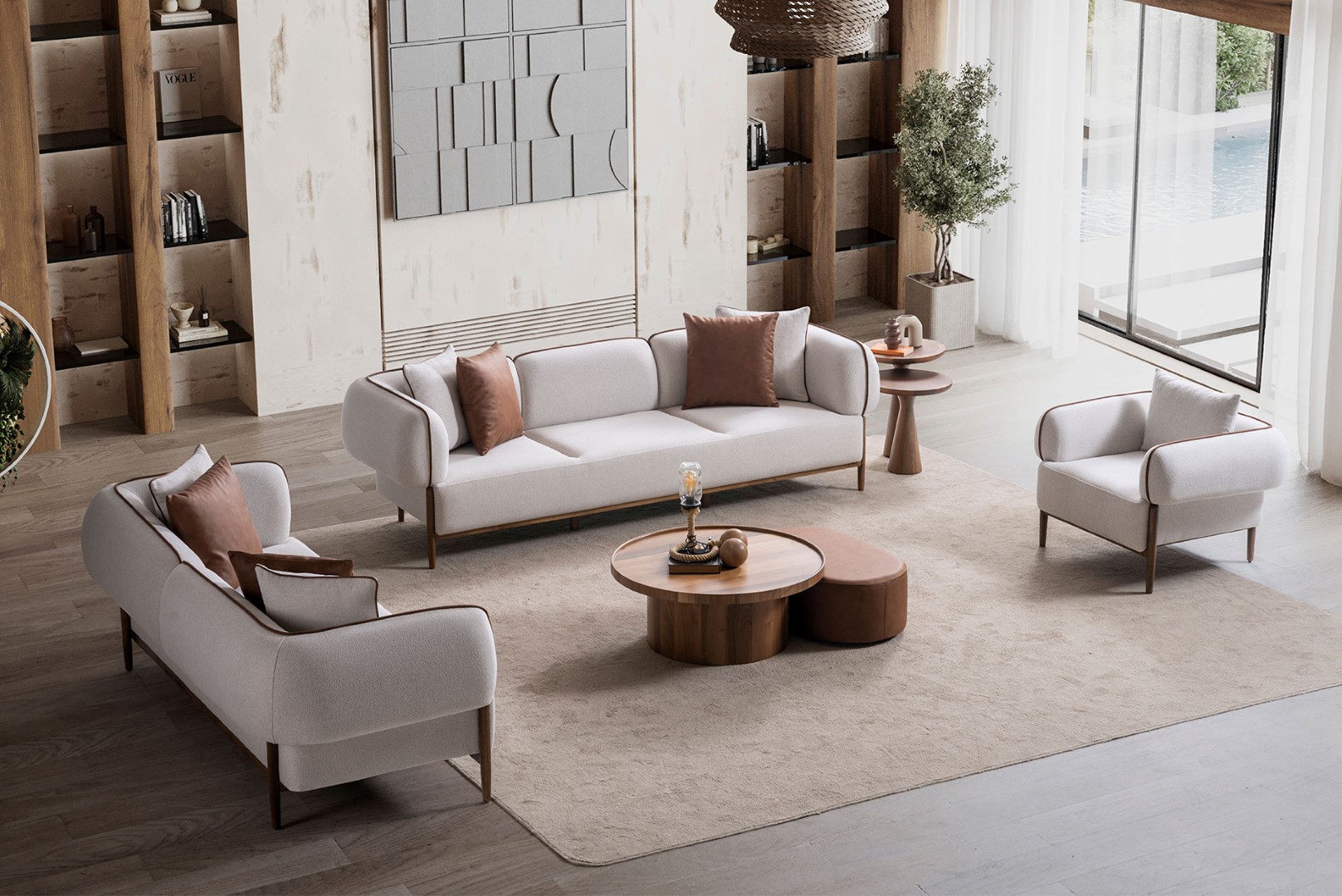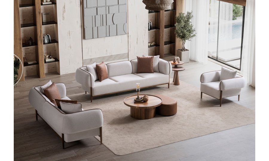 1ad.dörtlü koltuk ,1ad. üçlü koltuk ve 1ad. berjerden oluşmaktadır. Orta sehpa ve puf opsiyonel olarak satışa sunulmuştur.