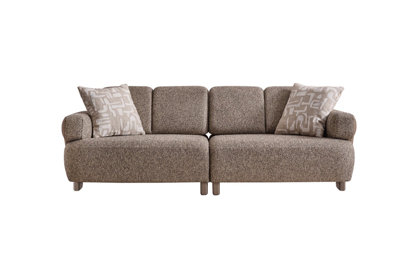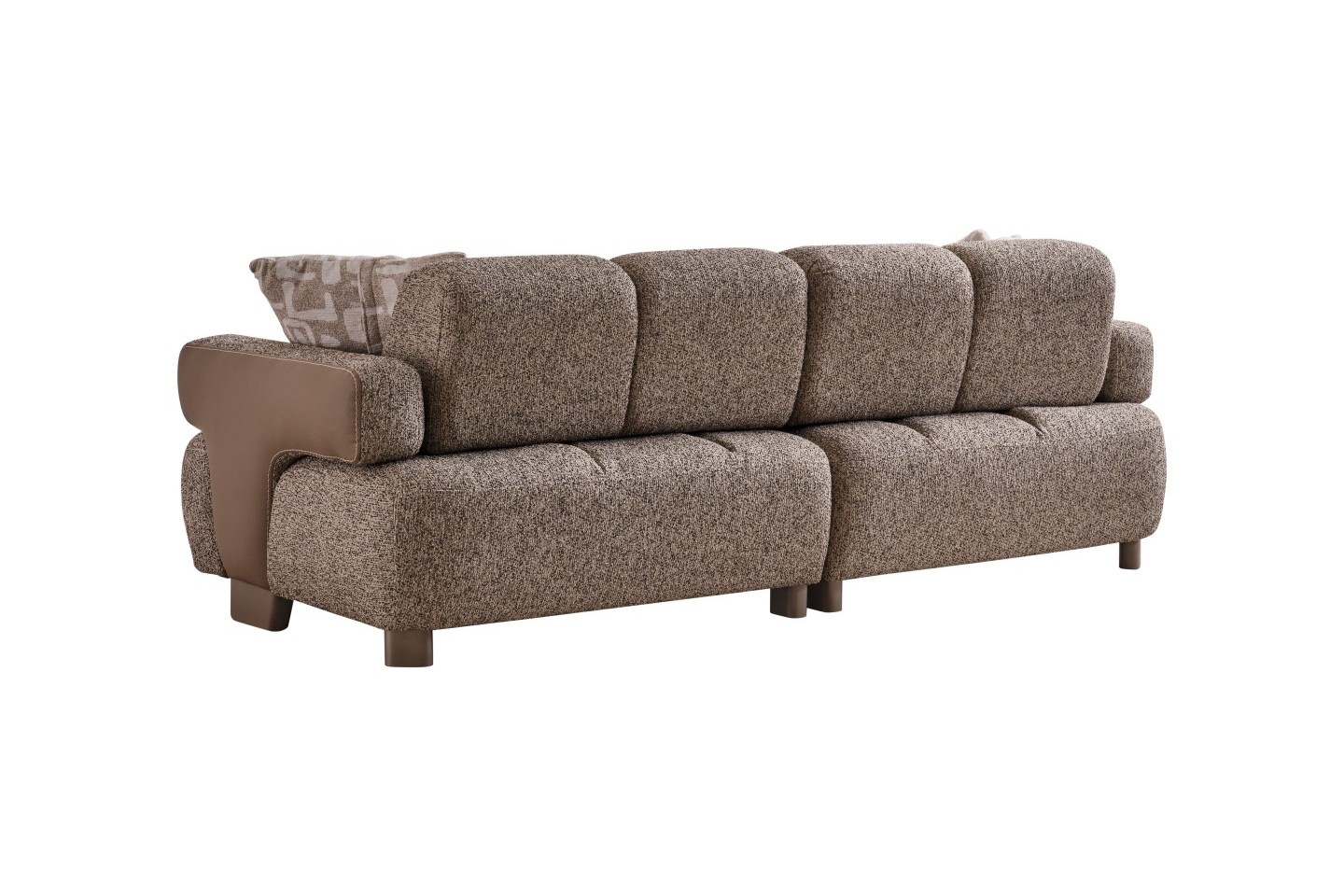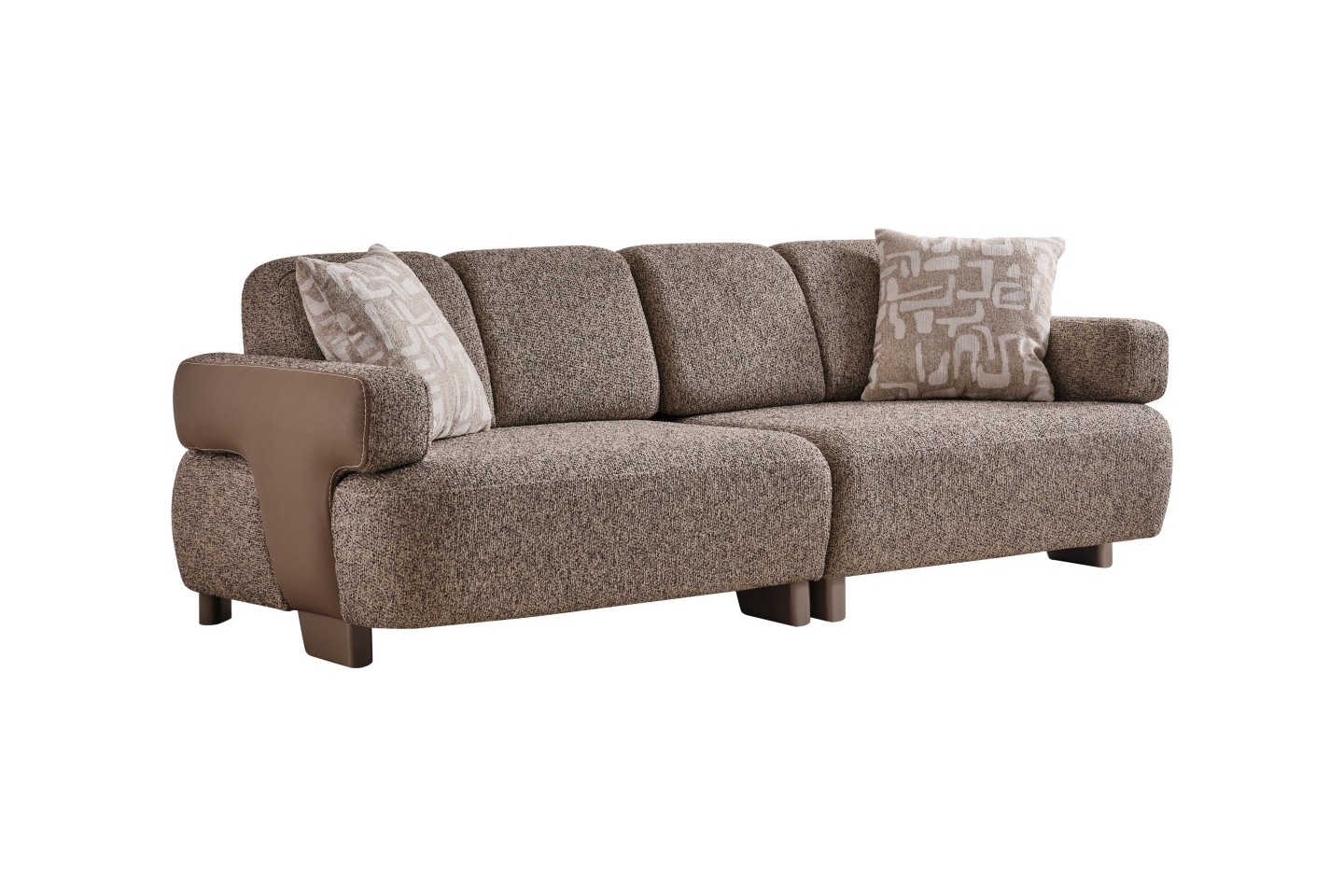 • Üst Düzey Konfor: Geniş oturum alanı ve dolgun sırt minderleri, uzun süreli oturumlarda ergonomik bir destek sağlar. Silindir formlu bel destek yastıkları ve geometrik desenli kırlentler, konforu görsel bir zenginlikle tamamlar.