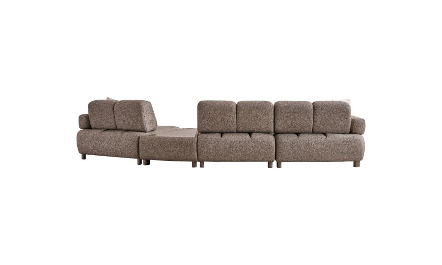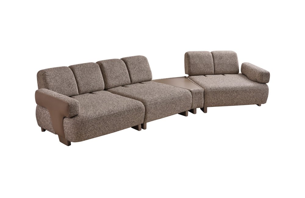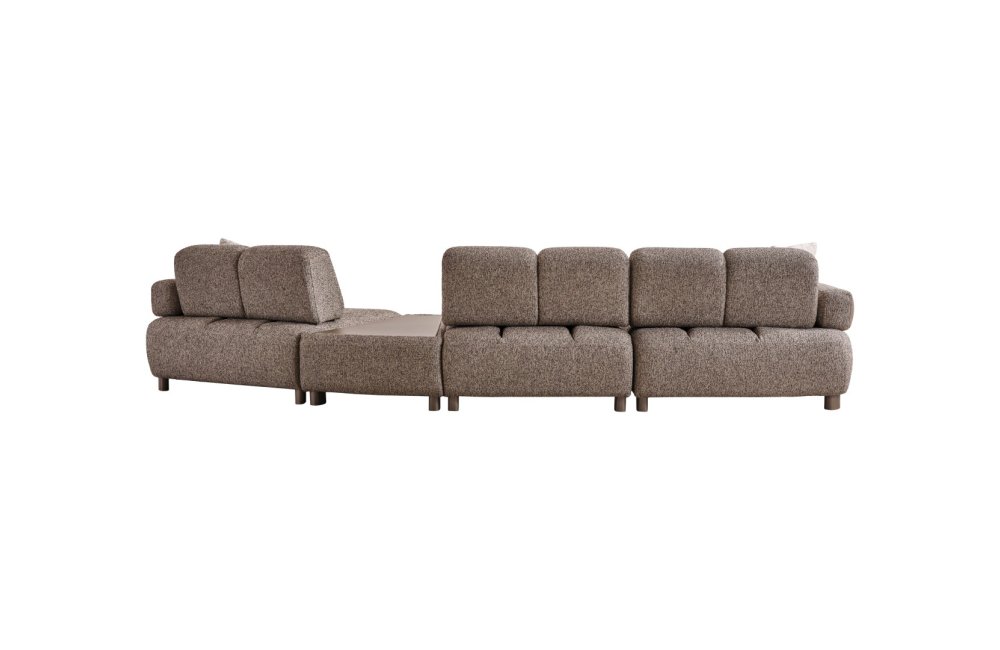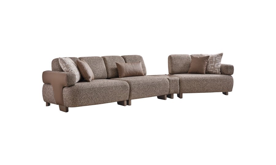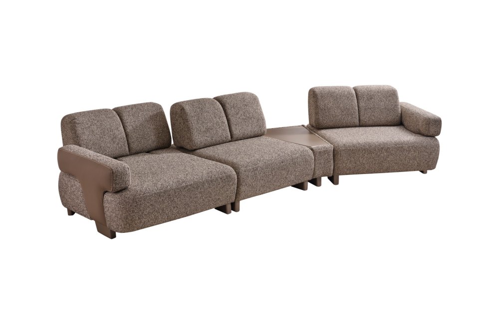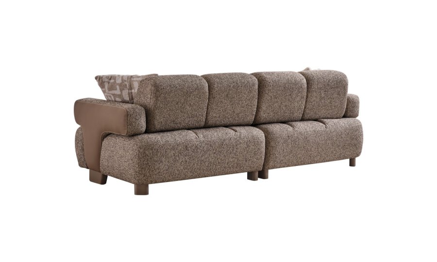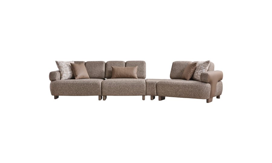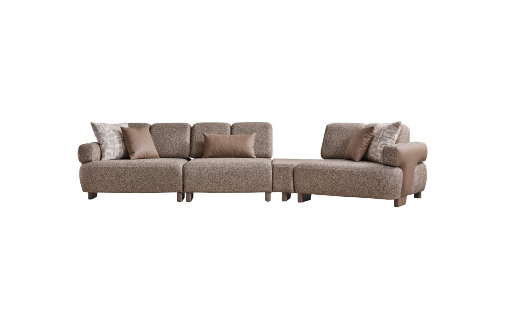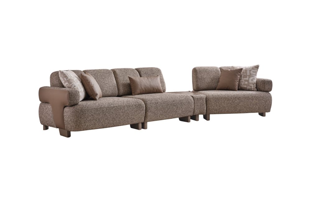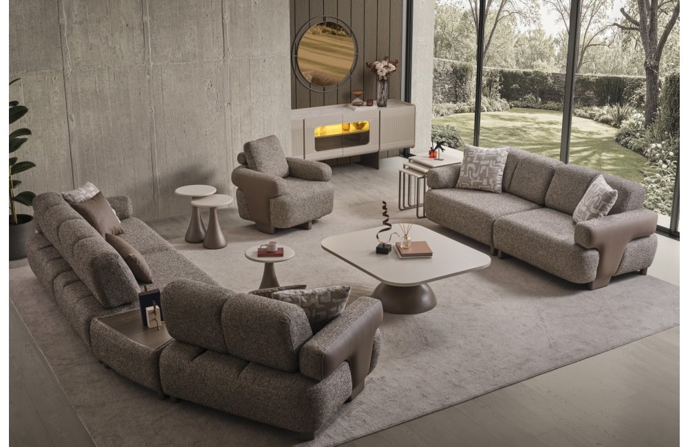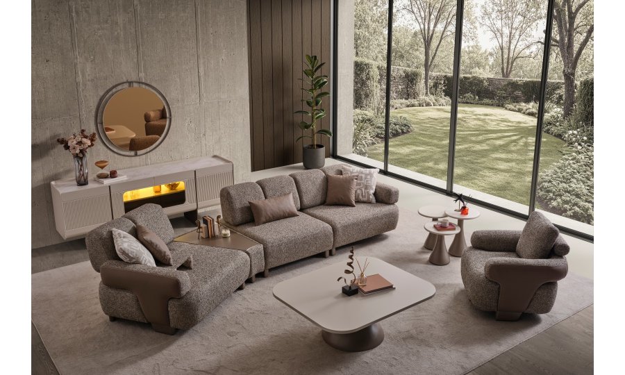 • Modüler ve Fonksiyonel Çözümler: Takım, geniş salonlar için ahşap sehpa modülüyle zenginleştirilmiş köşe formunda veya bağımsız üçlü koltuklar şeklinde kurgulanabilir. Entegre sehpa detayı, kahve keyfiniz veya dekoratif objeleriniz için şık bir alan sunar.