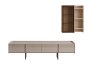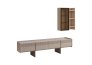 • Asimetrik Üst Modül: Takımla uyumlu duvar modülü, füme camlı kapaklı bölümü ve açık raf sistemiyle hem aksesuarlarınız için şık bir alan yaratır hem de duvarda dinamik bir duruş sergiler.