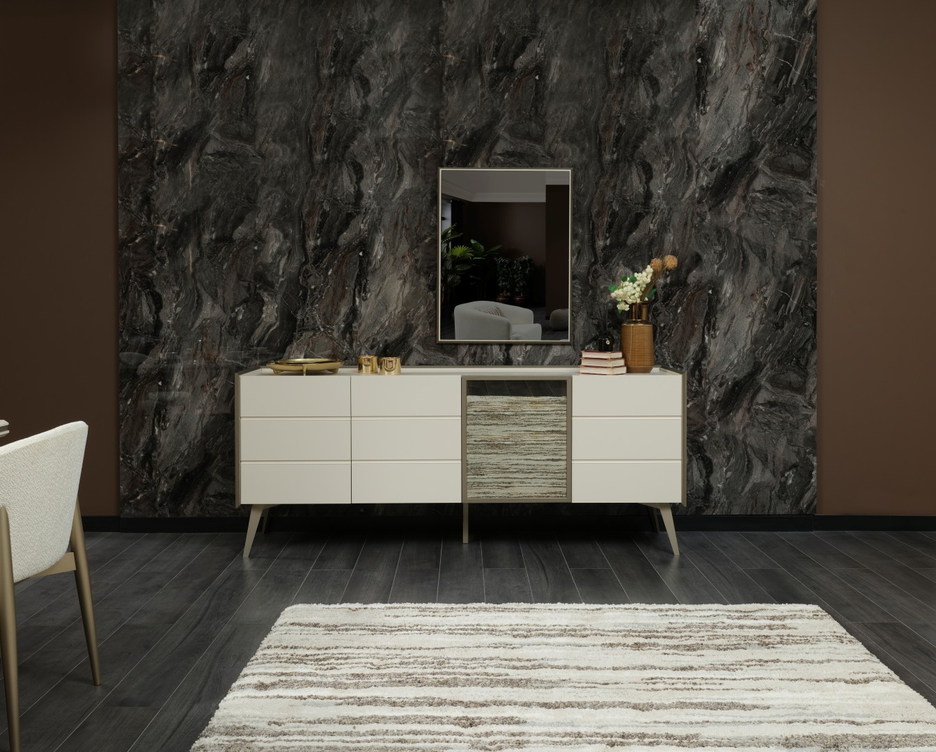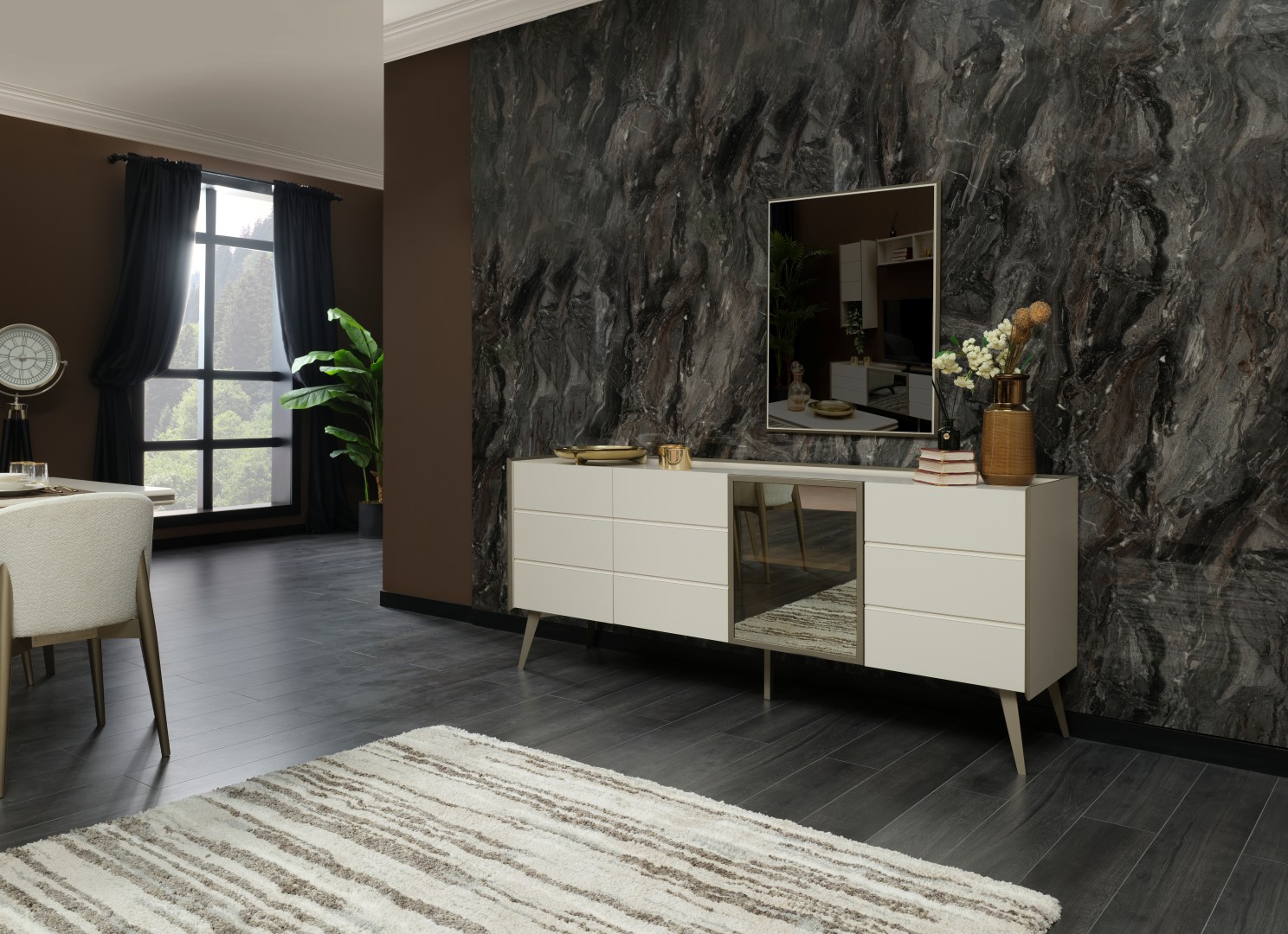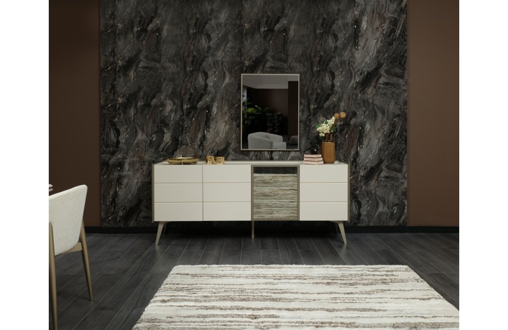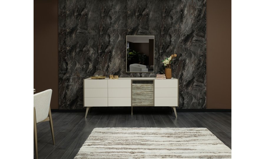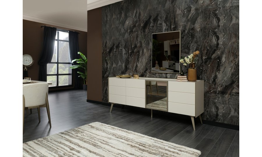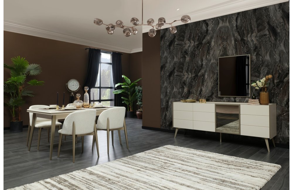 1 ad. konsol (aynalı), 1 ad. masa ve 6 ad. sandalyeden oluşmaktadır.