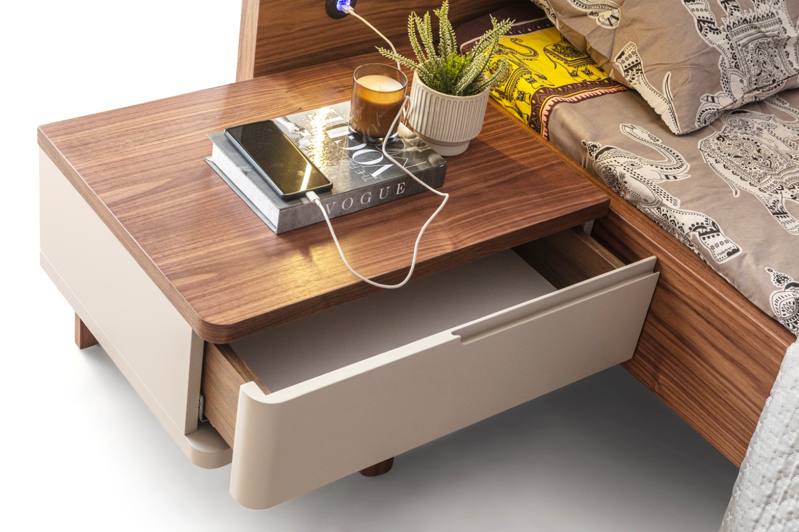 • Ahşap ayak komodin ve şifonyer