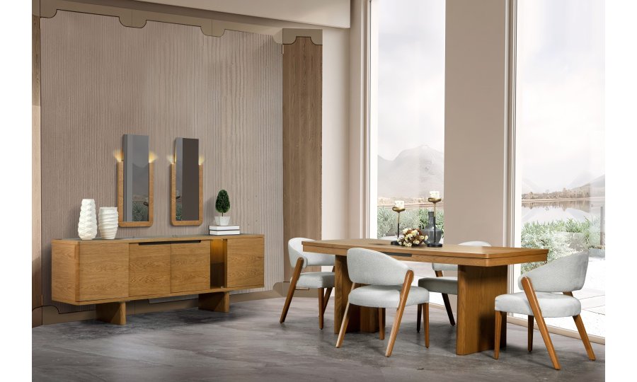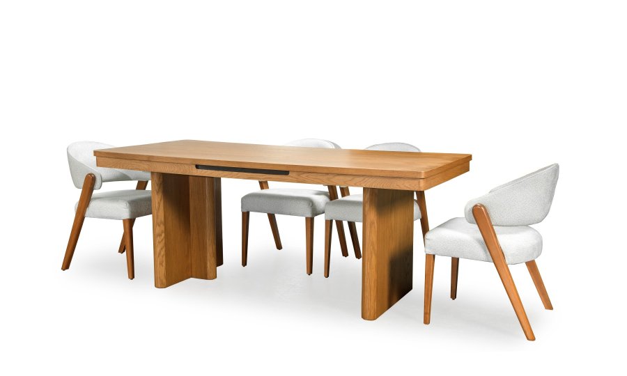 • Geniş ve Sağlam Yemek Masası: Kalabalık aile yemekleri için ideal genişlikte tasarlanan masa, dayanıklı üst yüzeyi ve şık ayak yapısıyla dikkat çeker.