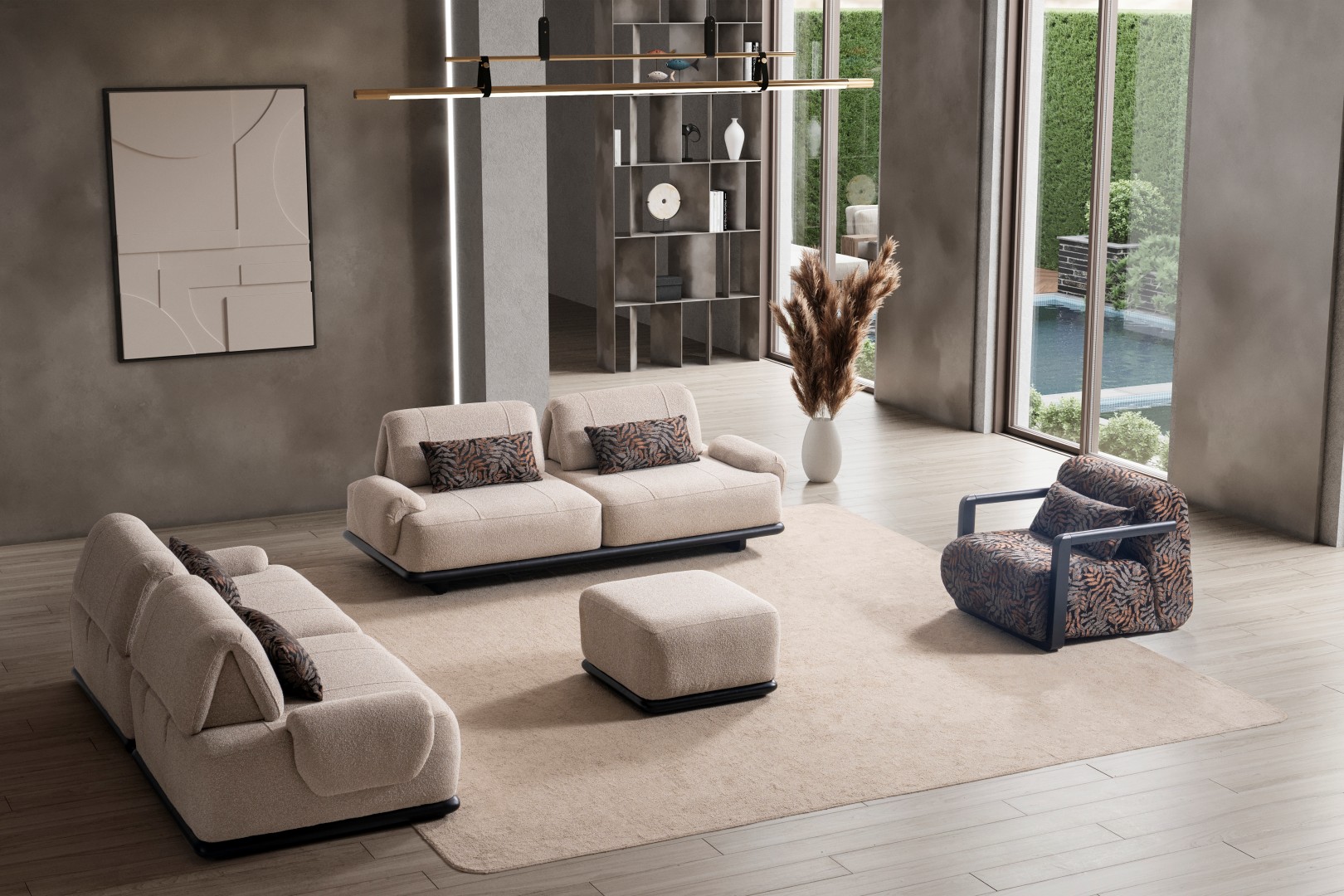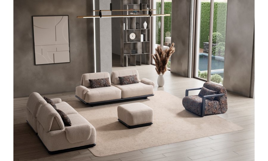 • Modüler Şıklık: Malta serisi; üçlü kanepe, berjer ve orta sehpa seçenekleriyle her mekana uyum sağlayacak şekilde kombinlenebilir.
