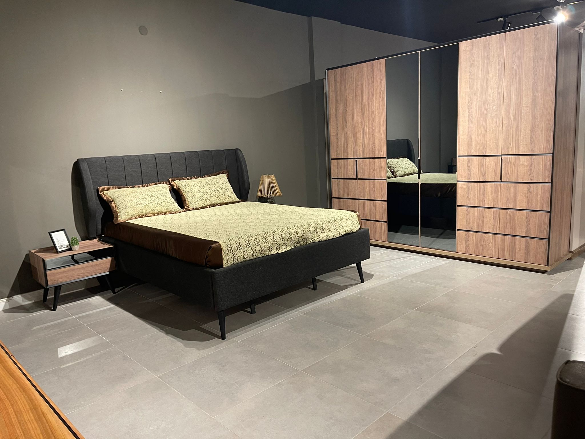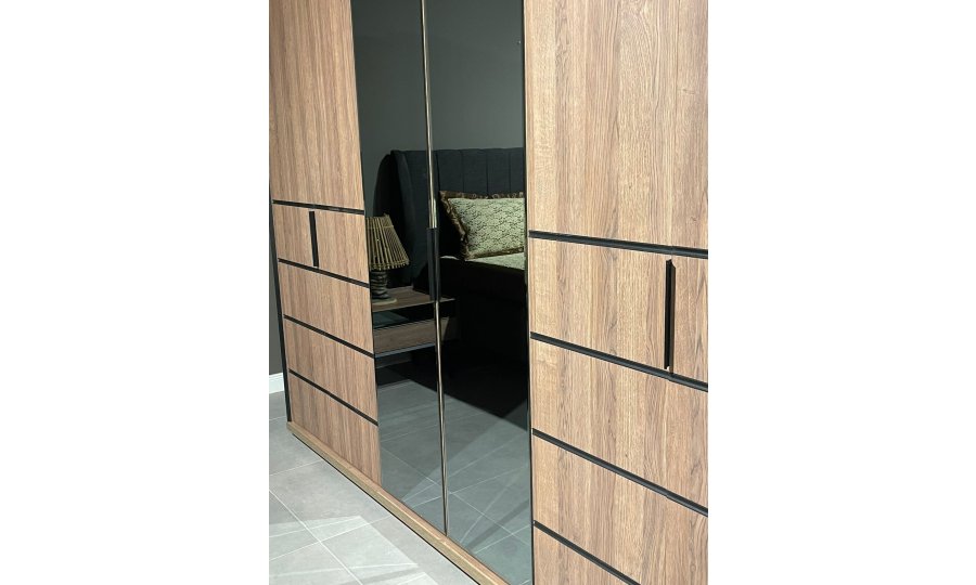 1ad. dolap, 1ad. bazalı karyola, 1ad. şifonyer(aynalı), 2ad. komodin ve 1ad. puftan oluşmaktadır.