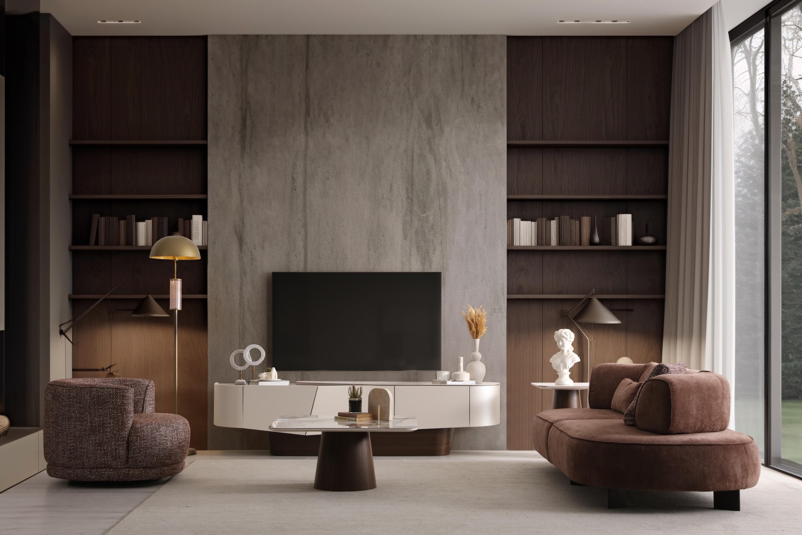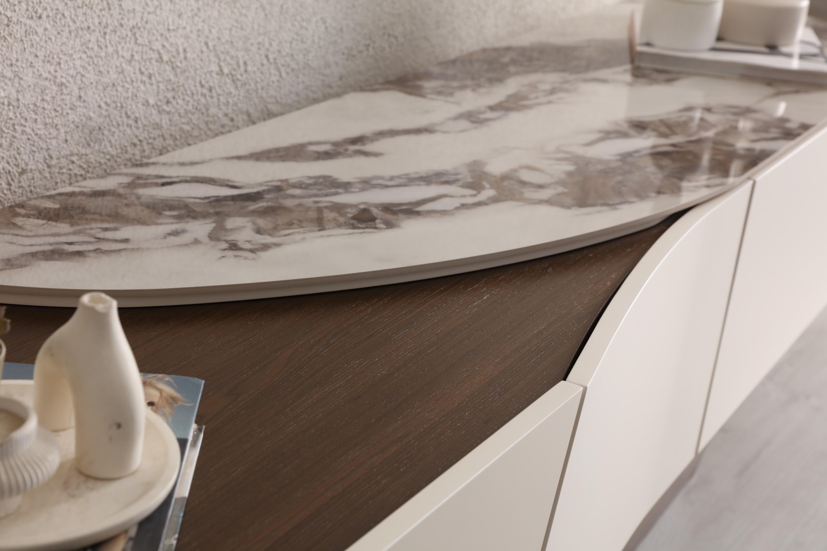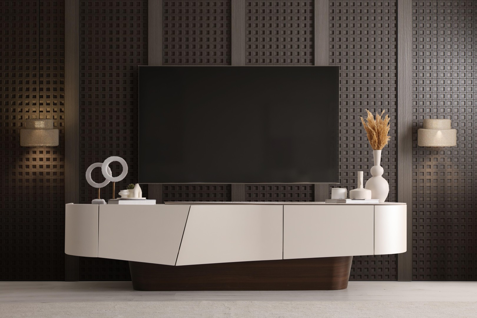 • Yumuşatılmış Köşe Detayları: Ovalleştirilmiş kenarlar, TV ünitesine akışkan ve modern bir silüet kazandırır.