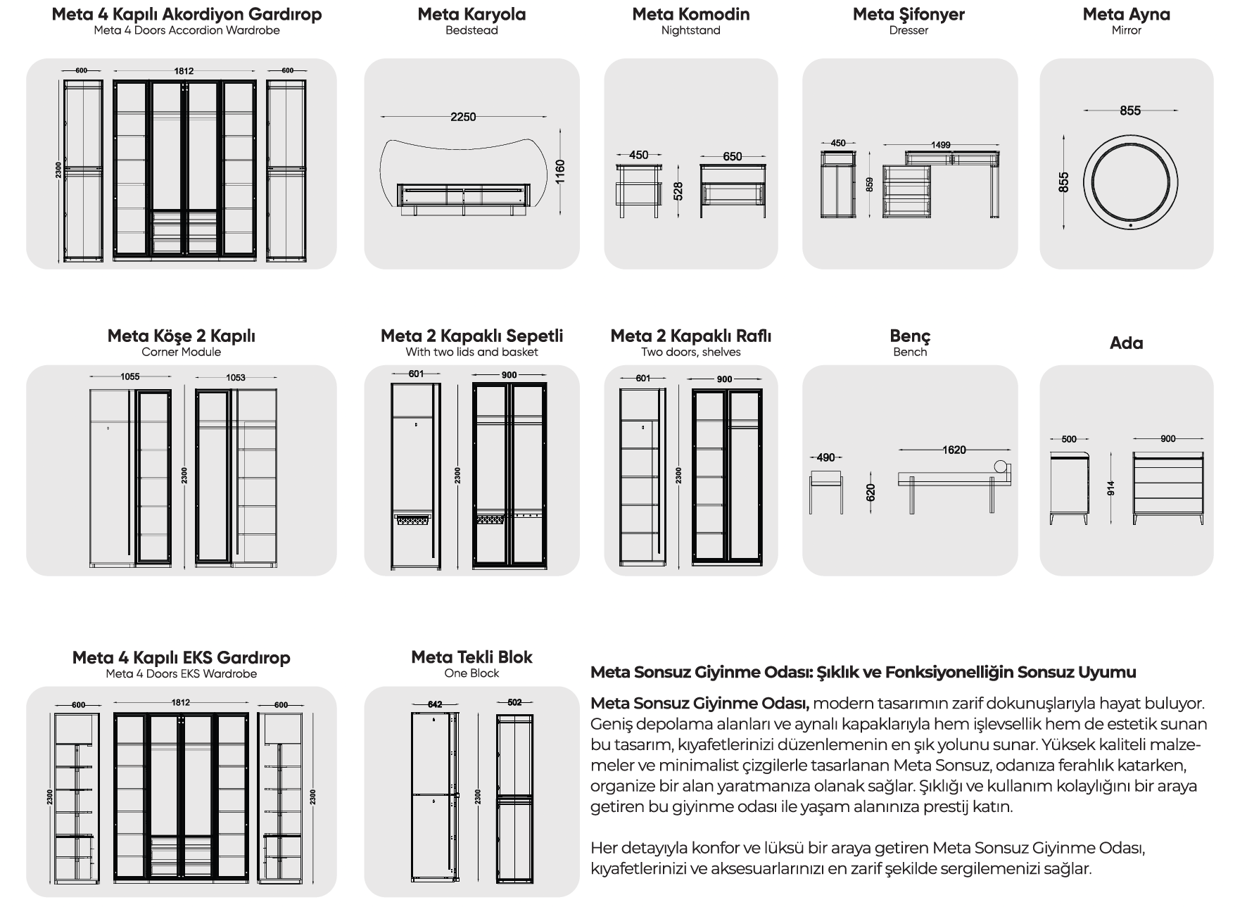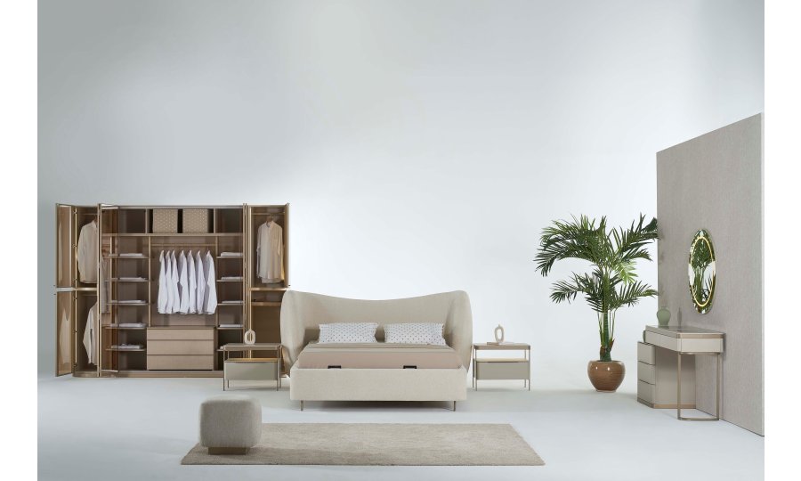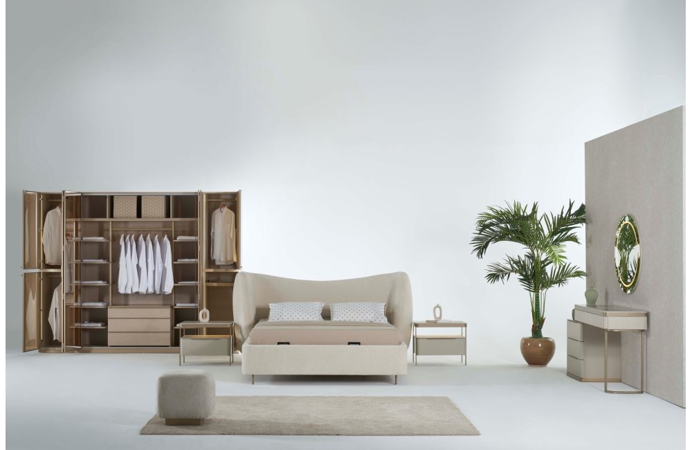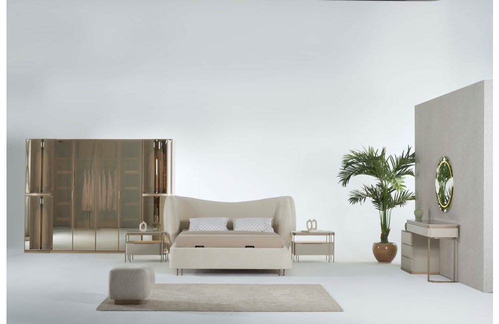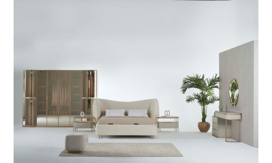 1 ad. dolap (4+1+1 cam kapak), 1 ad. bazalı karyola, 1 ad. şifonyer (aynalı) ve 2 ad. komodinden oluşmaktadır.