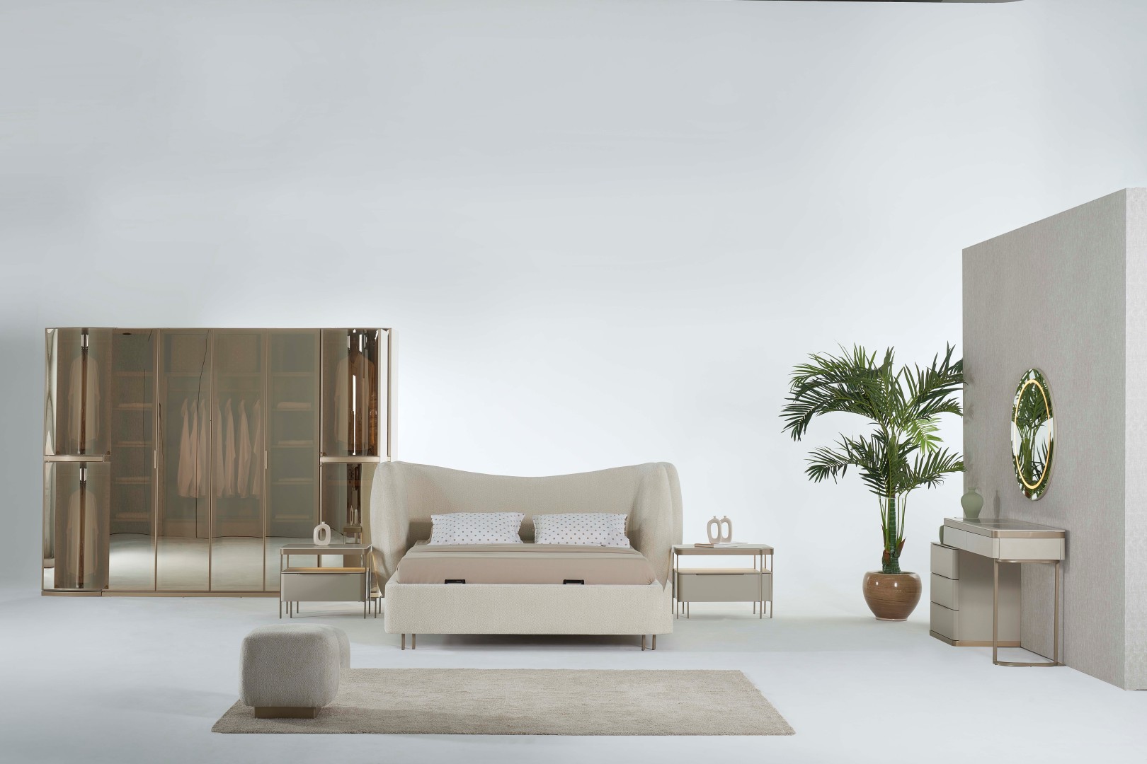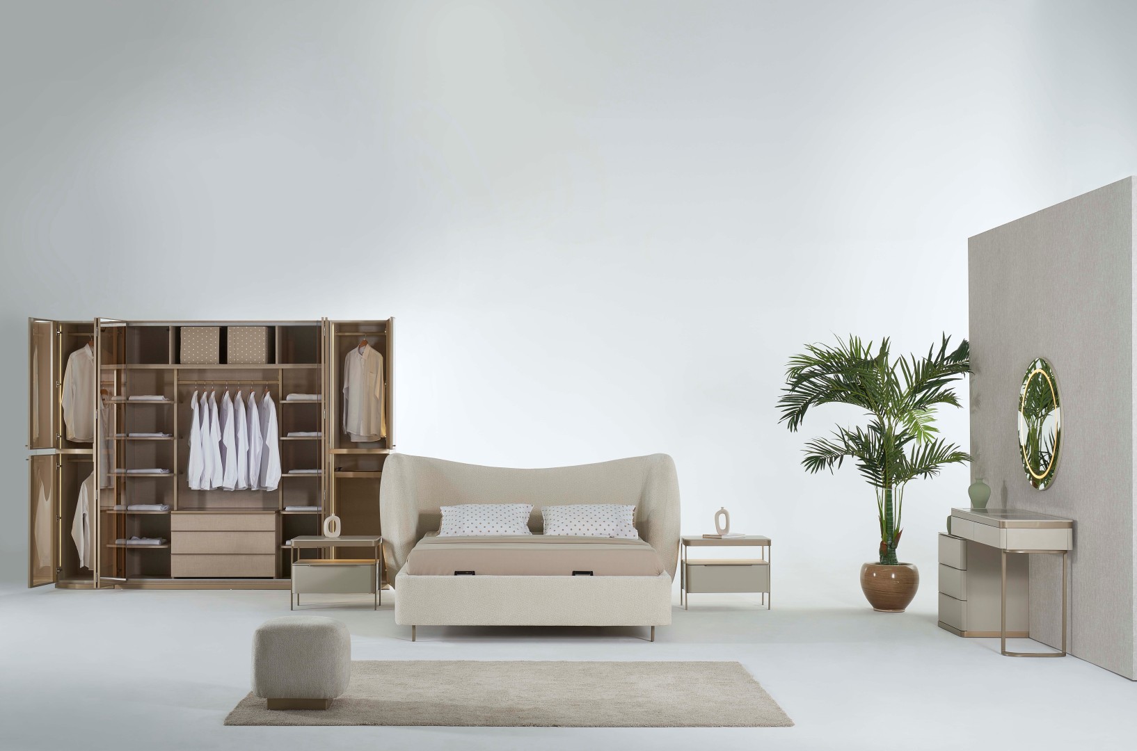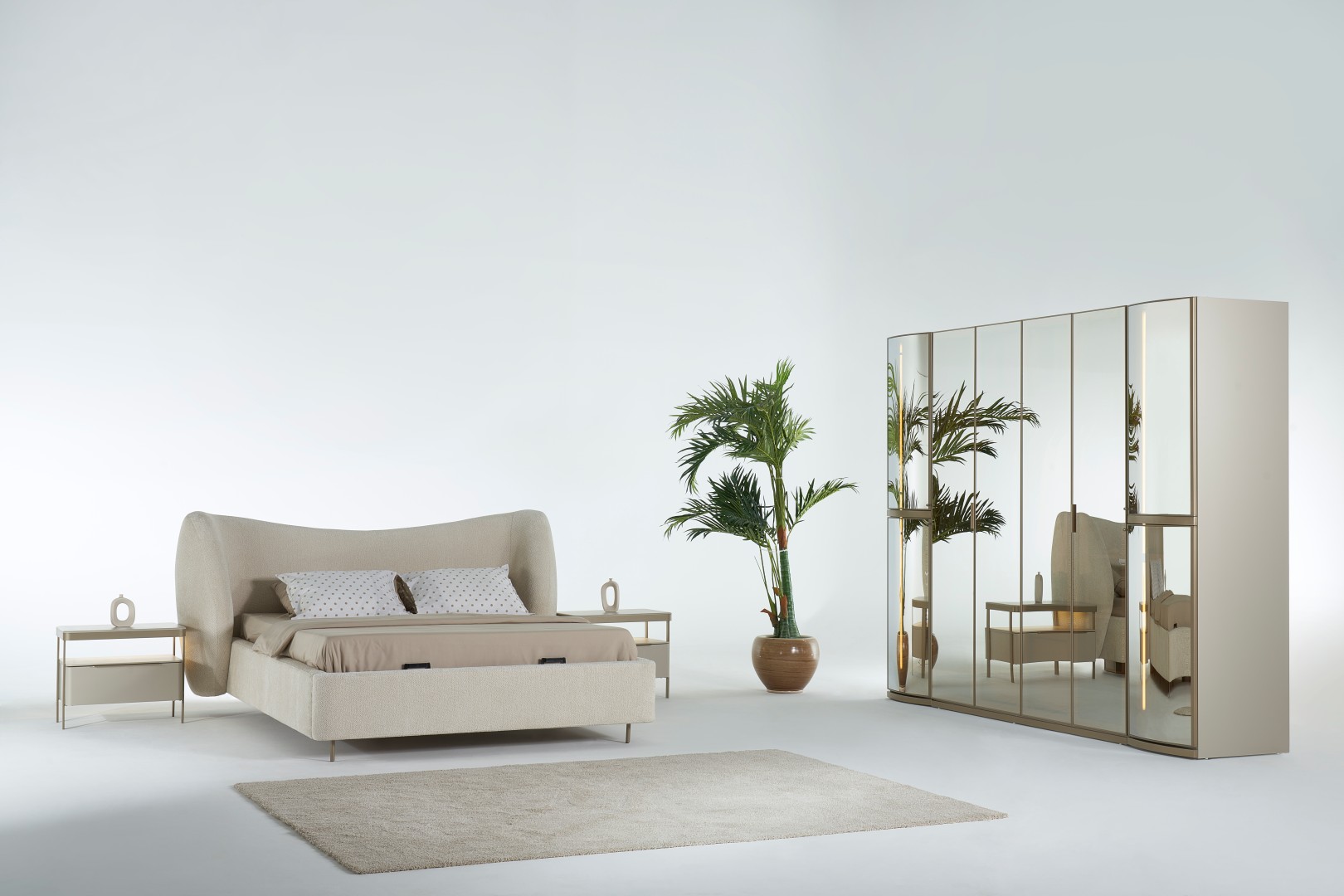 1 ad. dolap (4+1+1 cam kapak), 1 ad. bazalı karyola, 1 ad. şifonyer (aynalı) ve 2 ad. komodinden oluşmaktadır.