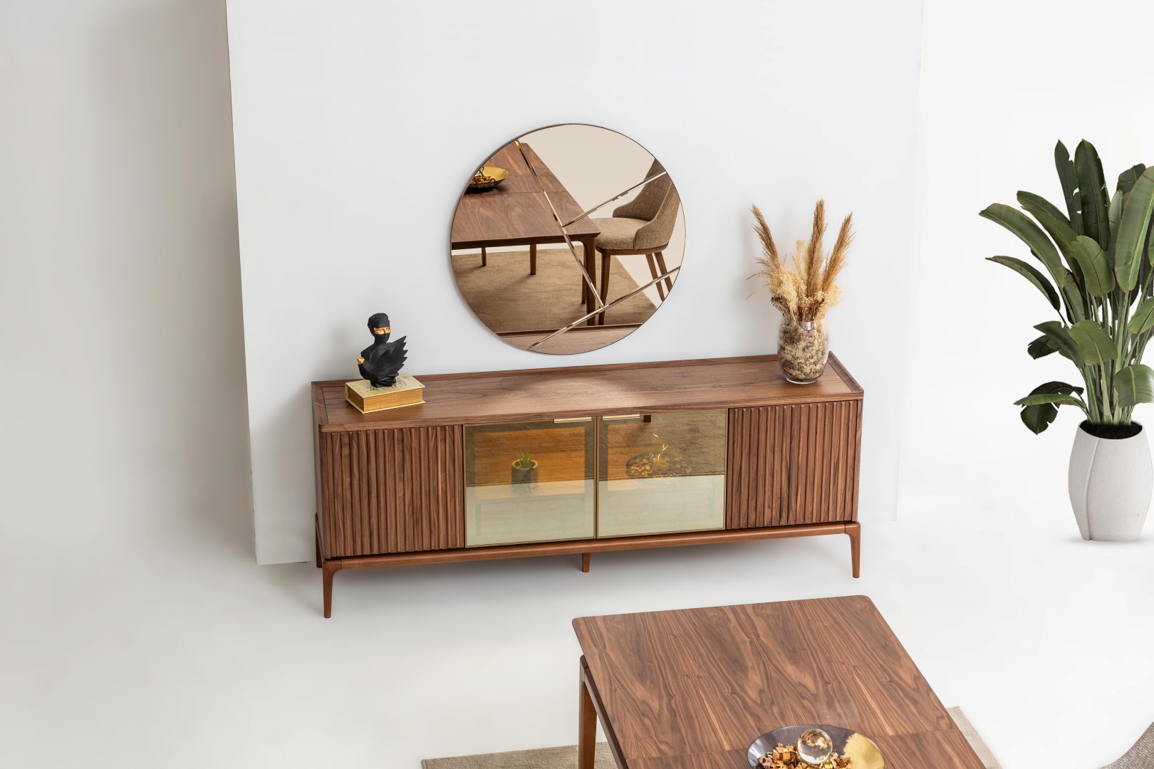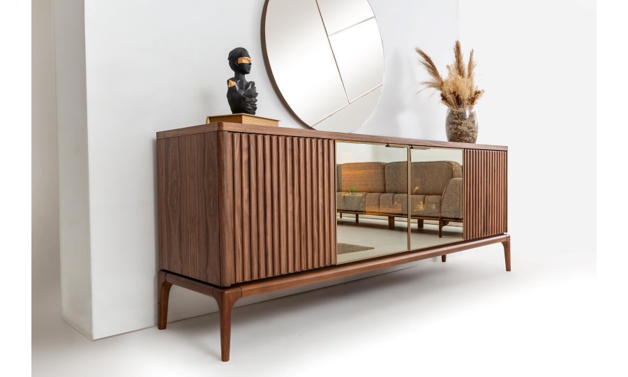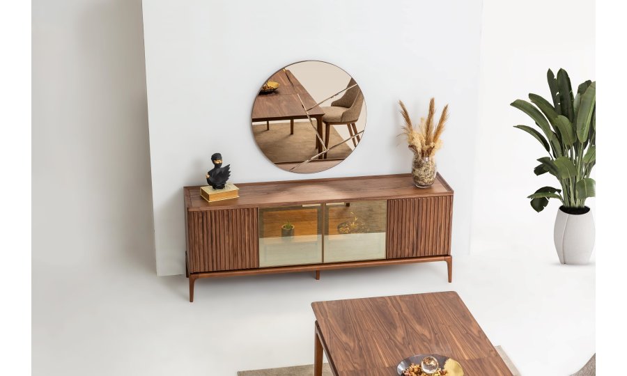 • Mermer desen ve ceviz seçenekli konsol üst tablası