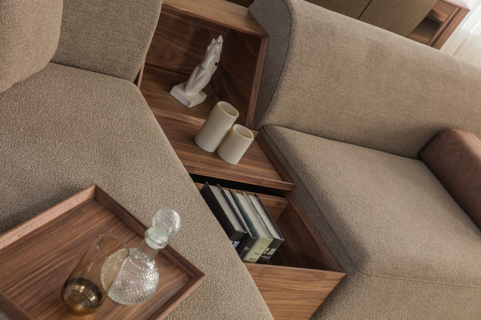 1ad. dinlenme modül, 1ad. ara modül ve 1ad. sol kollu modülden oluşmaktadır. Çerezlik, 180cm kolsuz modül, köşe modül, sağ kollu modül, ara puf, sehpa, orta puf ve berjer opsiyonel olarak satışa sunulmuştur.