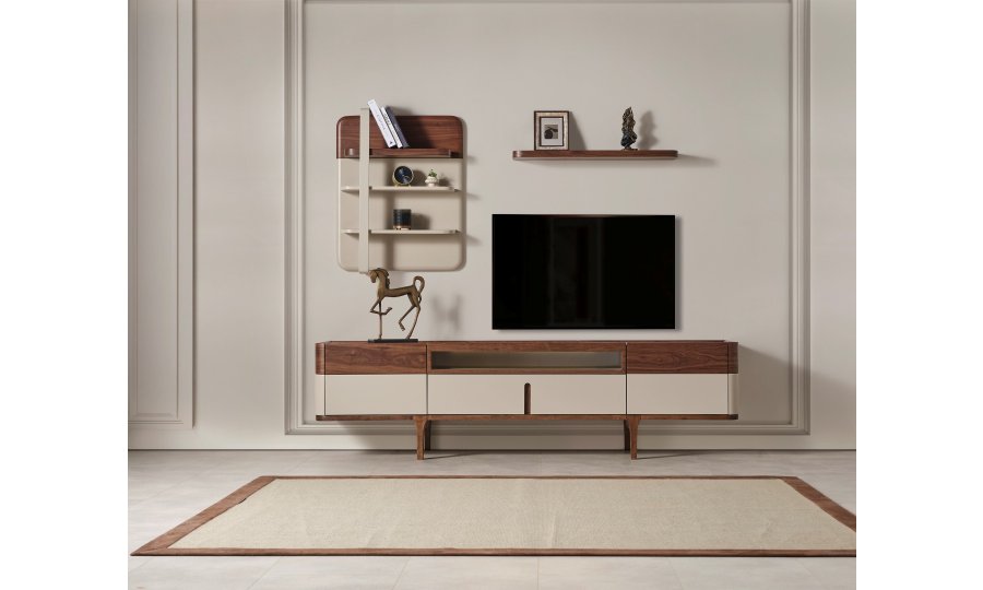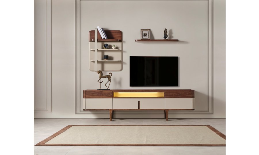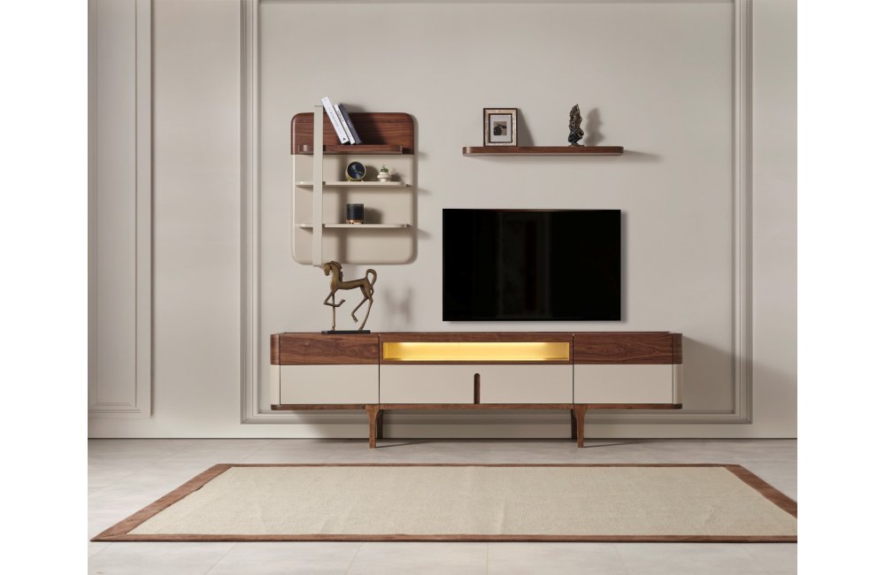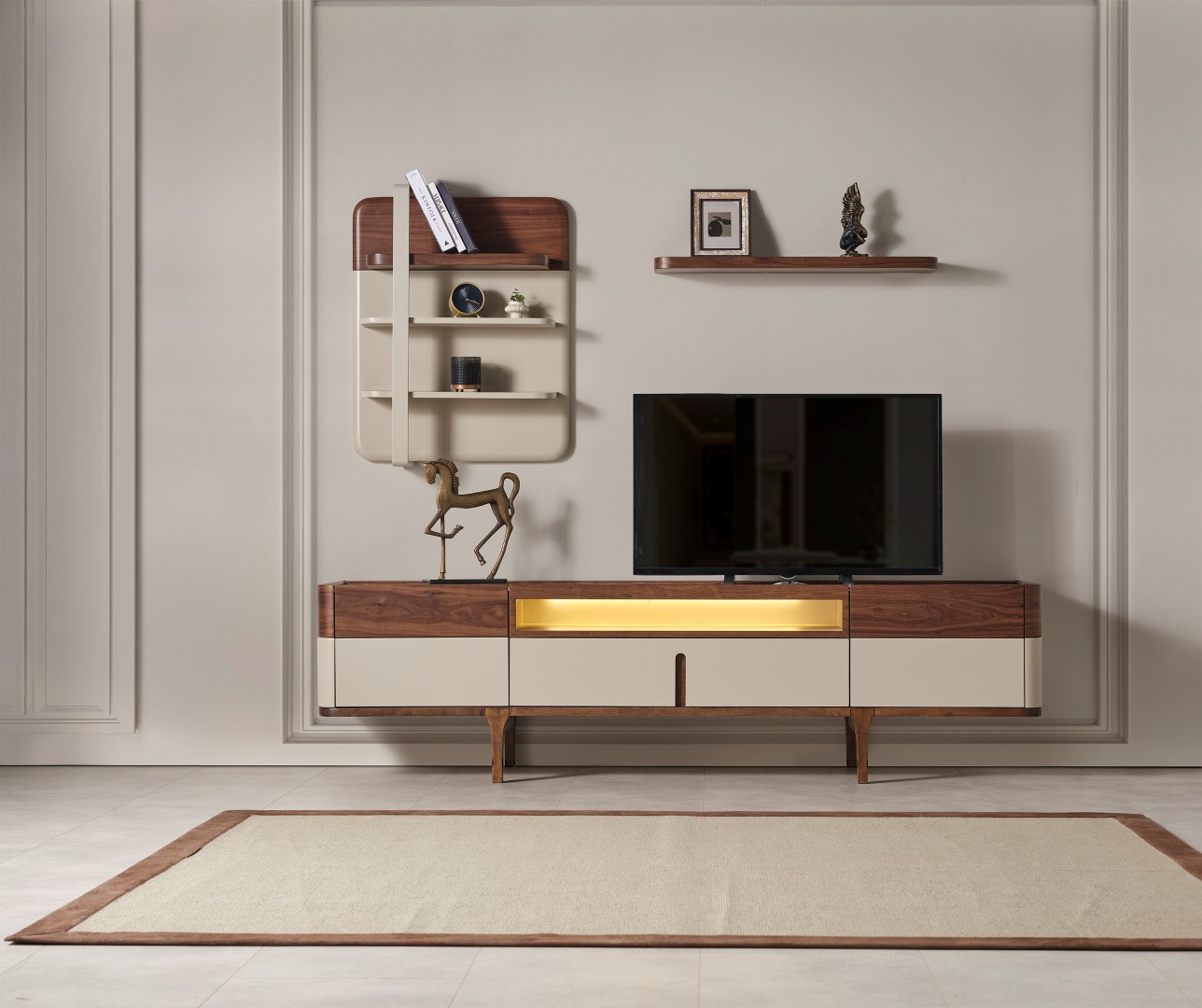 1 ad. TV ünitesinden (TV alt, TV orta raf ve TV üst pano) oluşmaktadır.