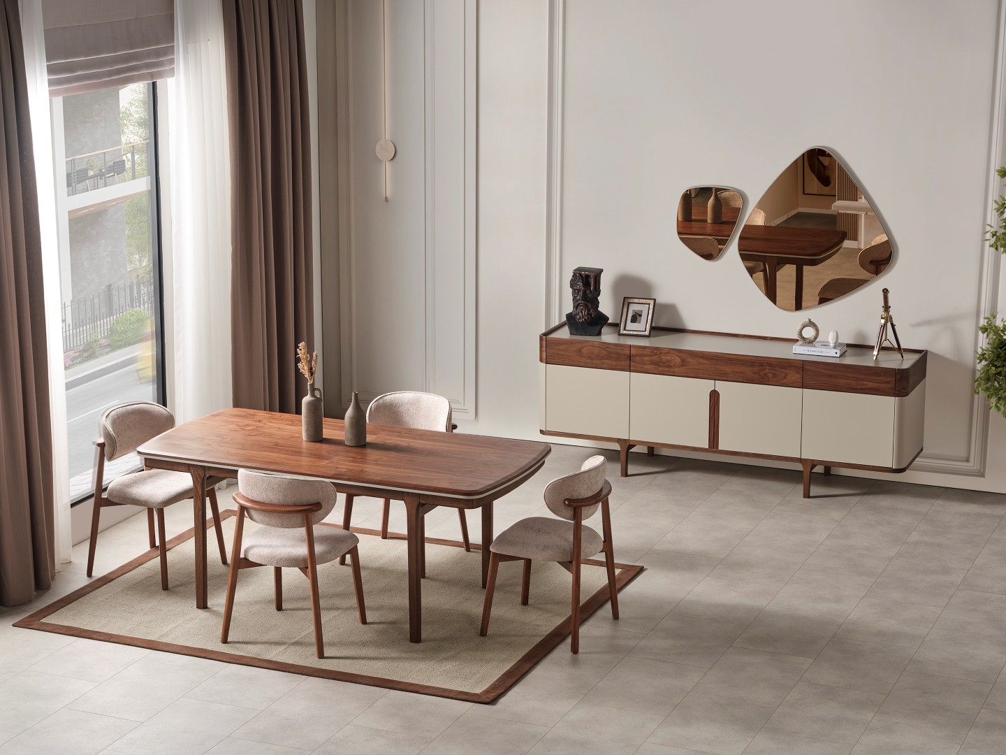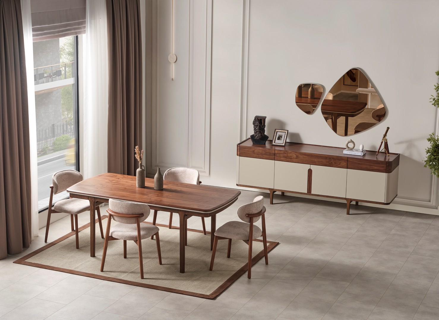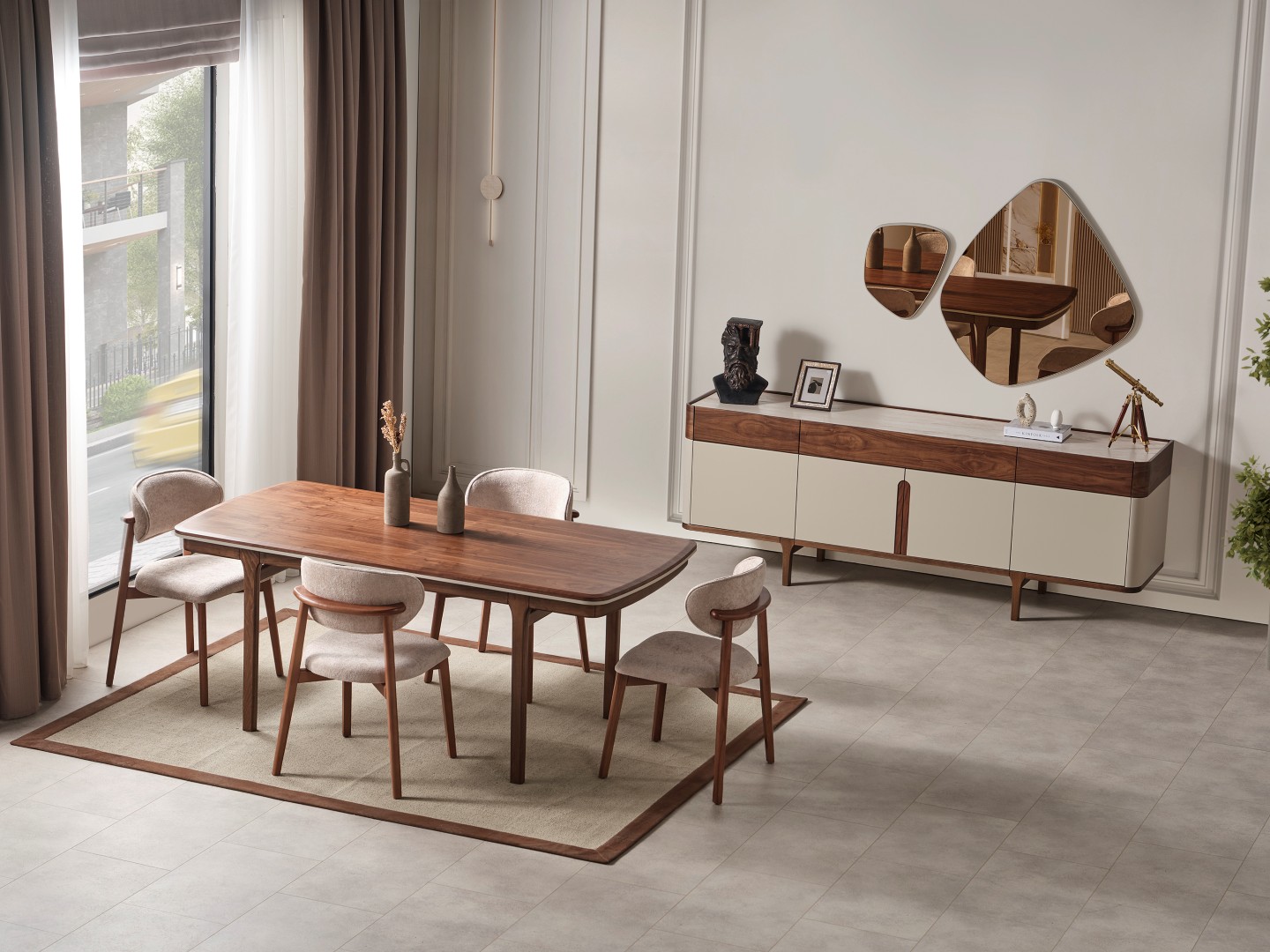 1 ad. konsol ve aynası, 1 ad. masa ve 6 ad. sandalyeden oluşmaktadır.