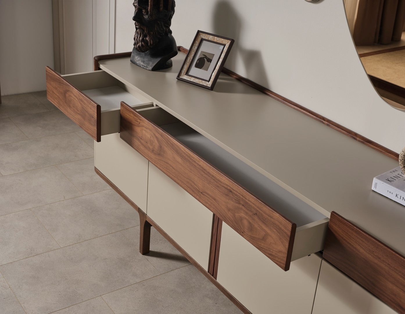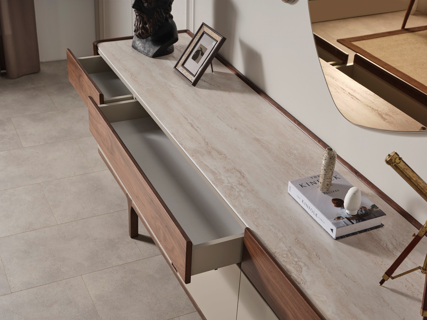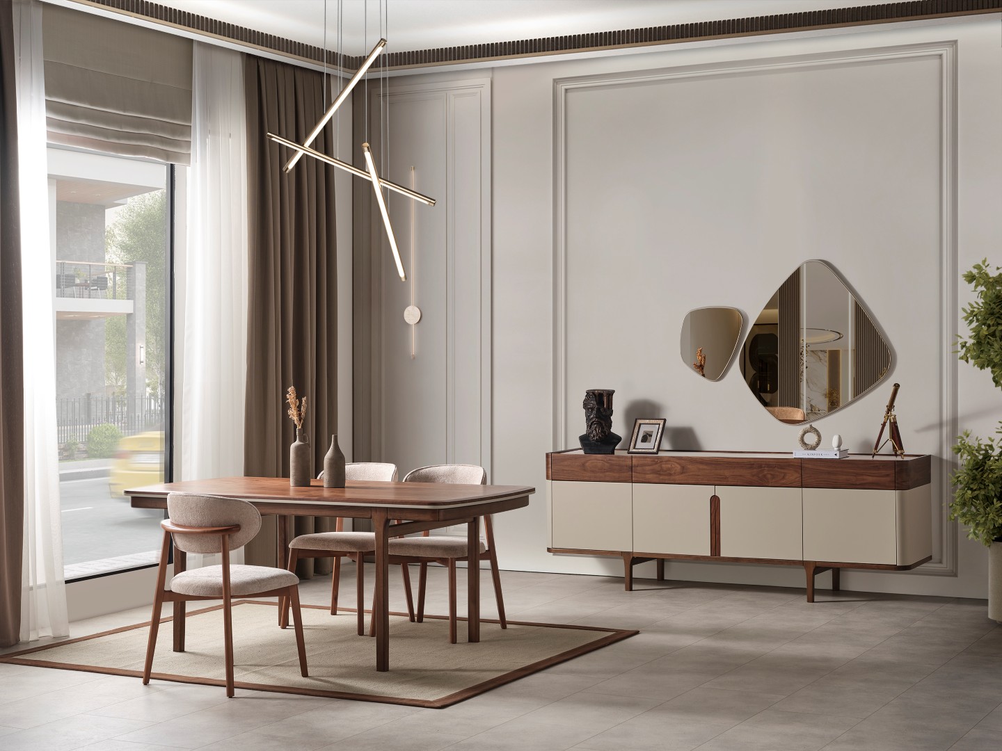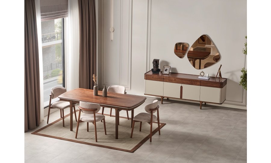 1 ad. konsol ve aynası, 1 ad. masa ve 6 ad. sandalyeden oluşmaktadır.