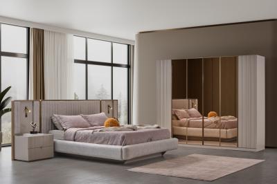 1ad. dolap, 1ad. bazalı karyola, 1ad şifonyer, 1ad şifonyer aynası ve 2ad. komodinden oluşmaktadır. Puf opsiyonel satılmaktadır.