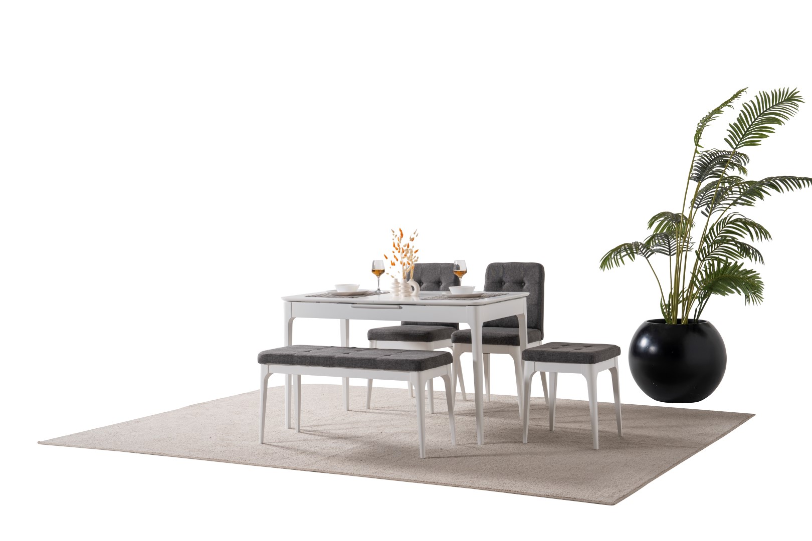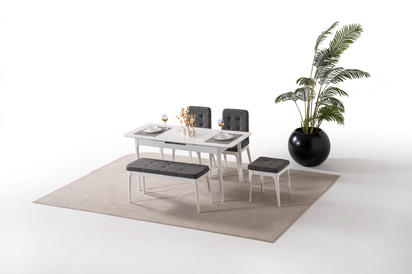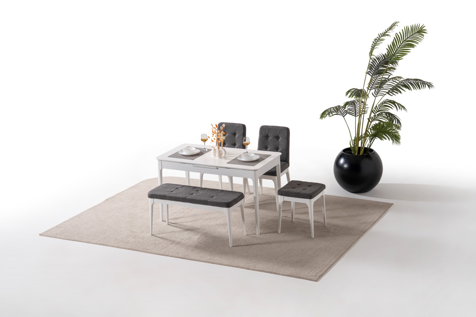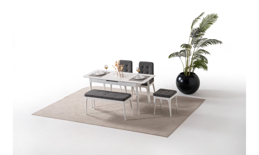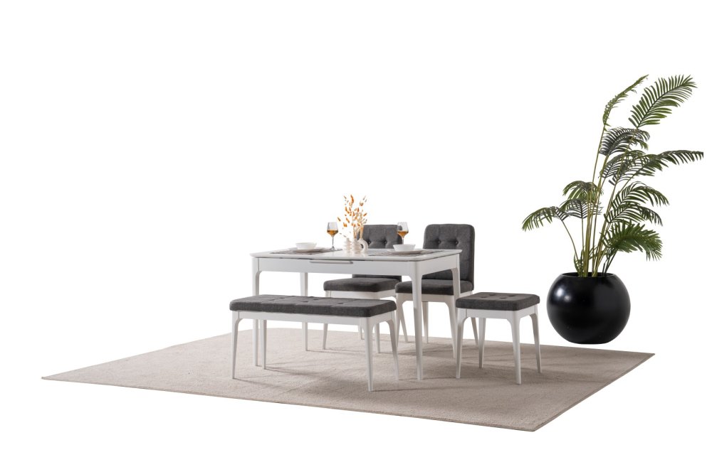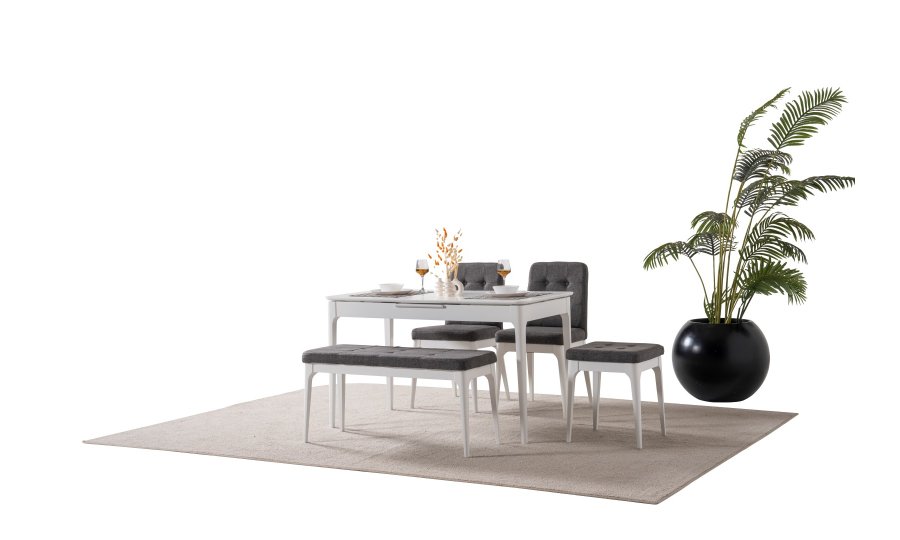 1ad.beyaz masa,2ad.sandalye ve 1ad.bençten oluşmaktadır. Puf opsiyonel olarak satışa sunulmuştur.