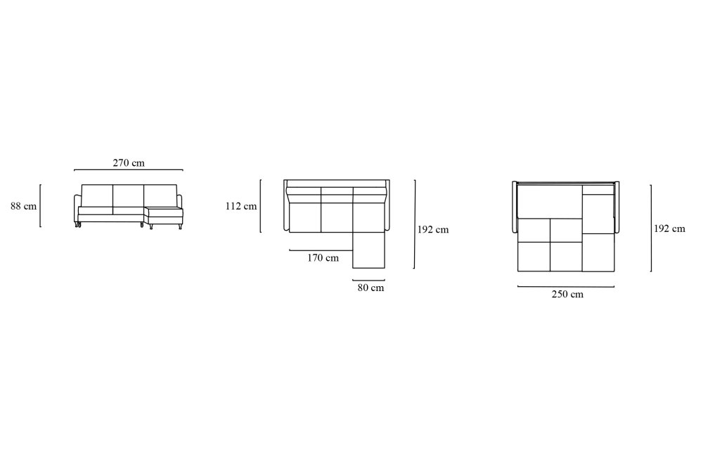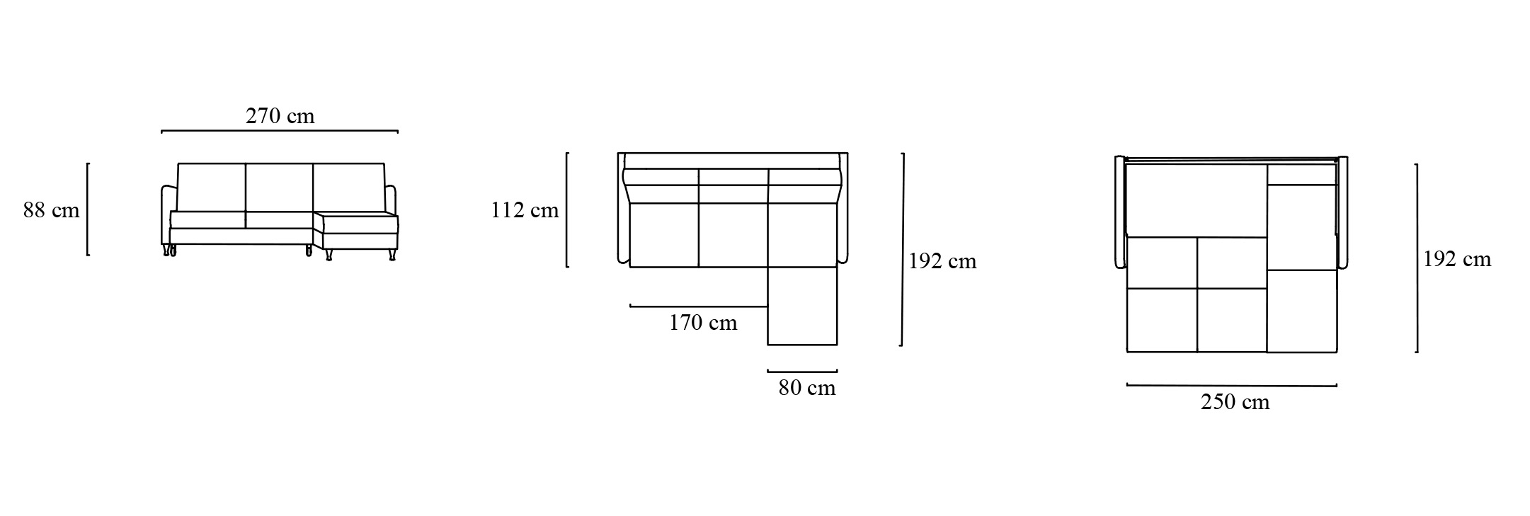 • Yataklı 3lü+ dinlenme: 274cm. x 208cm.