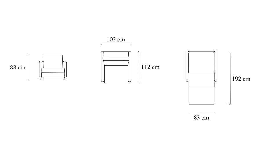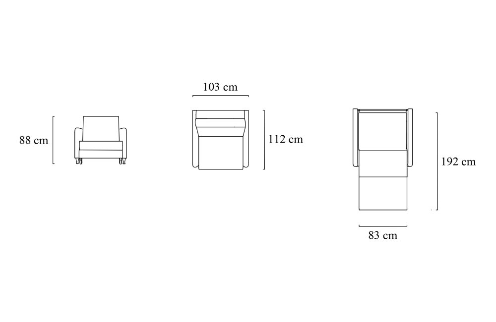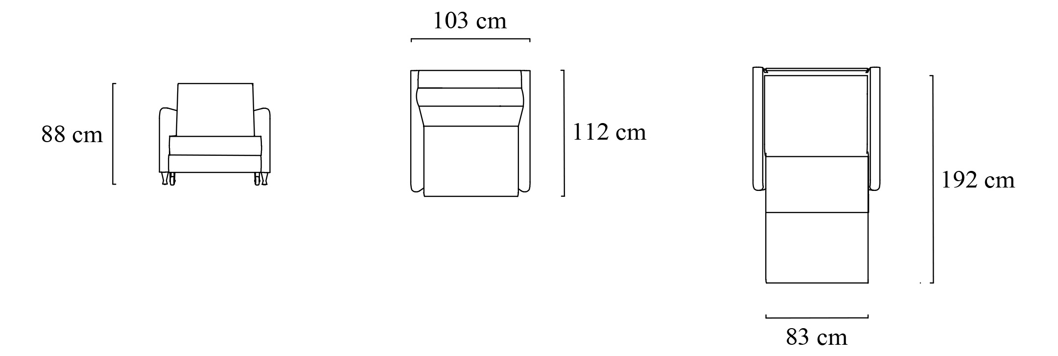 • Açılınca Yatak ölçüsü : 83 x192 cm