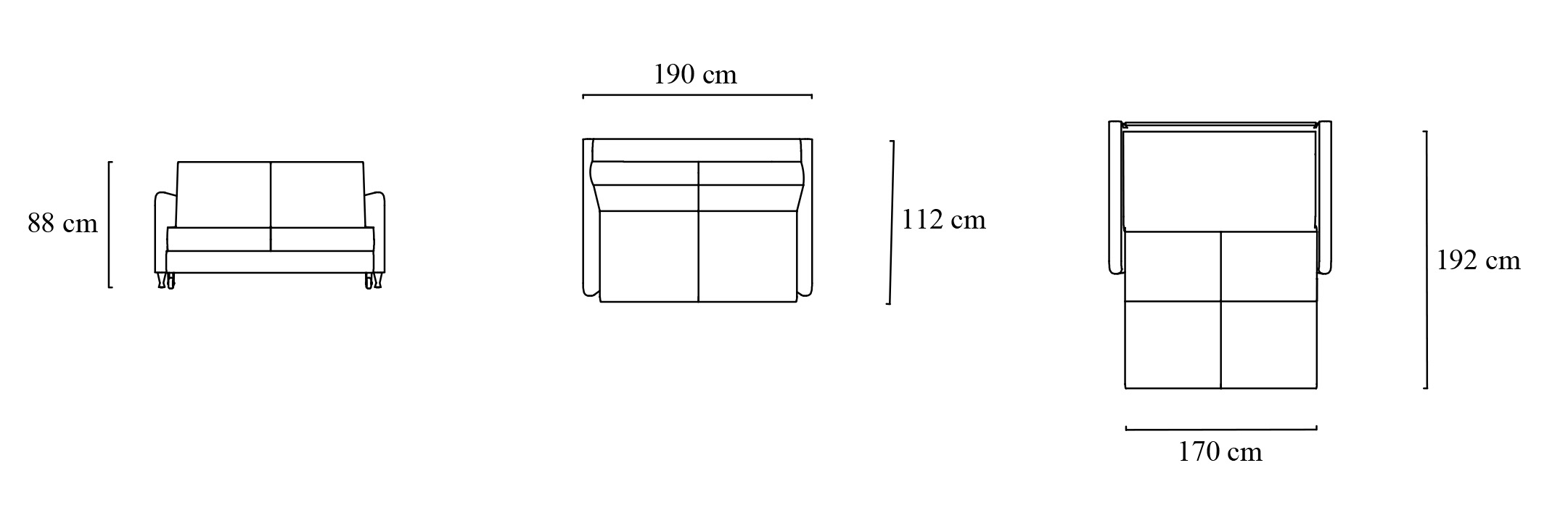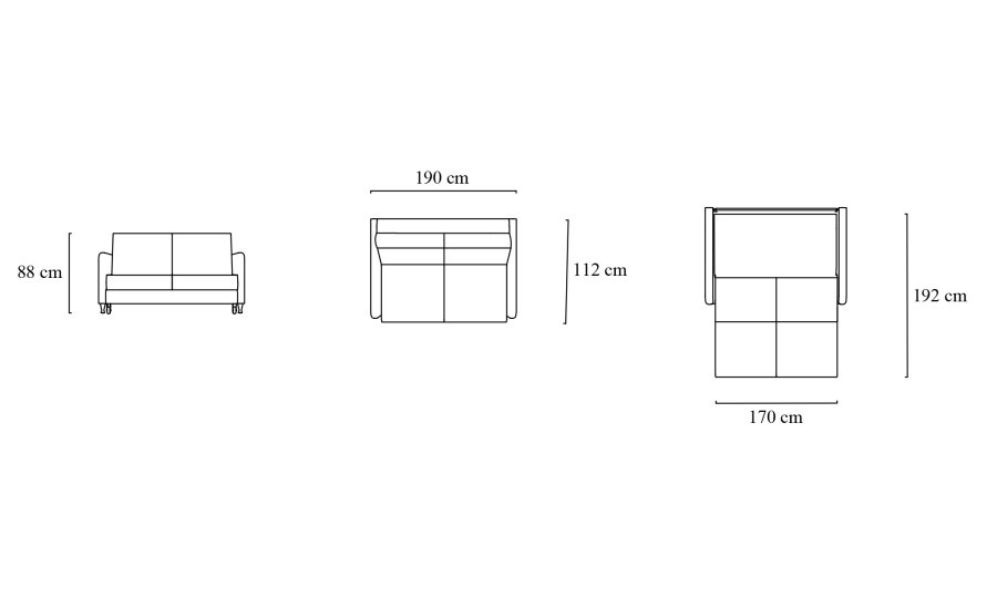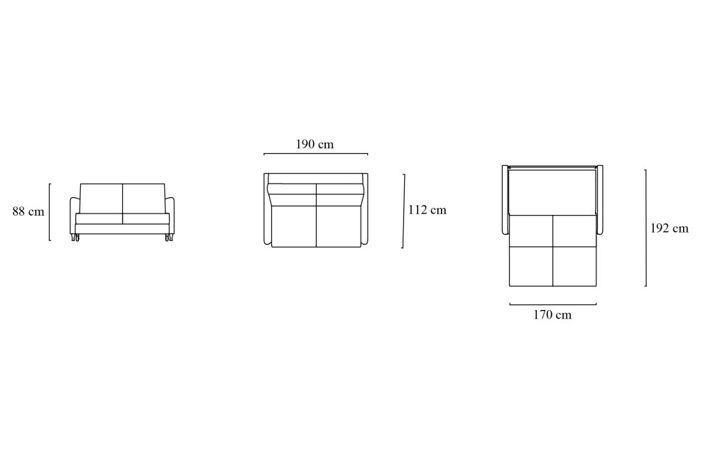 • Açılınca Yatak Ölçüsü : 170 x 192 cm.