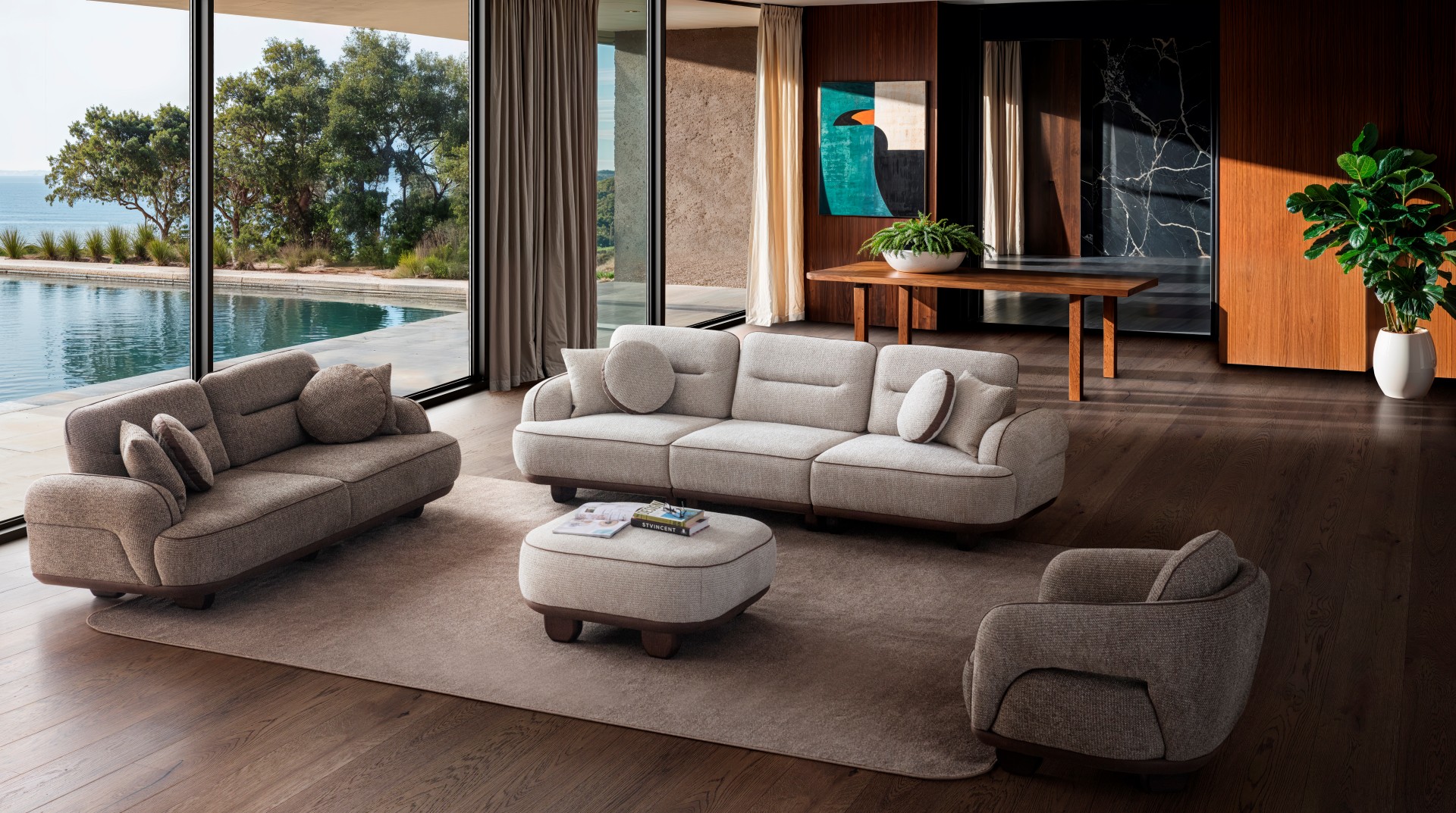 1 ad. 4'lü koltuk, 1 ad. 3'lü koltuk ve 1 ad. berjerden oluşmaktadır.