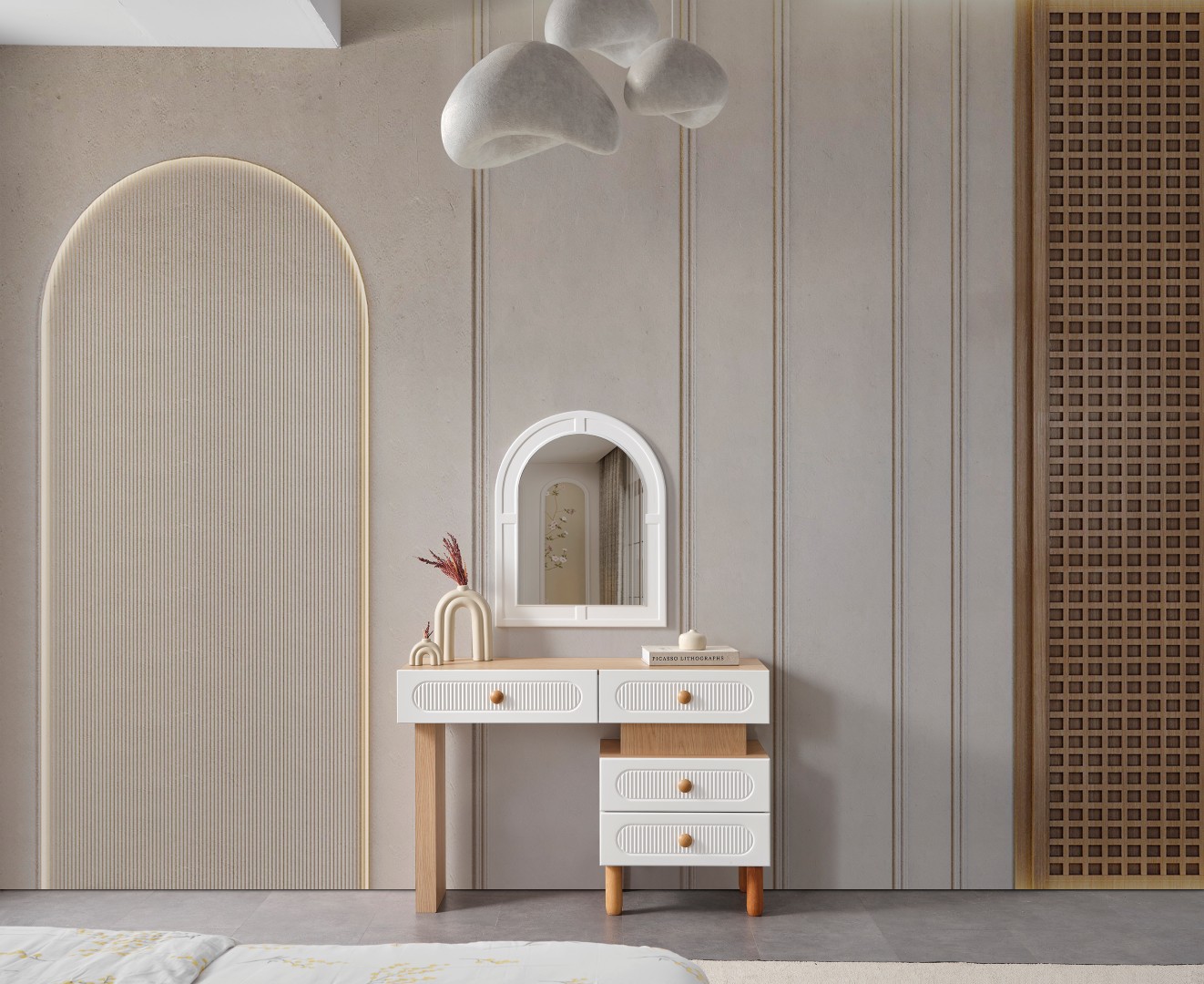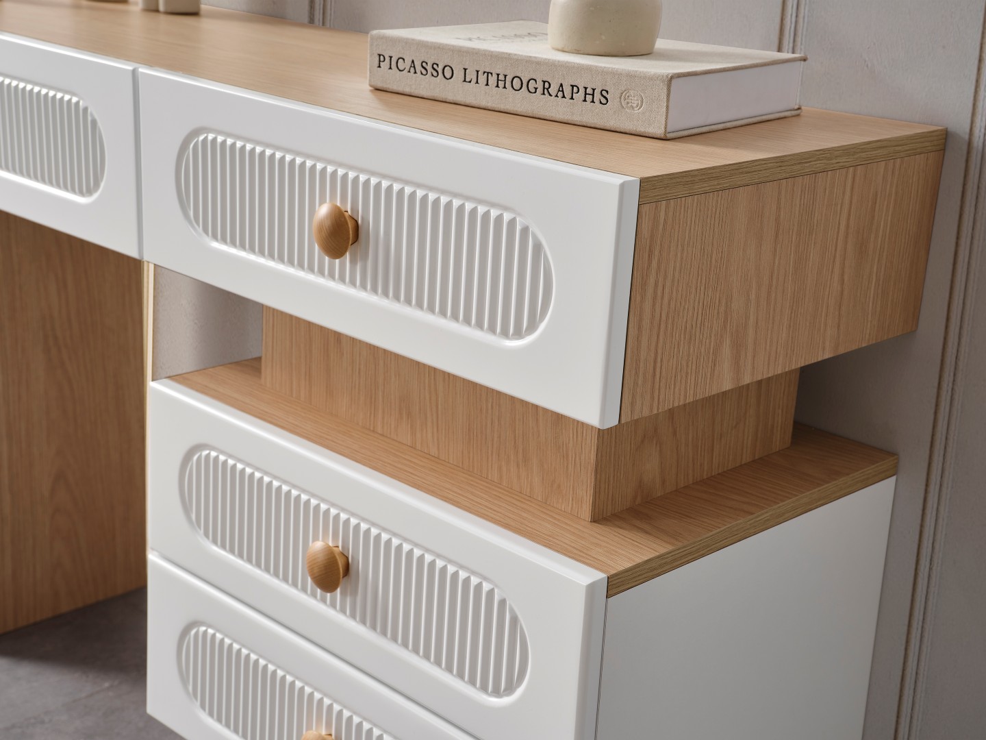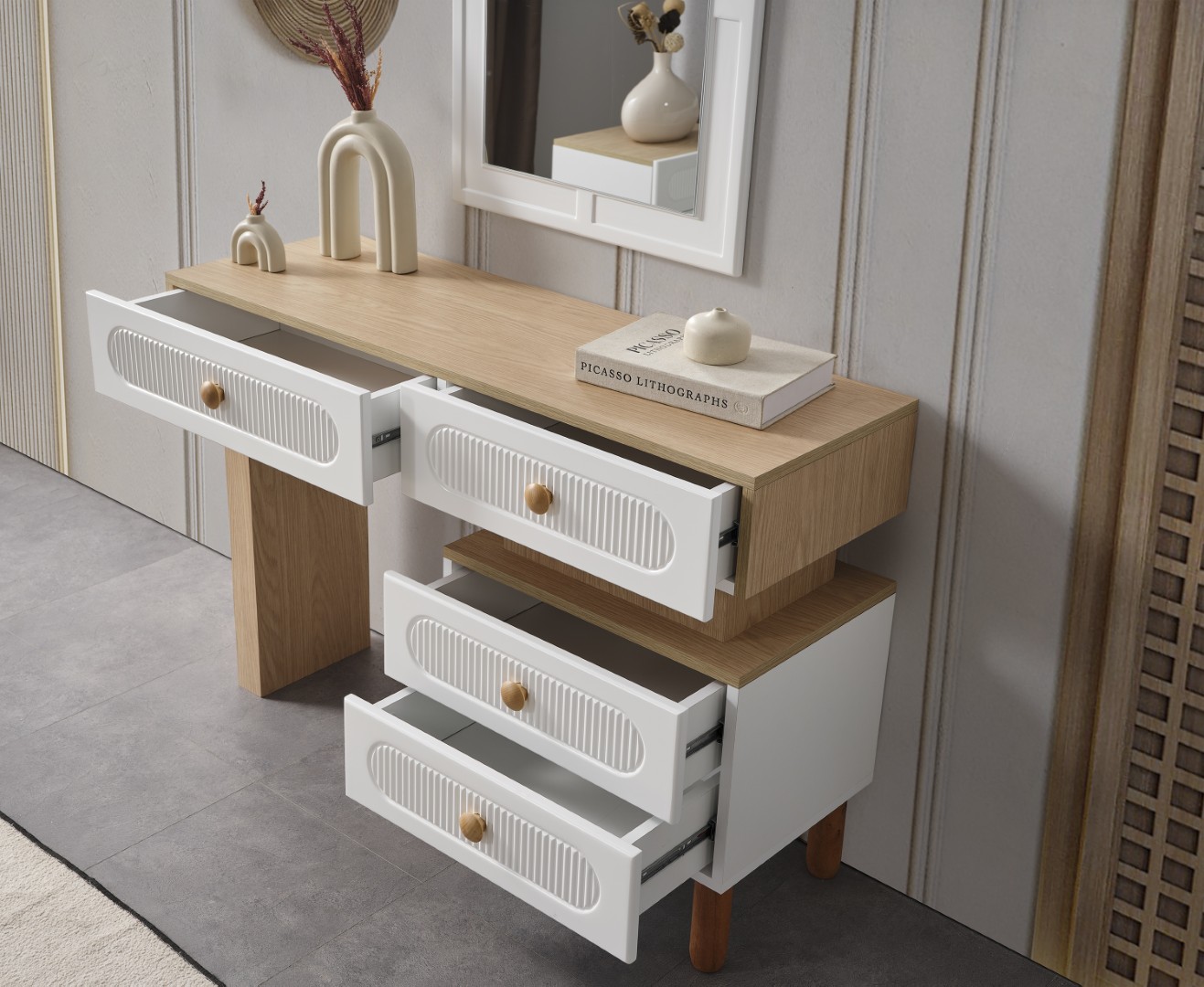 • Şifonyeri makyaj masası şeklinde tasarlanmıştır.