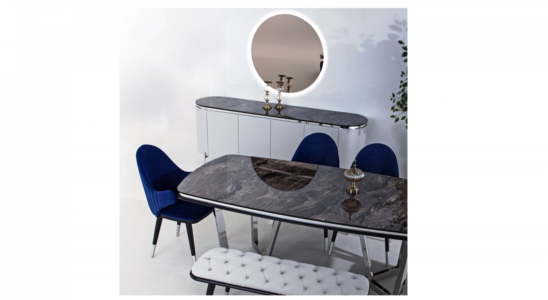 Masa, 4 ad sandalye, bench, konsol ve aynasından oluşmaktadır.