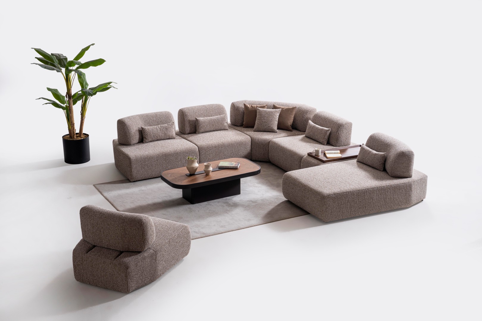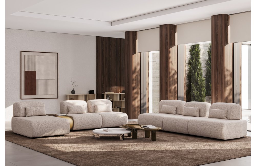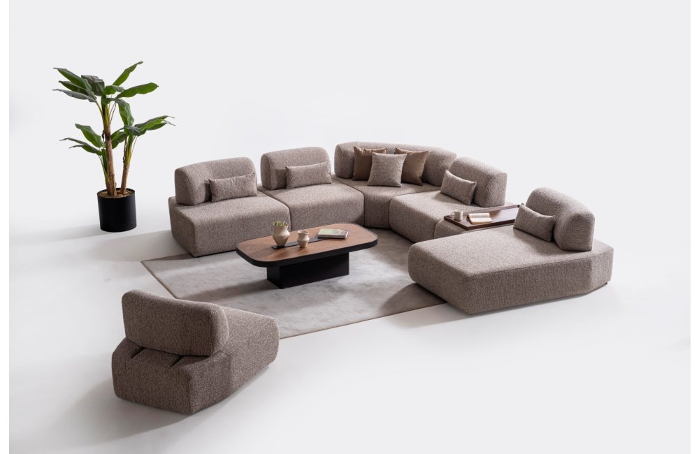 1 ad. Dinlenme Modülü, 4 ad. Ara Modül, 1 ad. Köşe Modül, 1 ad. 45'lik Ara Modül ve 1 ad. Kollu Modülden oluşmaktadır.
