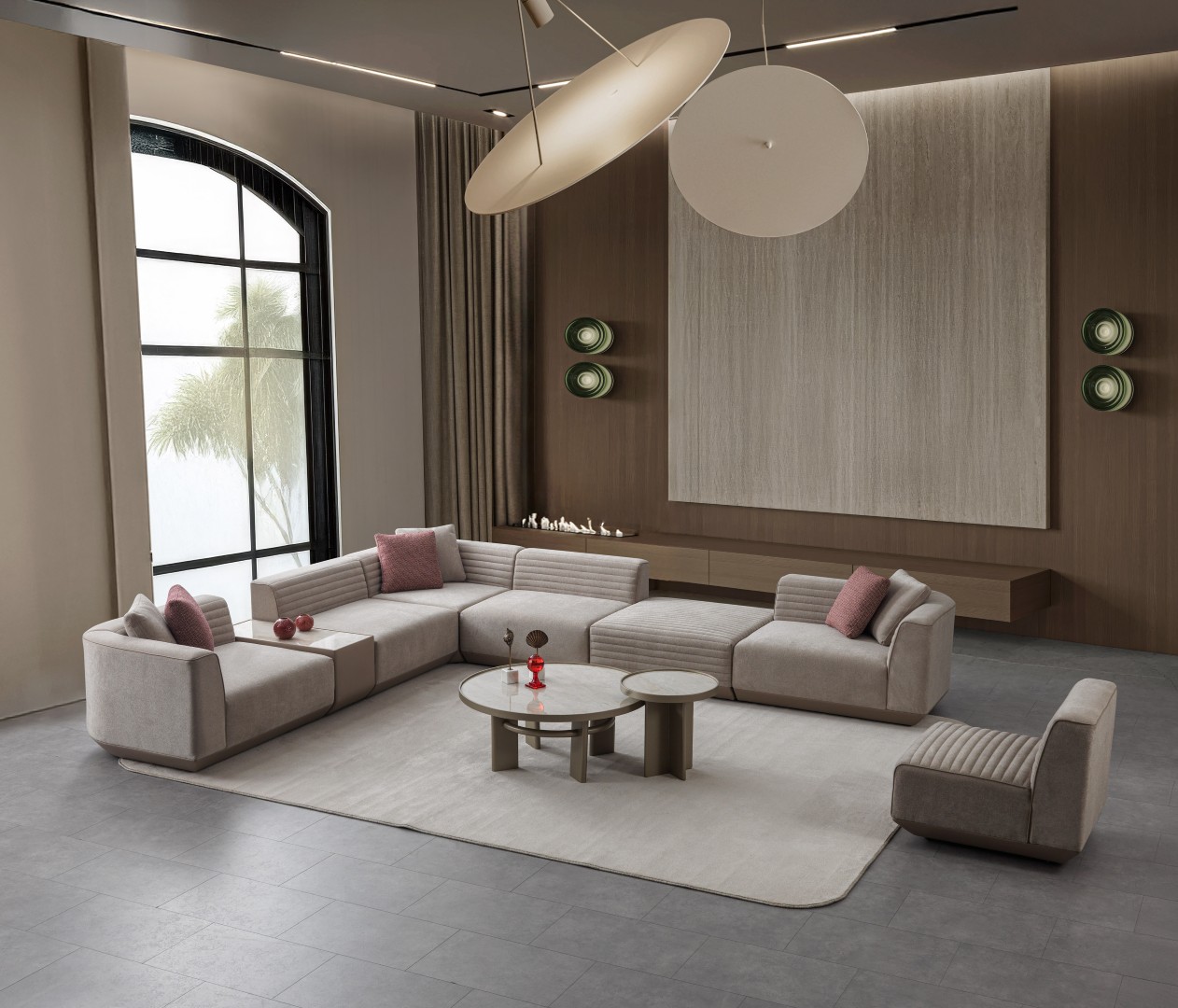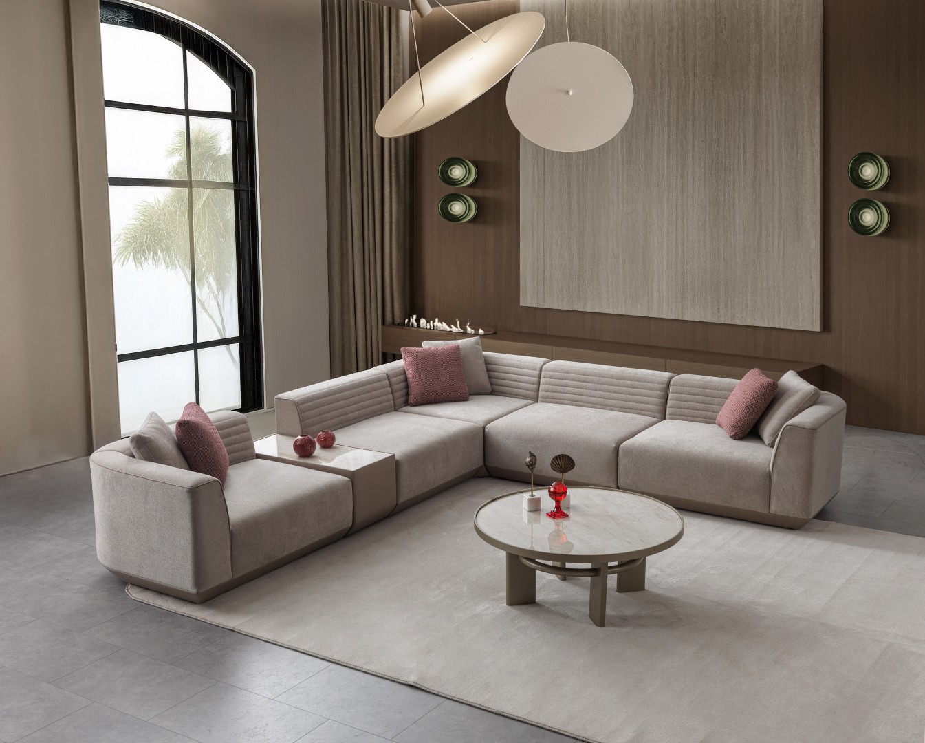 • Sehpa modülde porselen ve taş panel seçeneği vardır.