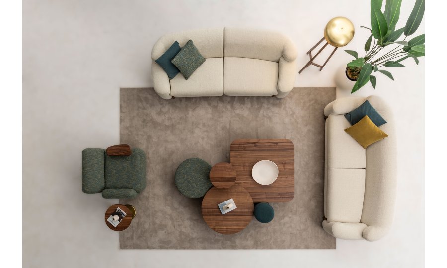 2ad. 3'lü koltuk ve 1ad. berjerden oluşmaktadır. Kare orta sehpa, yuvarlak orta sehpa, yan sehpa, büyük puf ve küçük puf opsiyonel olarak satışa sunulmuştur.