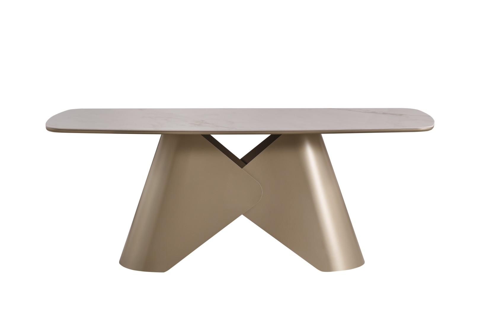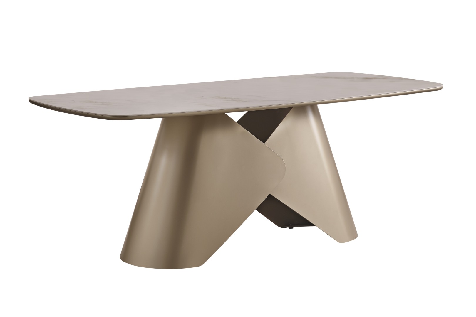 • Heykelimsi Masa Formu: Geometrik ve asimetrik ayak yapısı, masaya sadece bir mobilya değil, modern bir sanat eseri kimliği kazandırıyor.