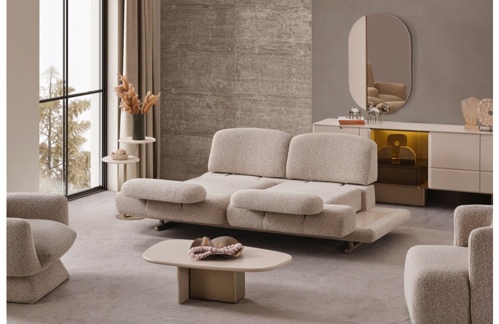 2 ad. 3'lü koltuk ve 1 ad. berjerden oluşmaktadır. Döner Mekanizmalı 3'lü Kanepe opsiyonel olarak satılmaktadır.