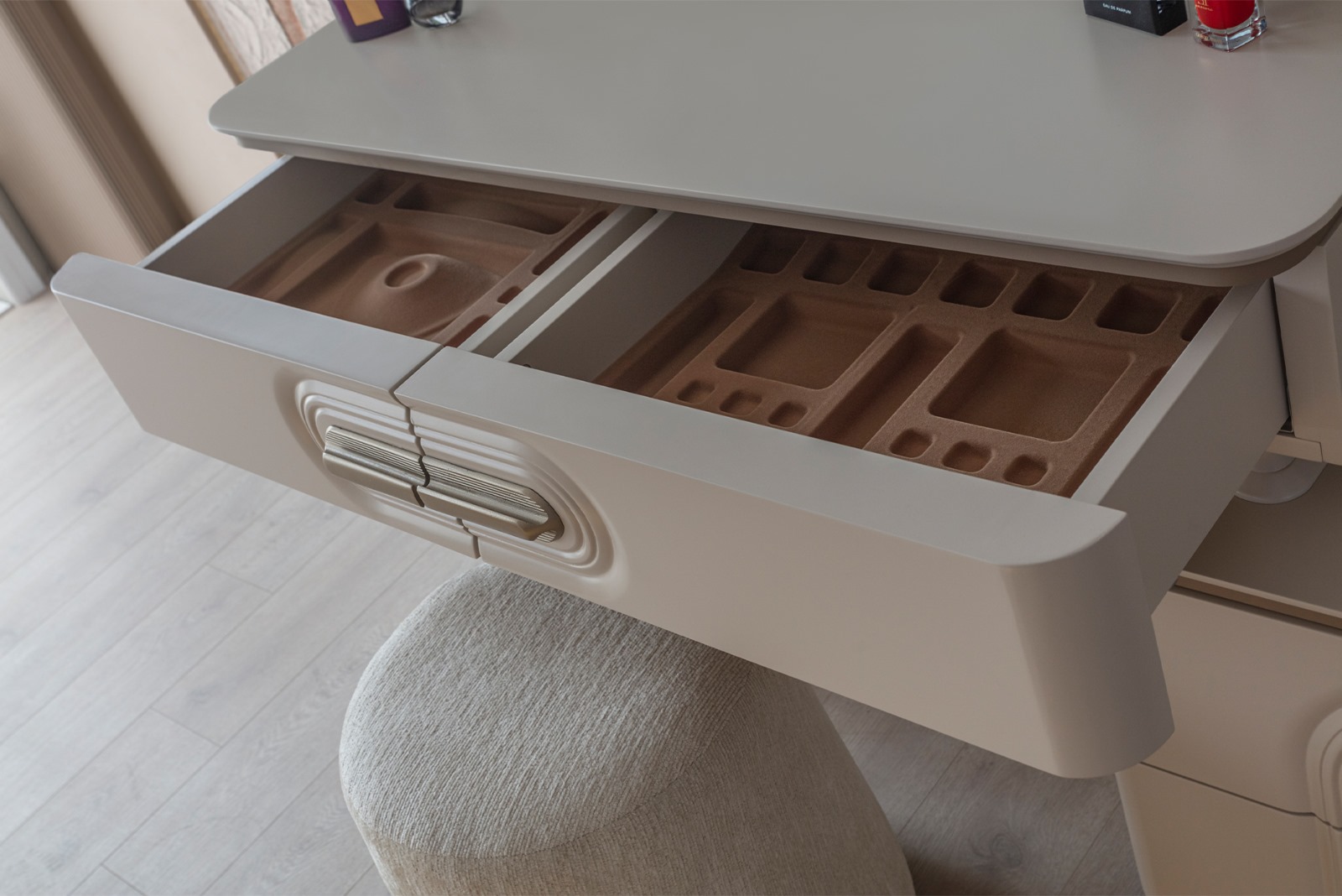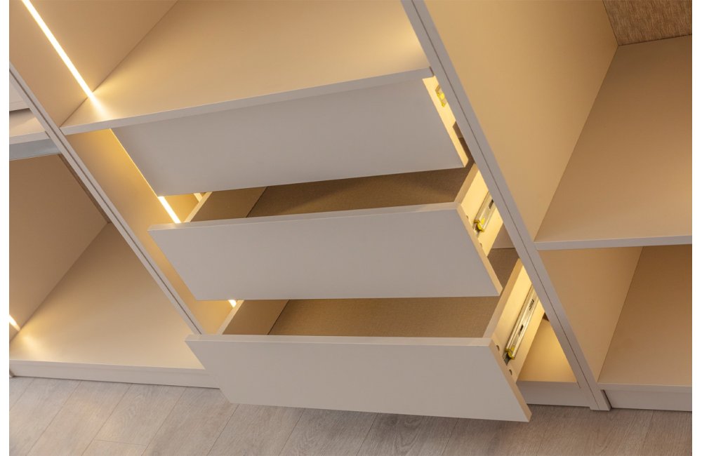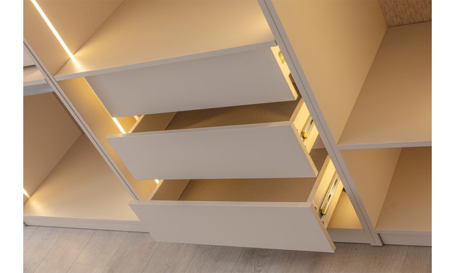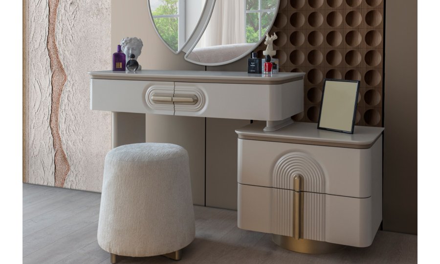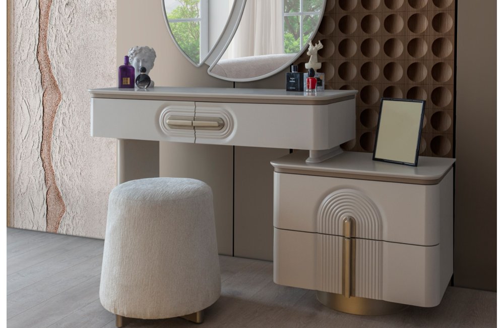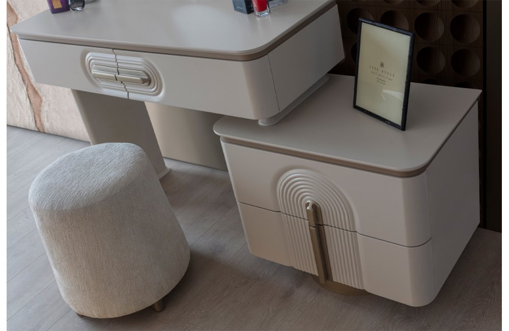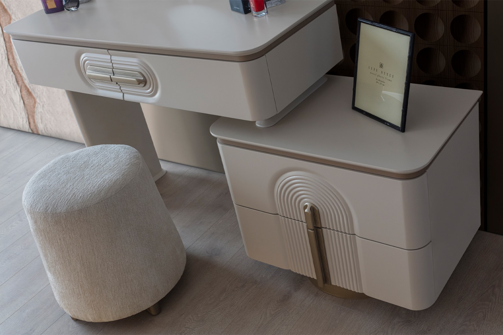• Şifonyer ve komodin mat gold profil ve MDF kombinasyonu