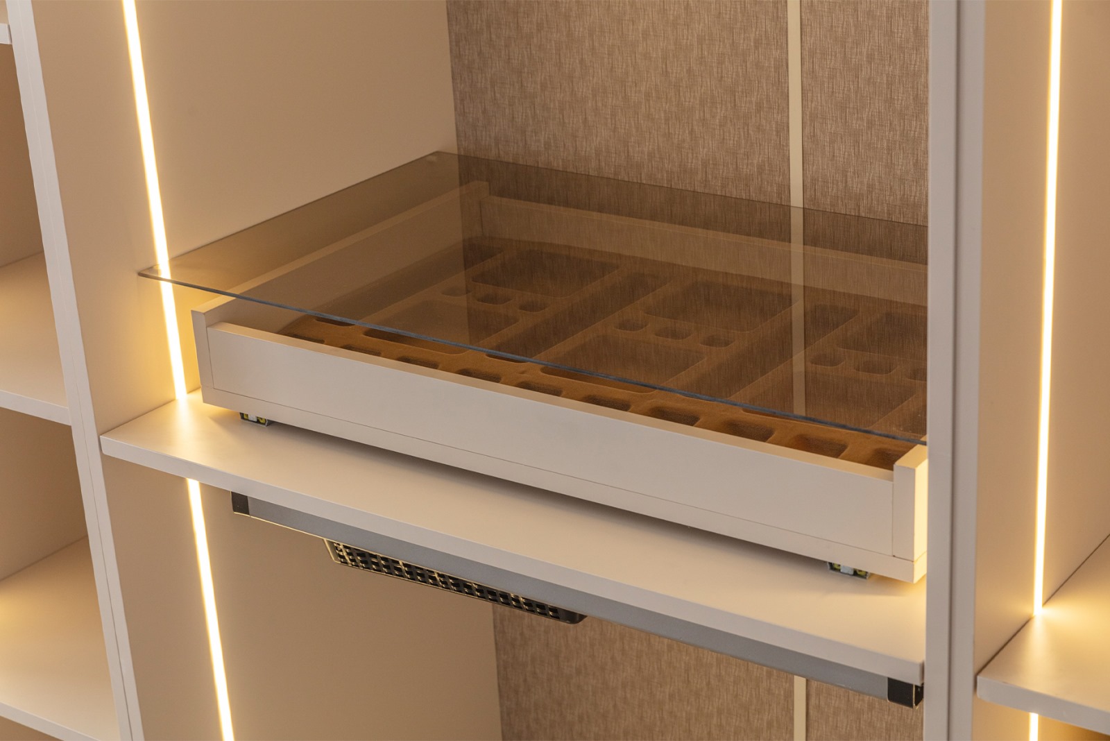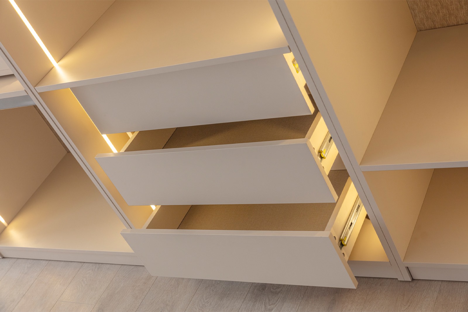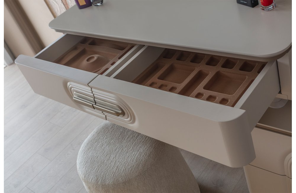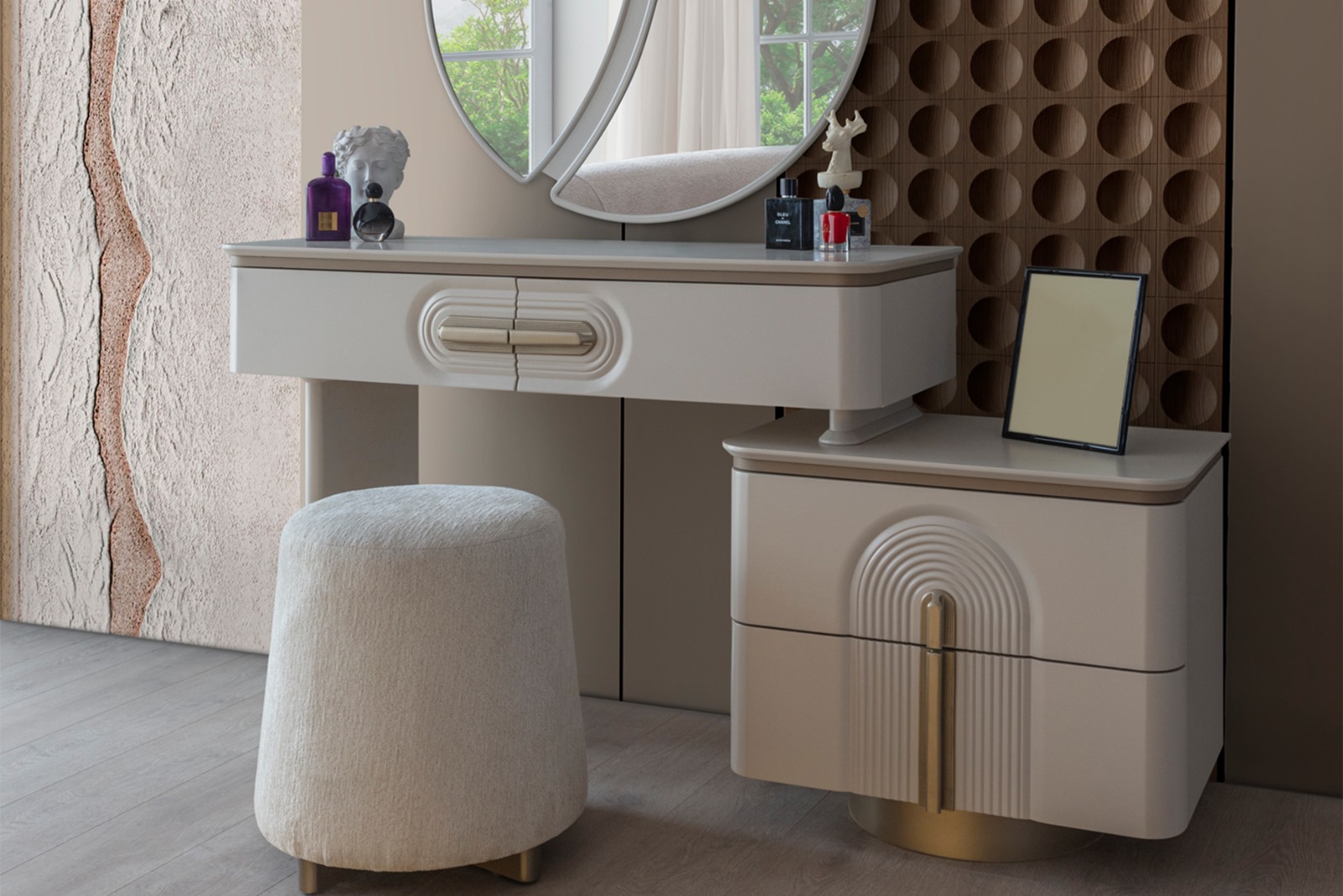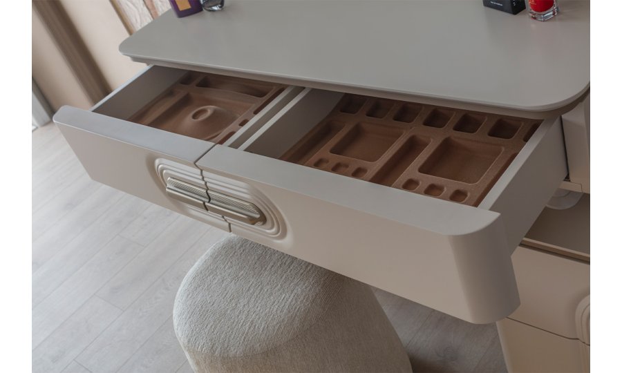 • Şifonyer ve komodin mat gold profil ve MDF kombinasyonu