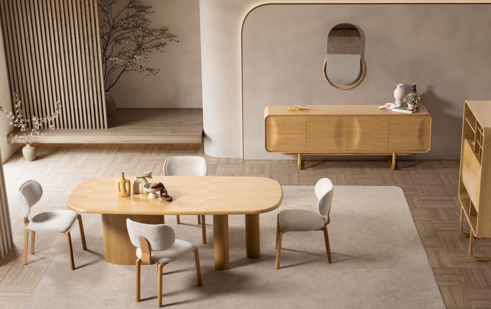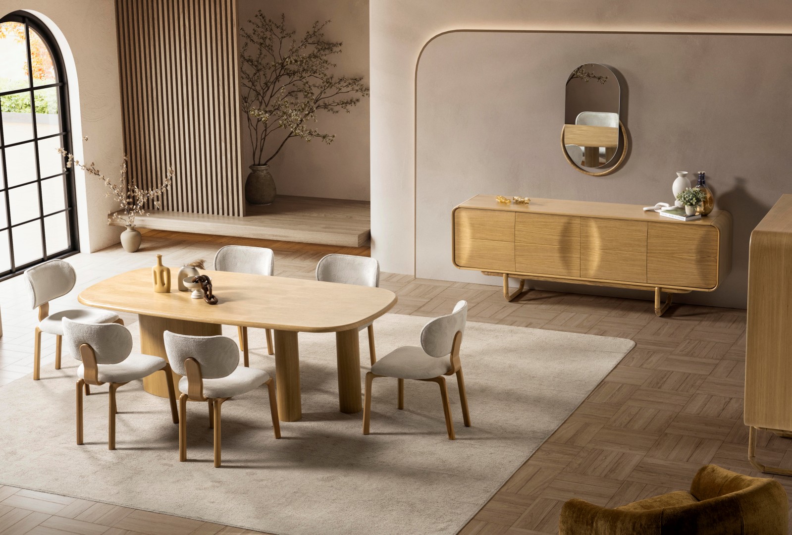 1 ad. konsol ve aynası, 1 ad. masa ve 6 ad. sandalyeden oluşmaktadır.