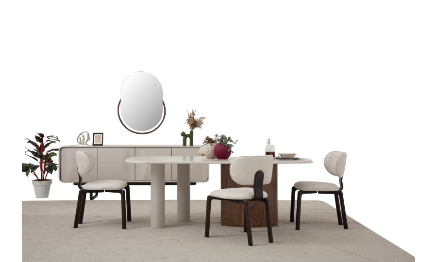 1 ad. konsol ve aynası, 1 ad. masa ve 6 ad. sandalyeden oluşmaktadır.