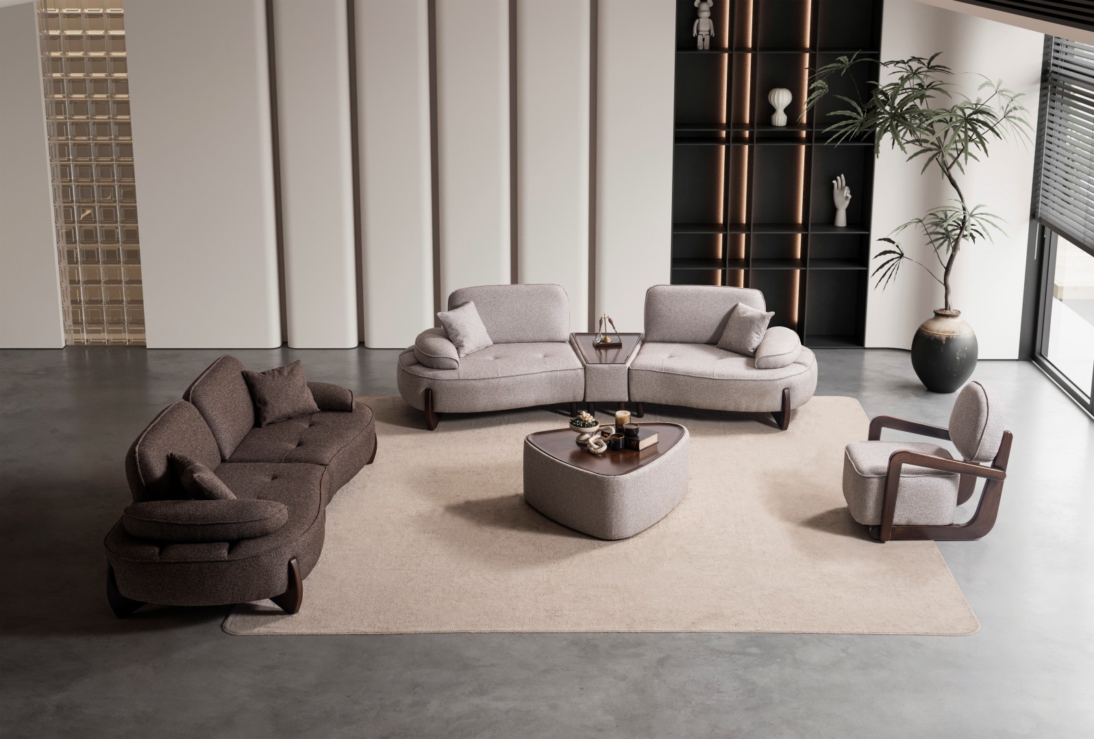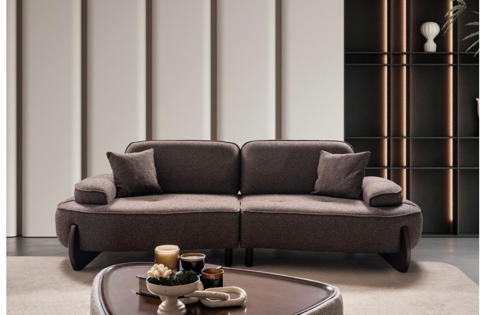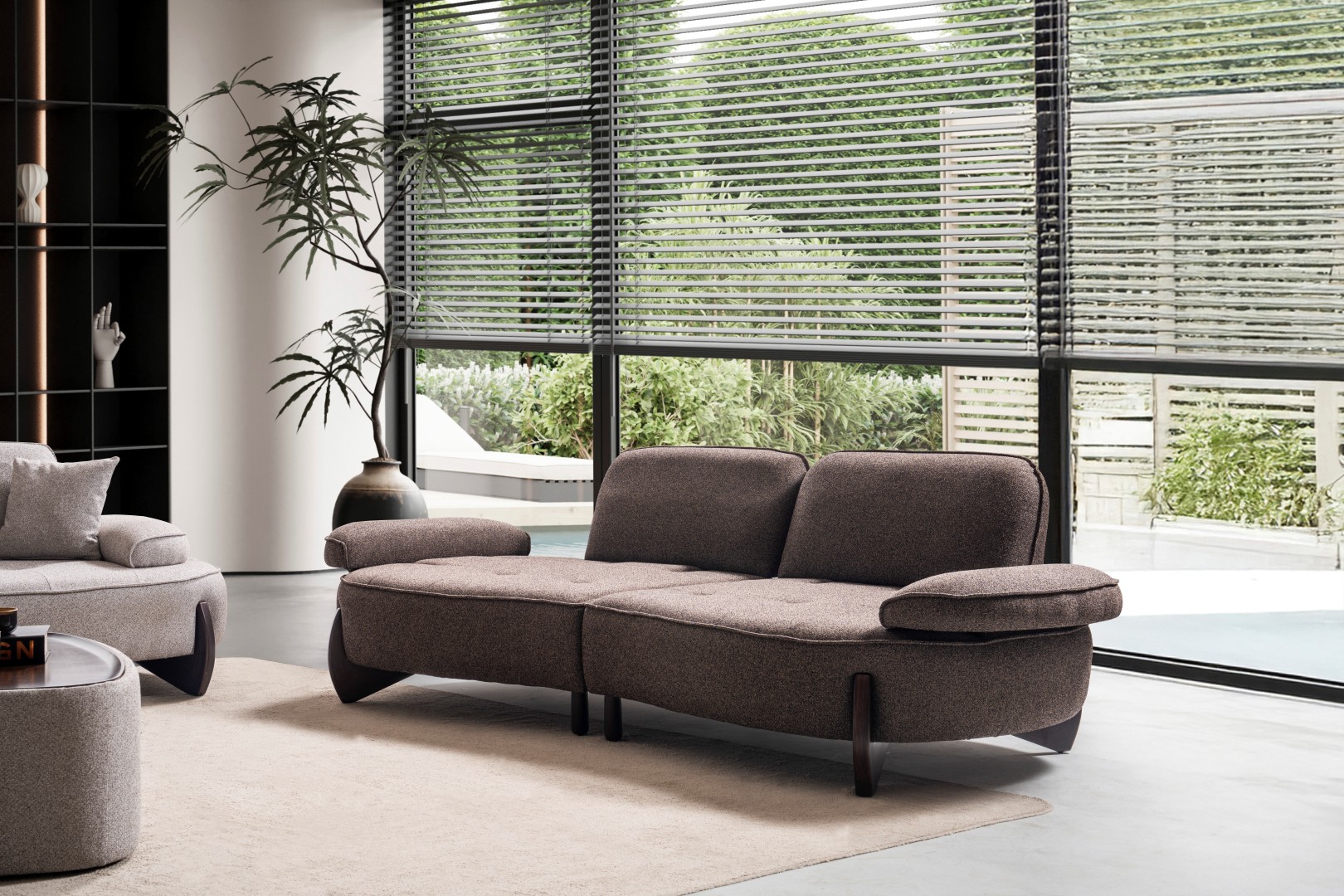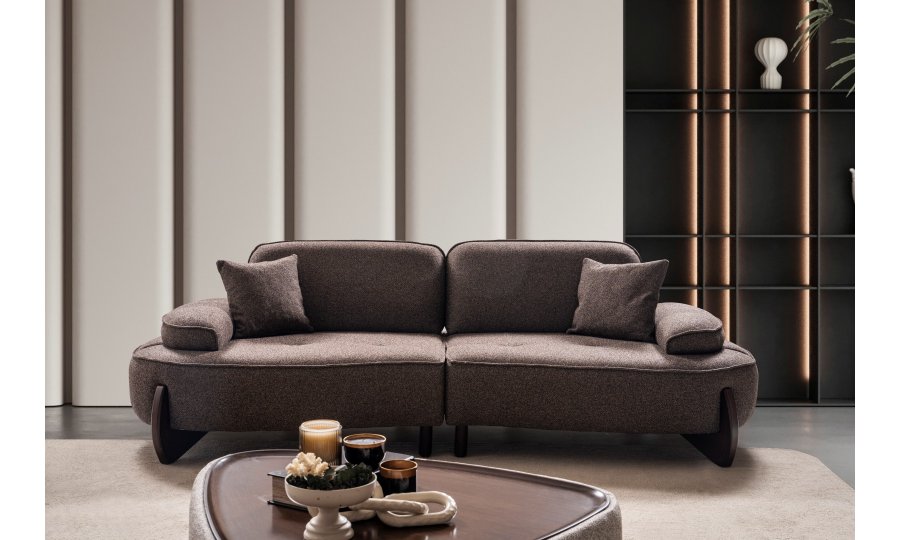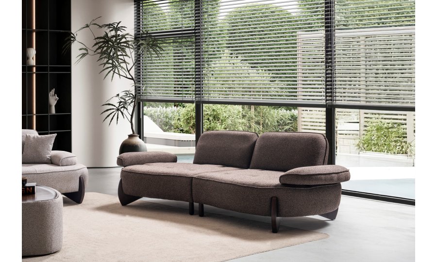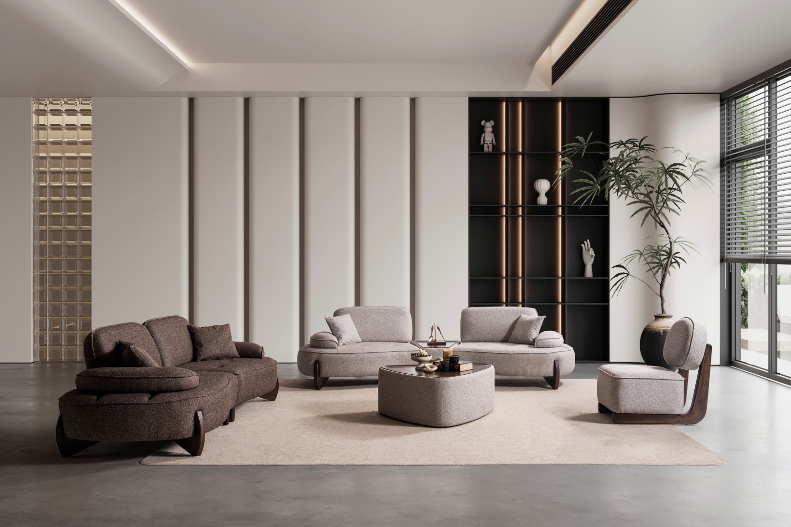 Palma Koltuk Takımı, alışılmışın dışındaki kavisli hatları ve fonksiyonel detaylarıyla yaşam alanlarına modern bir dokunuş katıyor. Minimalist tasarım anlayışını konforla birleştiren bu set; modüler yapısı, dokulu kumaş seçimi ve ahşap detaylarıyla dikkat çekiyor.
