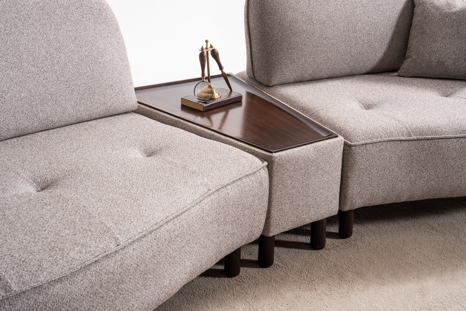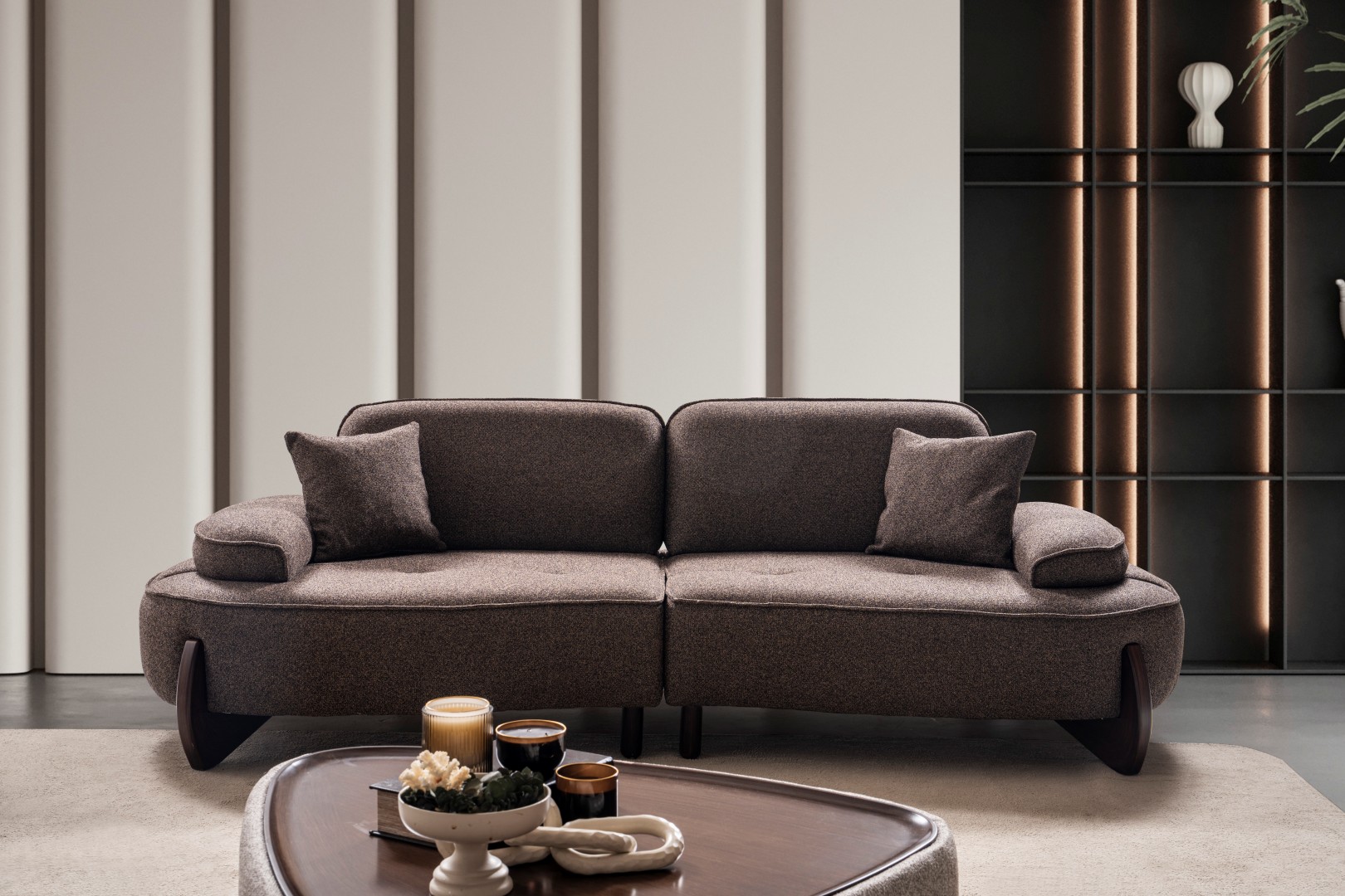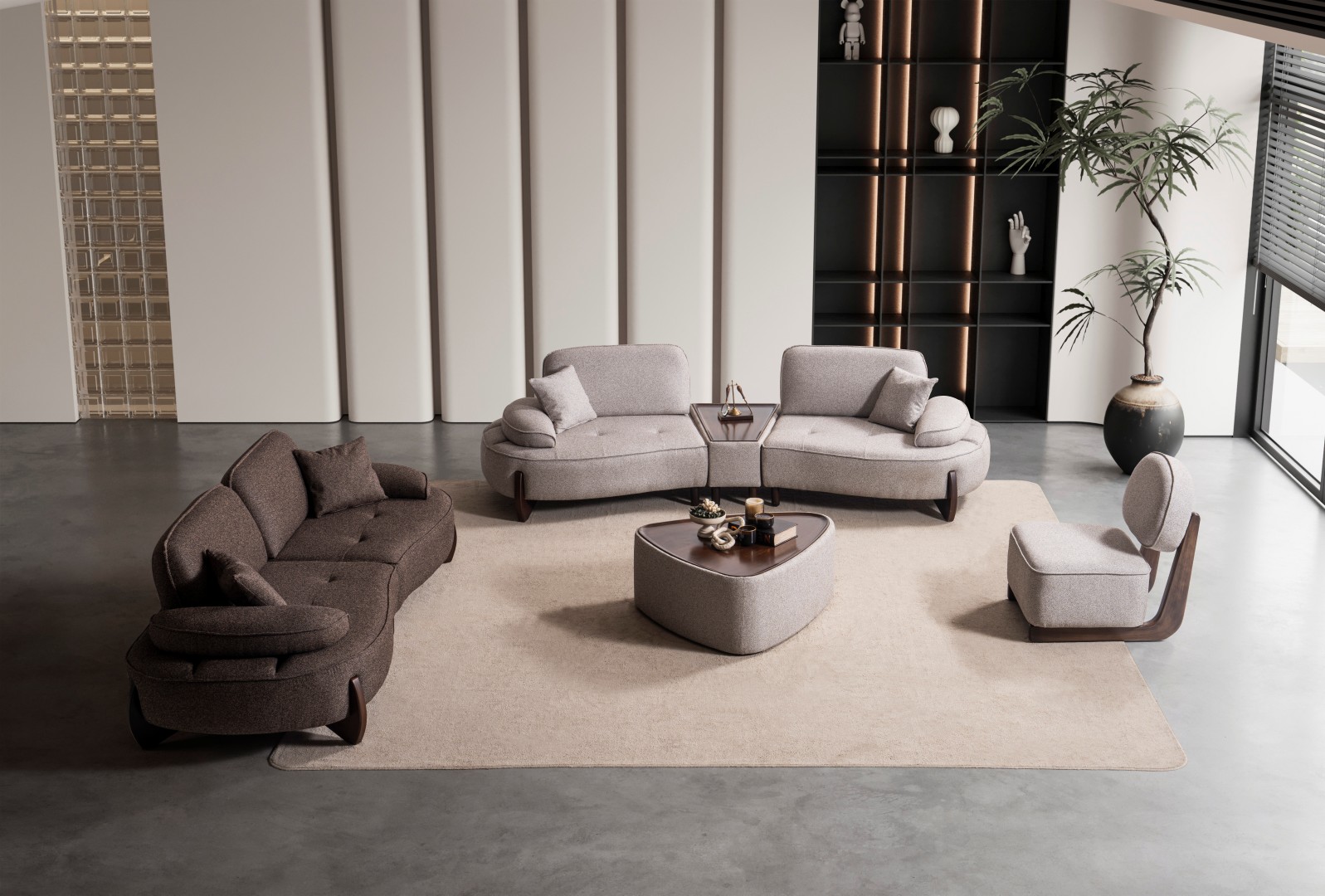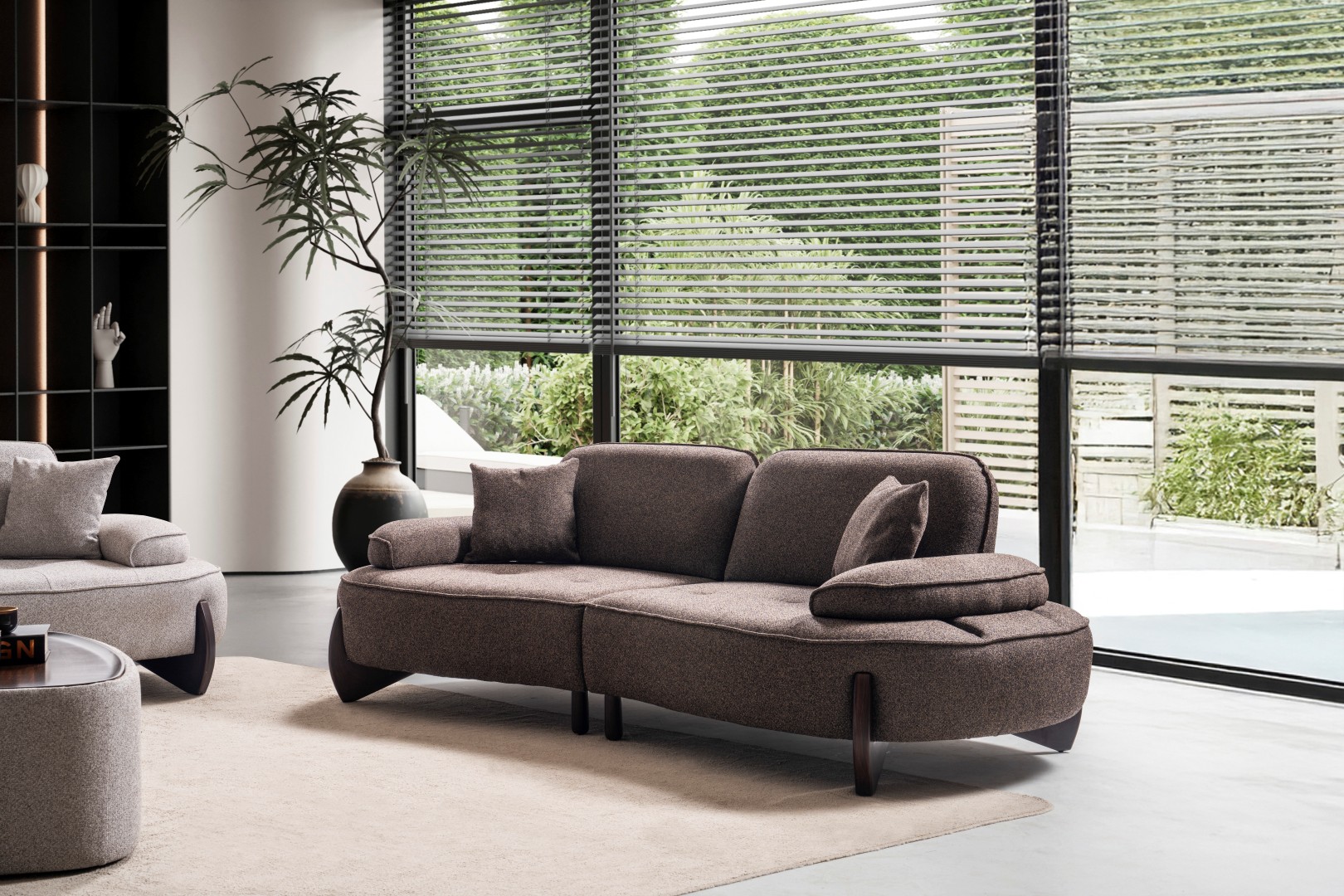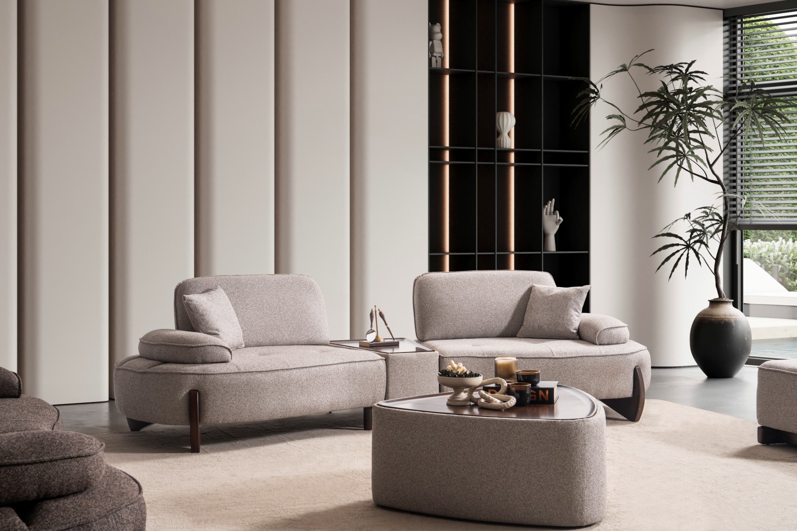 Palma Koltuk Takımı, alışılmışın dışındaki kavisli hatları ve fonksiyonel detaylarıyla yaşam alanlarına modern bir dokunuş katıyor. Minimalist tasarım anlayışını konforla birleştiren bu set; modüler yapısı, dokulu kumaş seçimi ve ahşap detaylarıyla dikkat çekiyor.