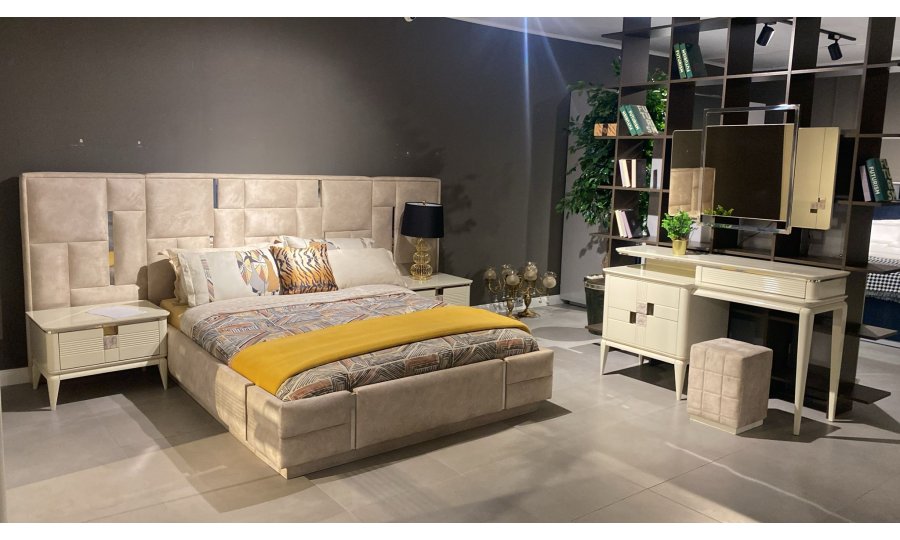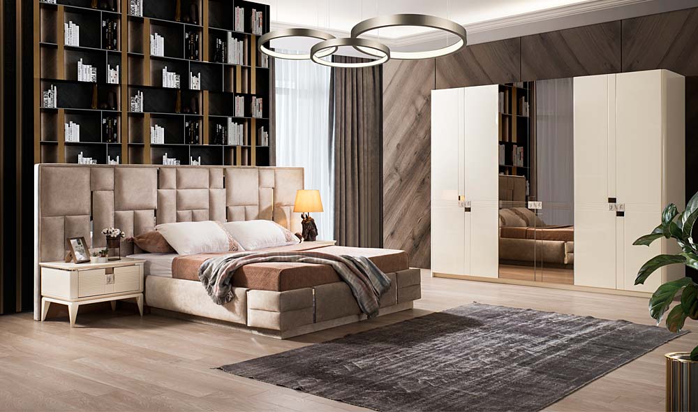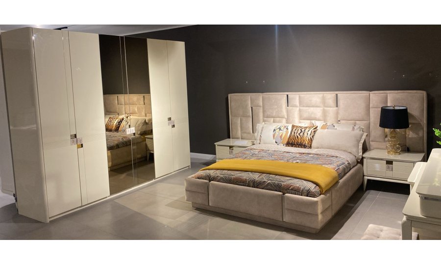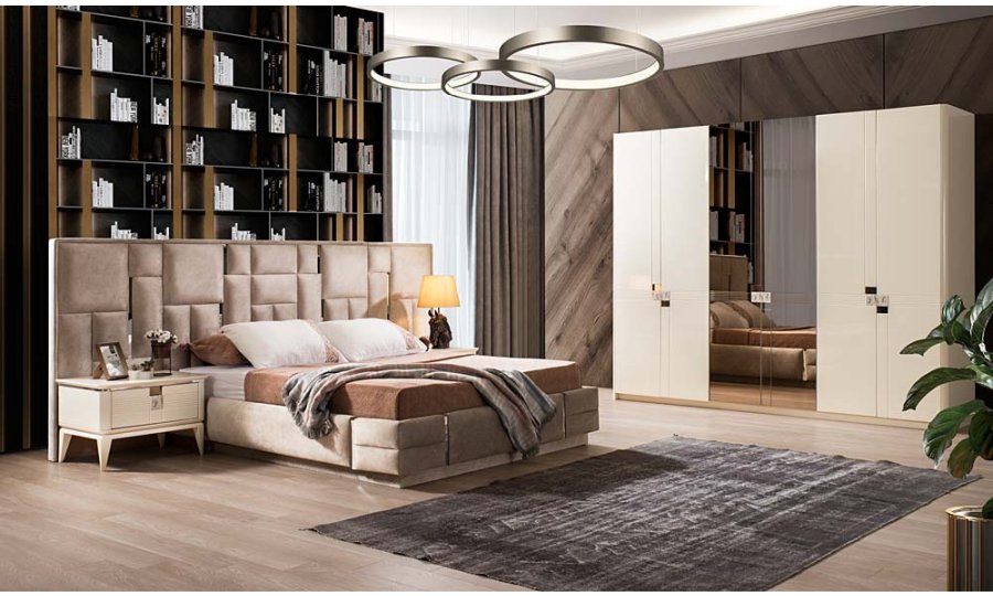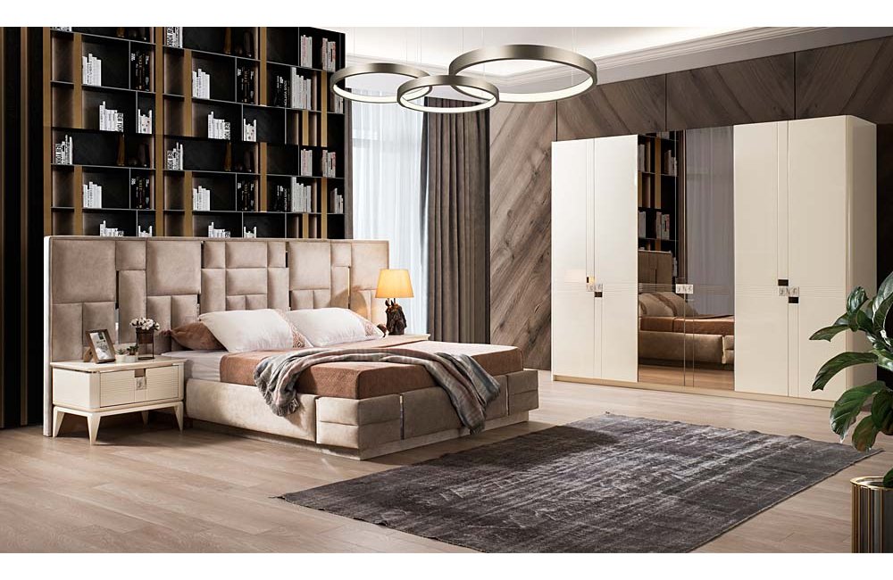 1ad. dolap, 1ad. Karyola(bazalı), 1ad. şifonyer, 1ad.şifonyer aynası, 1 ad. şifonyer pufu ve 2ad. komodinden oluşmaktadır.