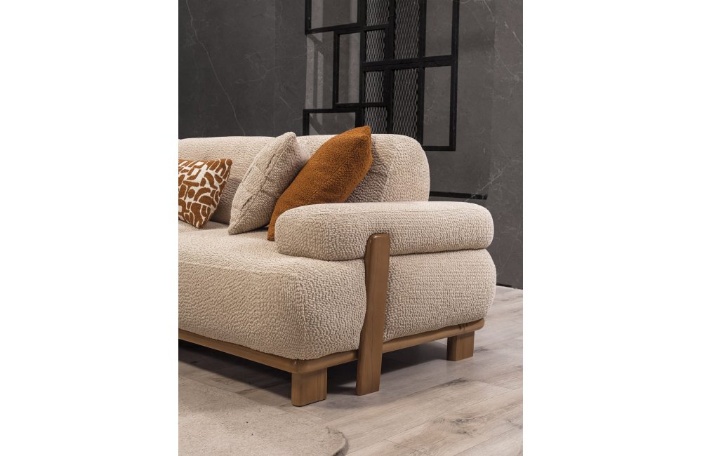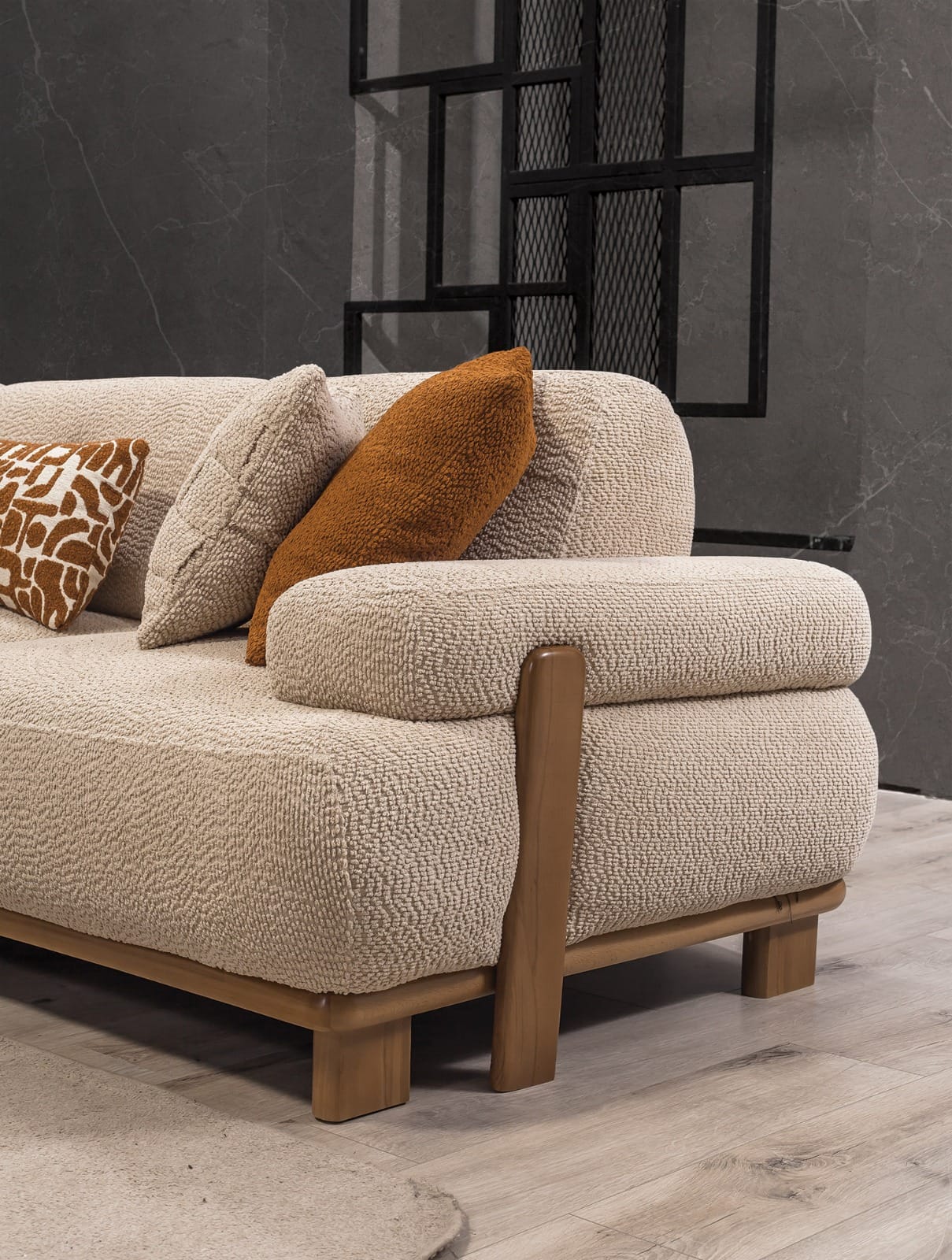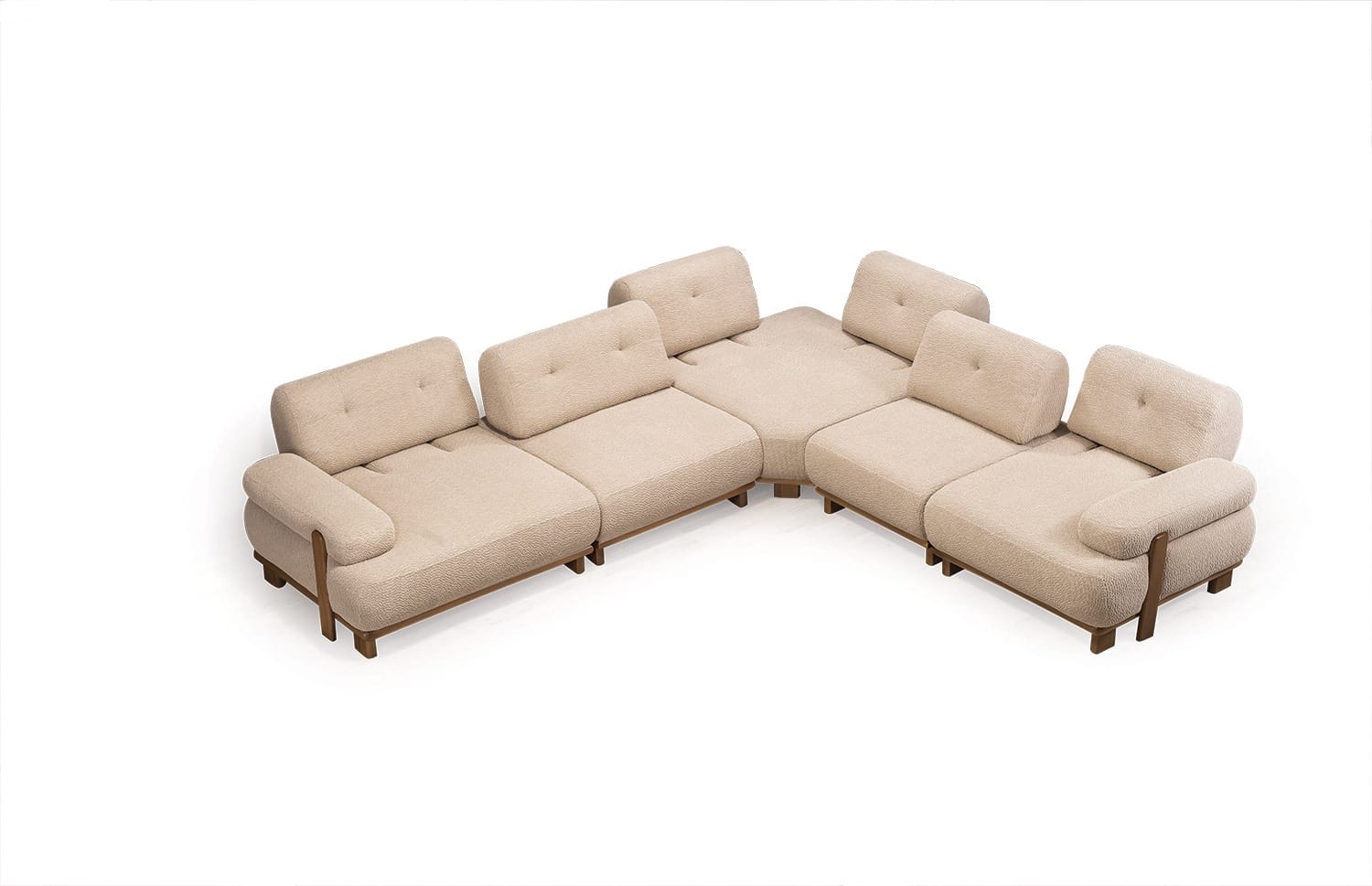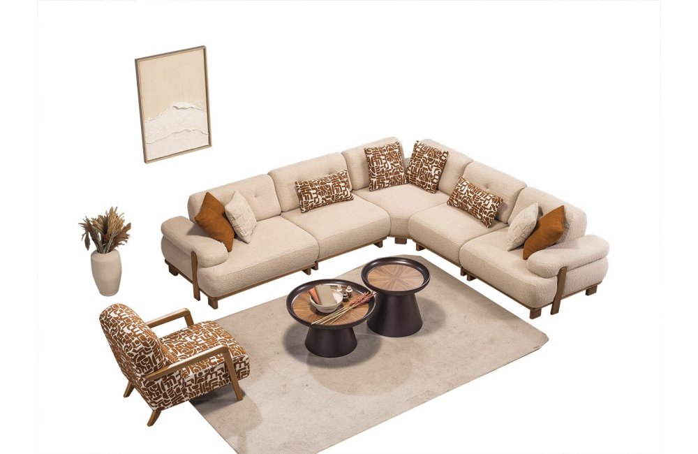 1ad. 90cm kollu modül, 1ad. 90cm ara piyon, 1ad. köşe modül, 1ad. 70cm ara piyon ve 1ad. 70cm kollu modülden oluşmaktadır. Dinlenme modül, berjer, ara sehpa ve sehpa üstü tepsi opsiyonel satılmaktadır.