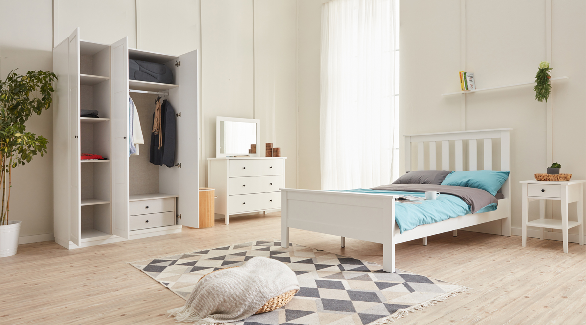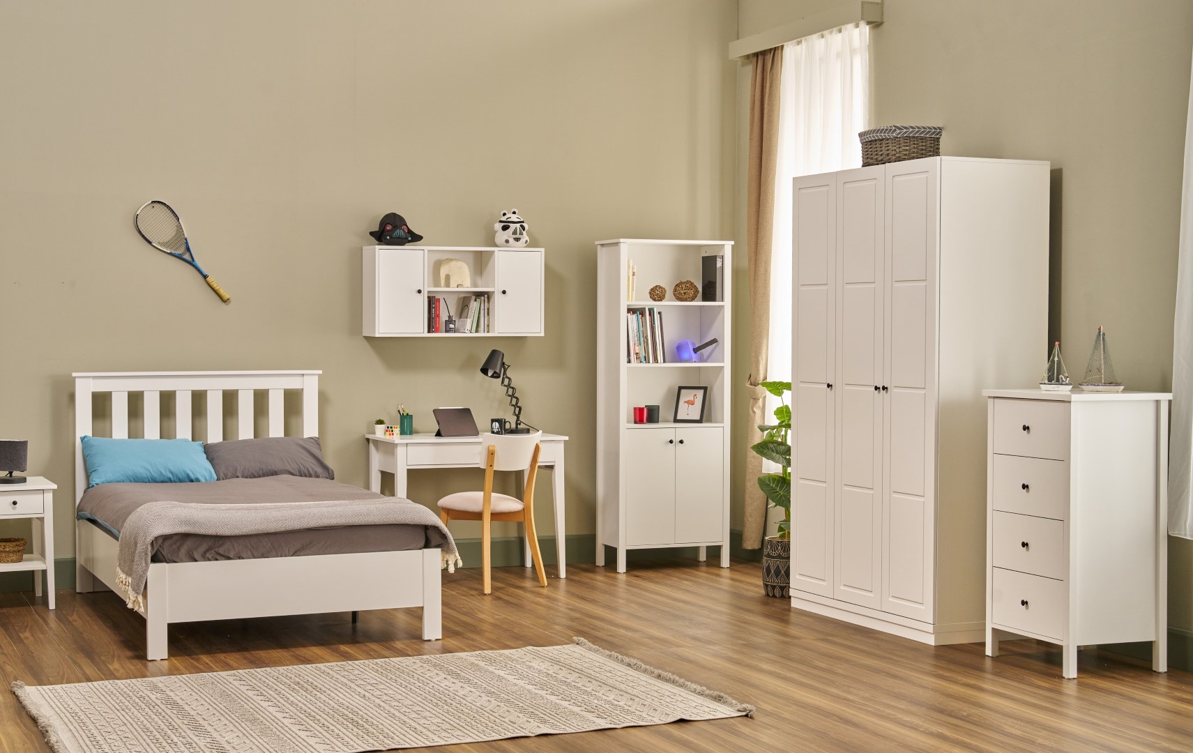 1 adet 120x200 başlıklı karyola,1 adet 3 kapaklı dolap ve 1 adet çift çekmeceli komodinden oluşmaktadır.