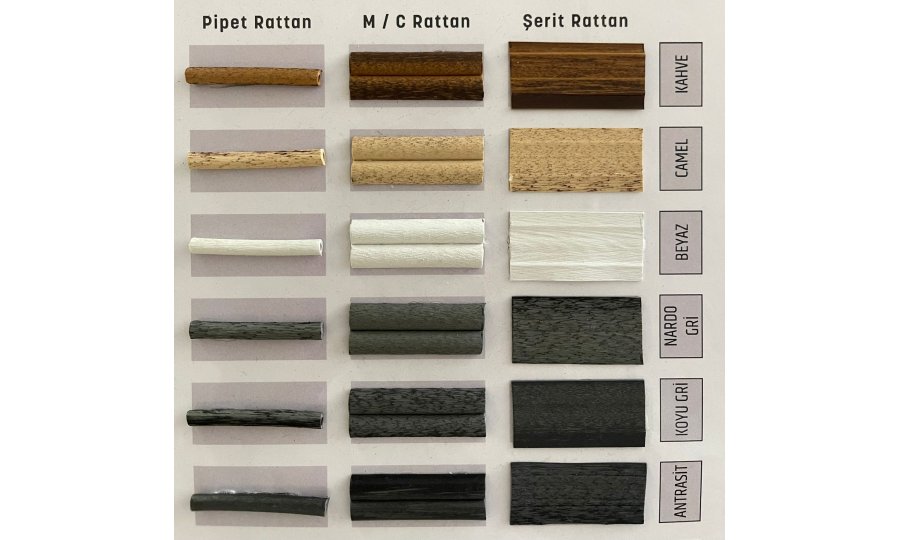 • Dış mekâna dayanıklı Uv katkılı 1. sınıf sentetik rattan malzeme kullanılarak üretilmiştir.