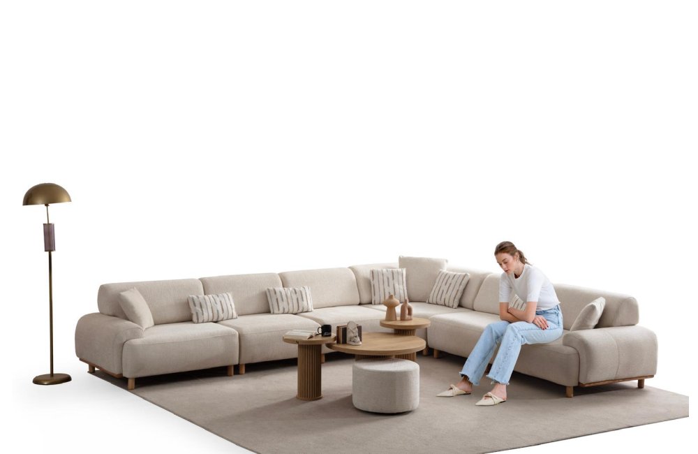 2ad. sağ-sol kollu modül, 3ad. ara modül, 1ad. köşeden oluşmaktadır. Dinlenme modül, berjer ve puf opsiyonel satılmaktadır.