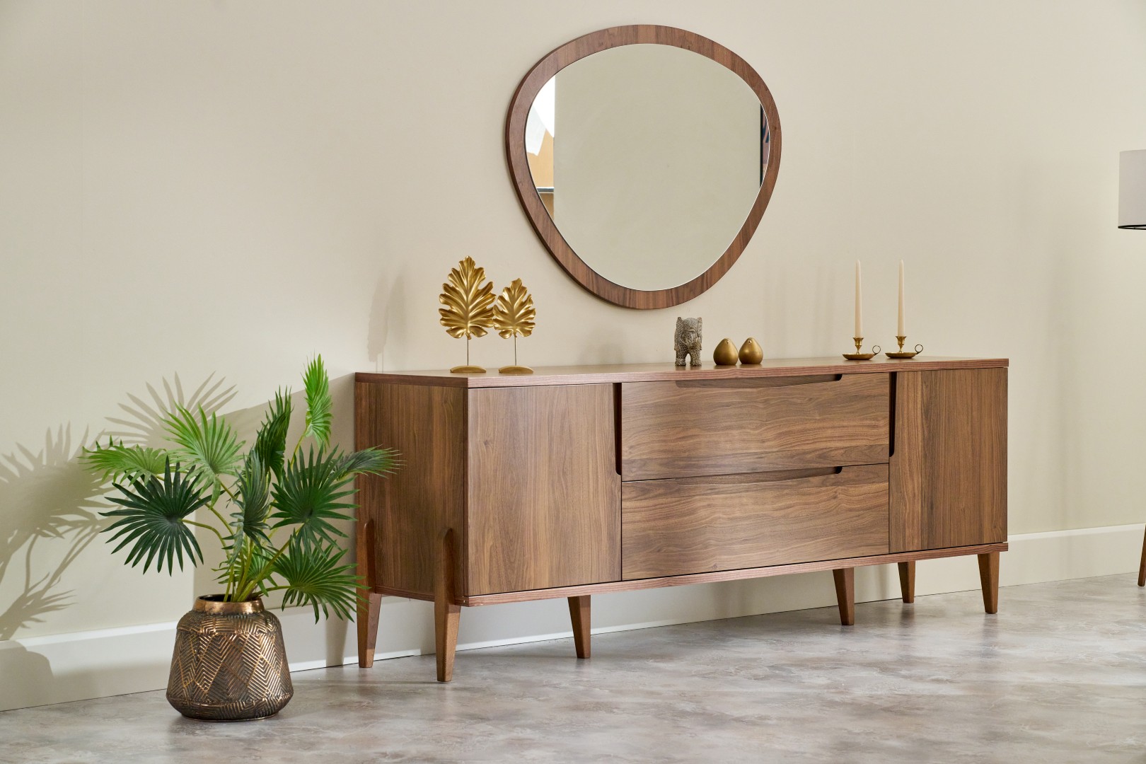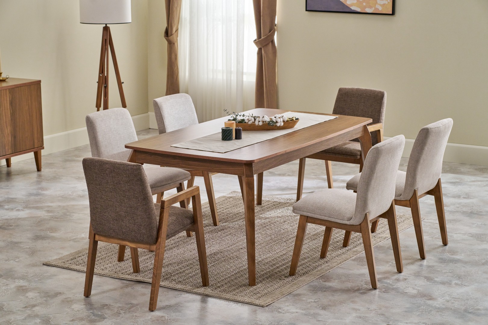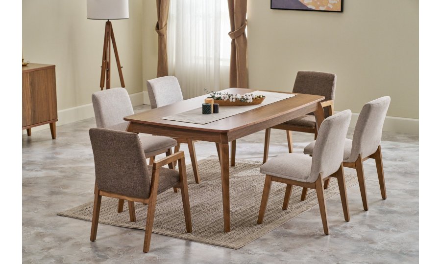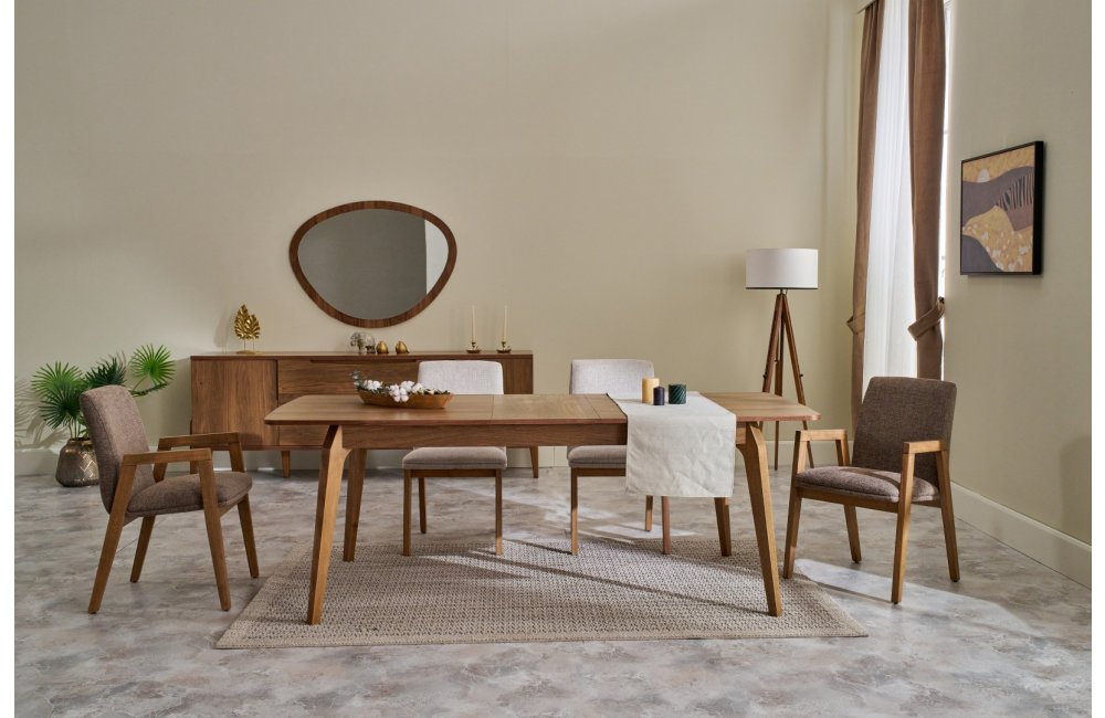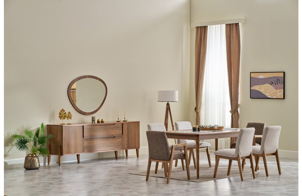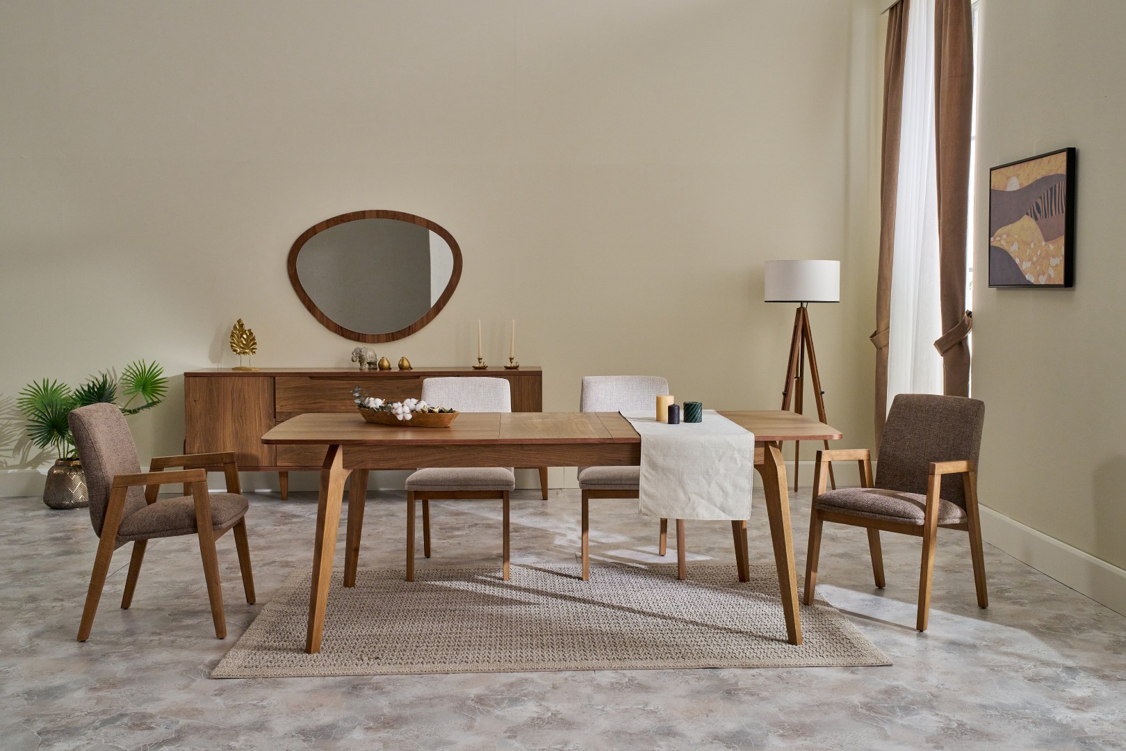 1 ad. konsol (aynalı), 1 ad. açılır masa, 6 ad. sandalyeden oluşmaktadır. Orta sehpa opsiyonel olarak satışa sunulmuştur.