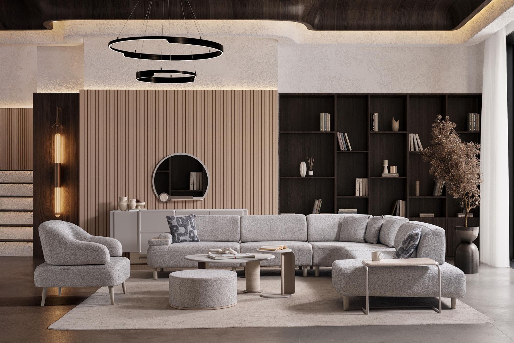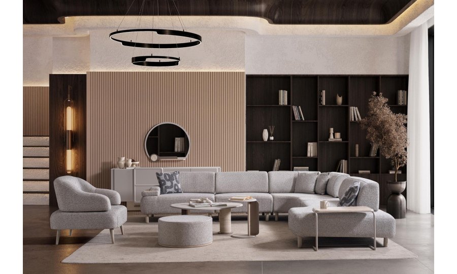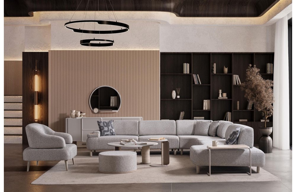 1 ad. 120'lik kollu modül, 1 ad. 90'lık ara modül, 1 ad. köşe modül, 1 ad. ara modül, 1 ad. dinlenmeli modülden oluşmaktadır.