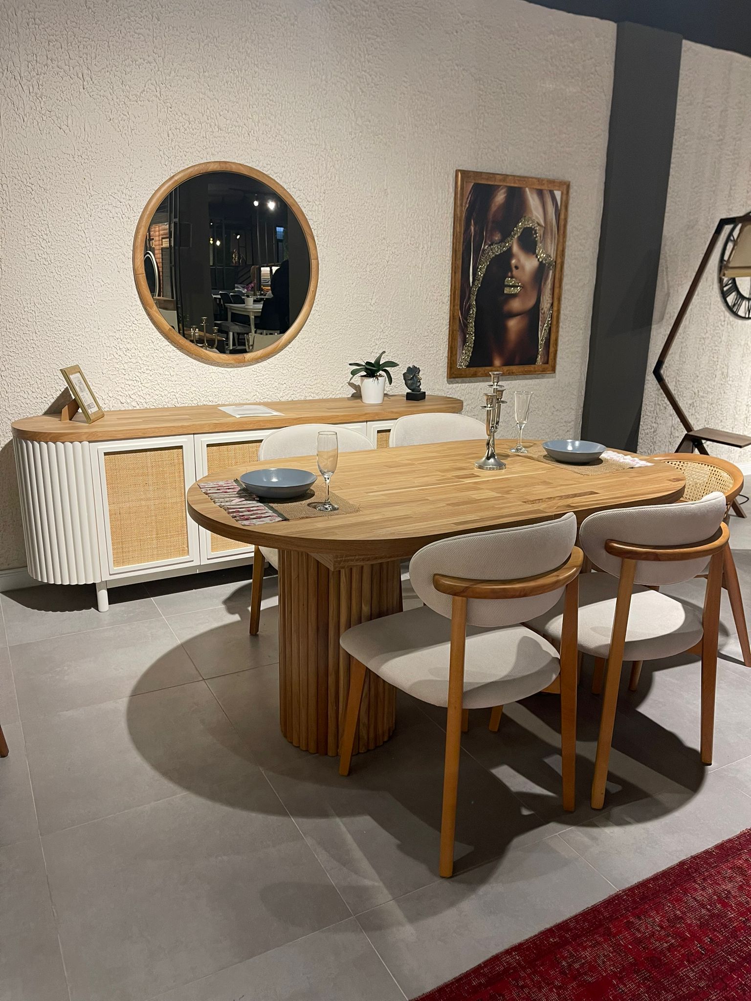 1ad.konsol,1ad.konsol aynası,1ad.açılır masa, 6ad.sandalyeden oluşmaktadır.