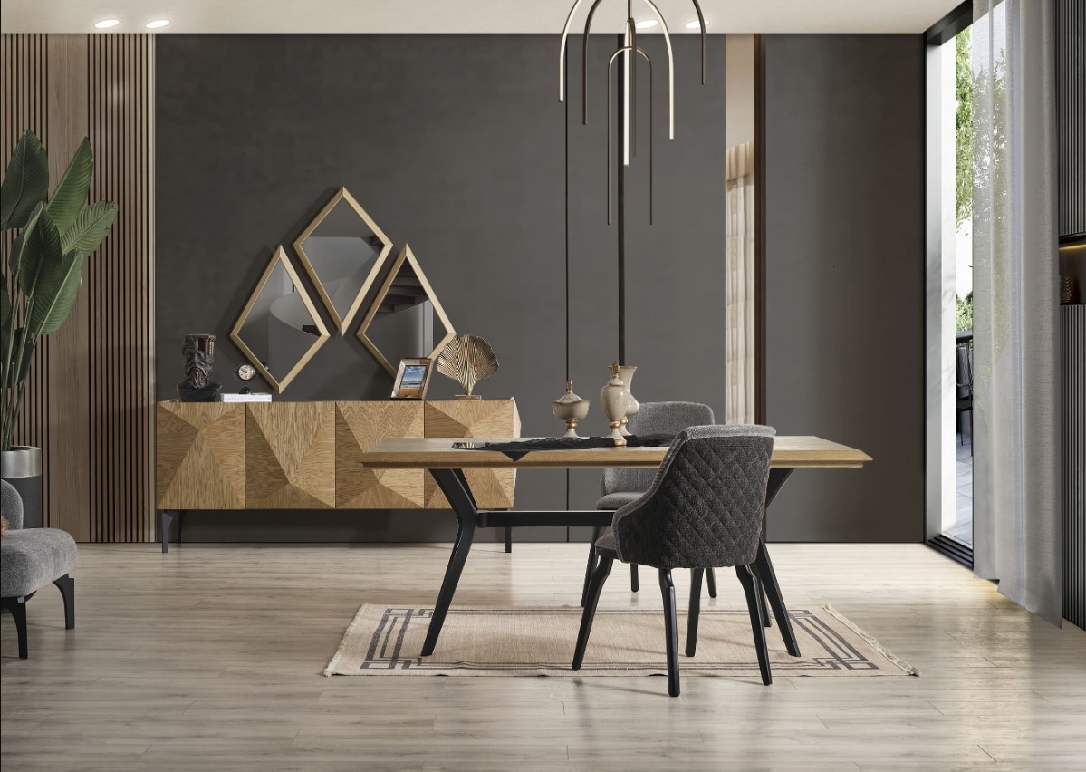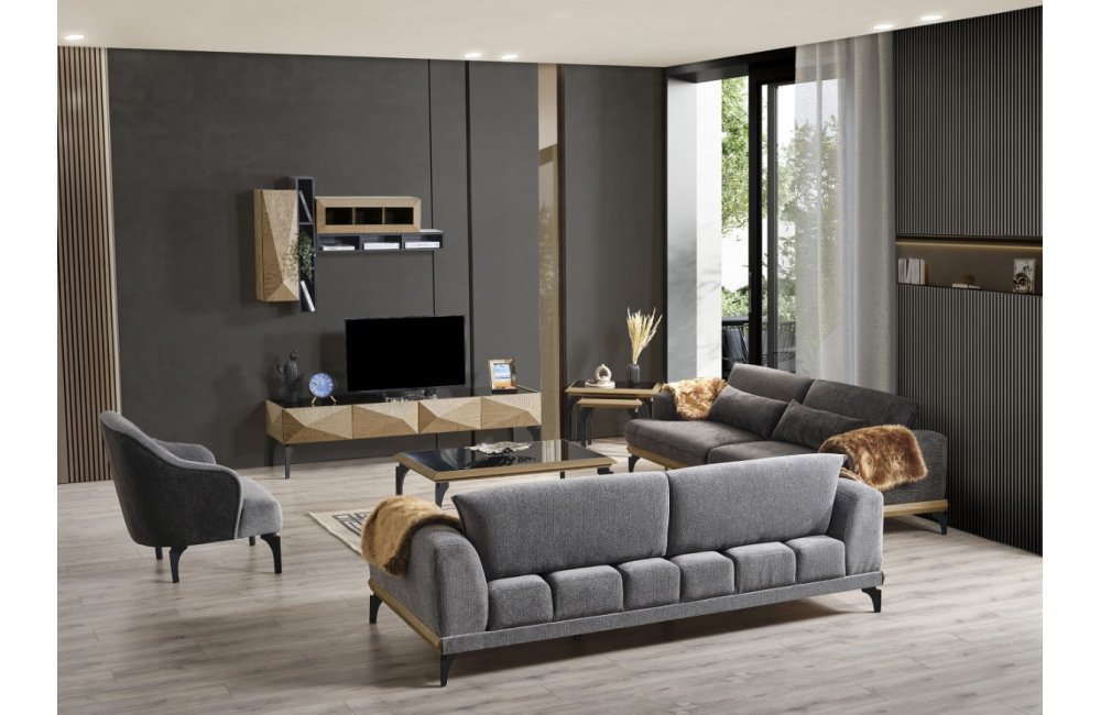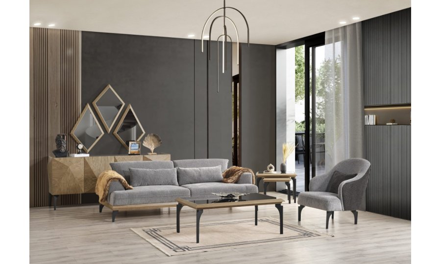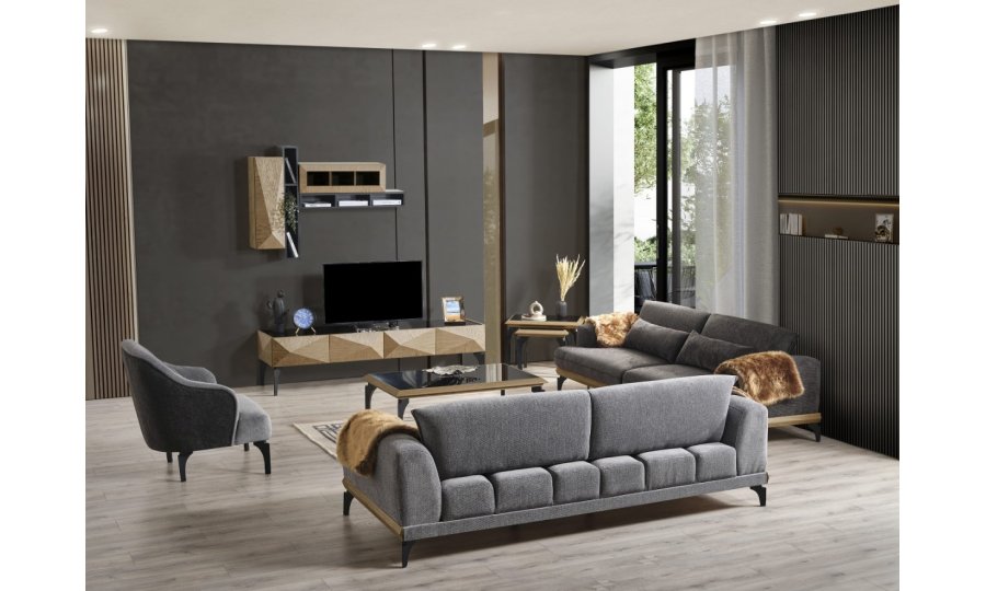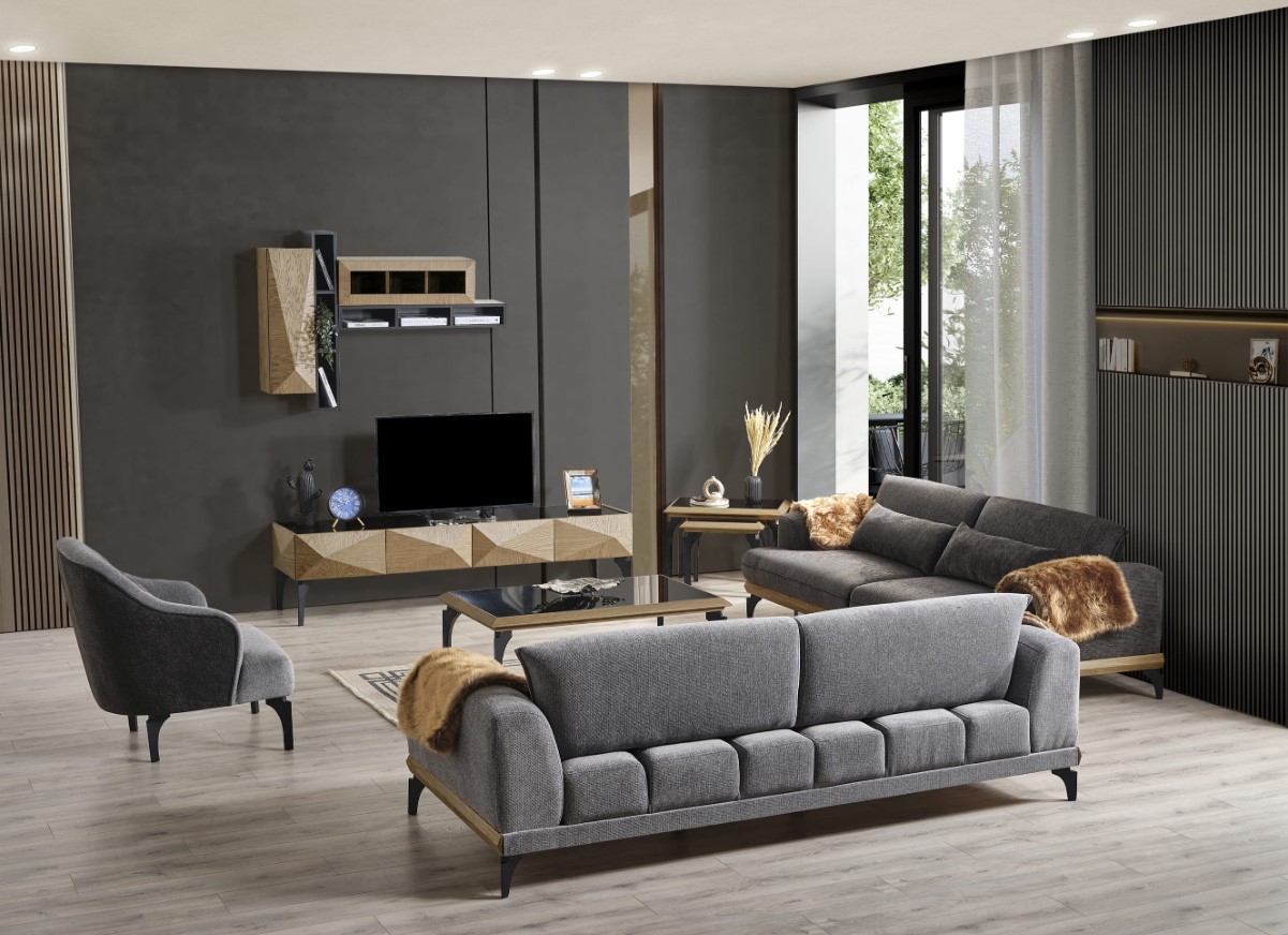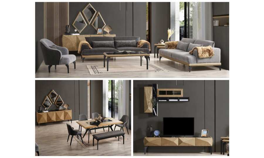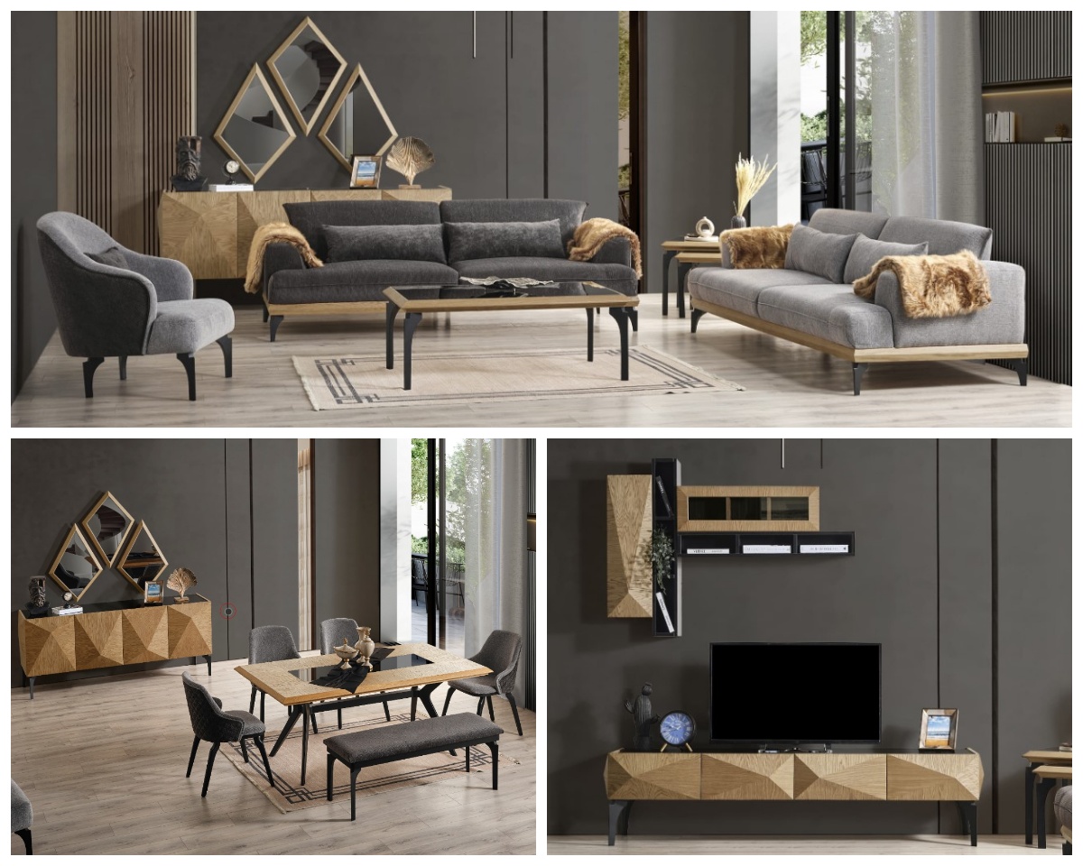 Koltuk Takımı(3+3+1+1), Yemek Odası(Konsol+ayna+masa+6ad.sandalye), TV ünitesinden oluşmaktadır