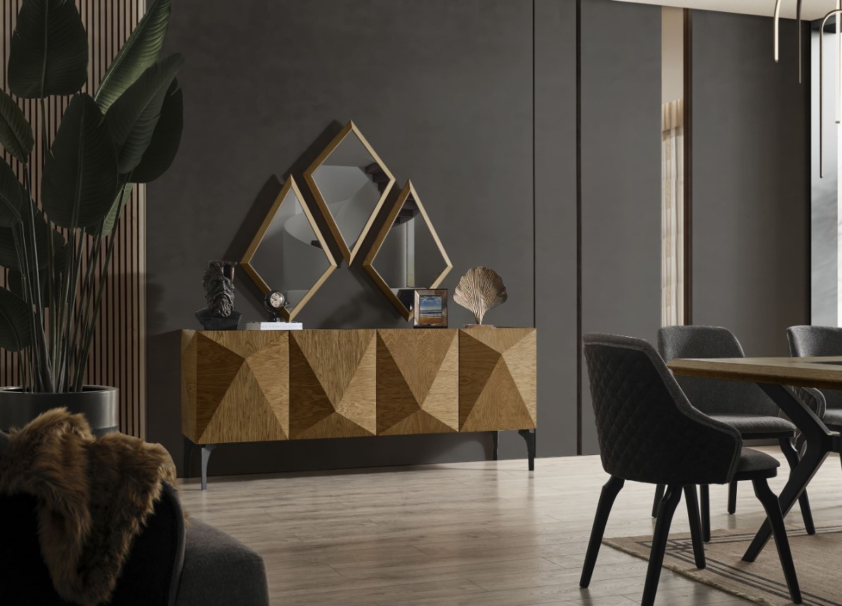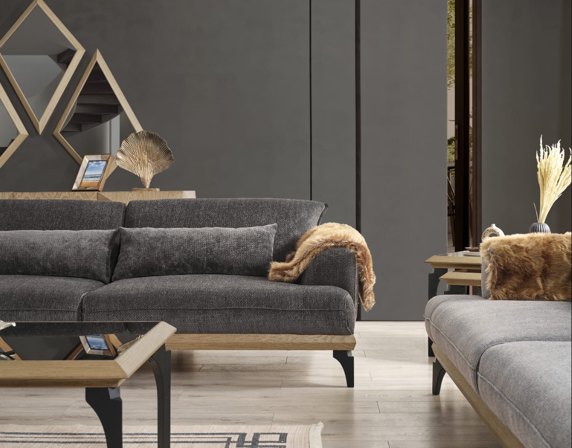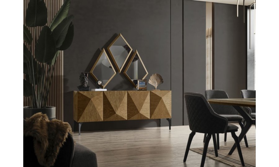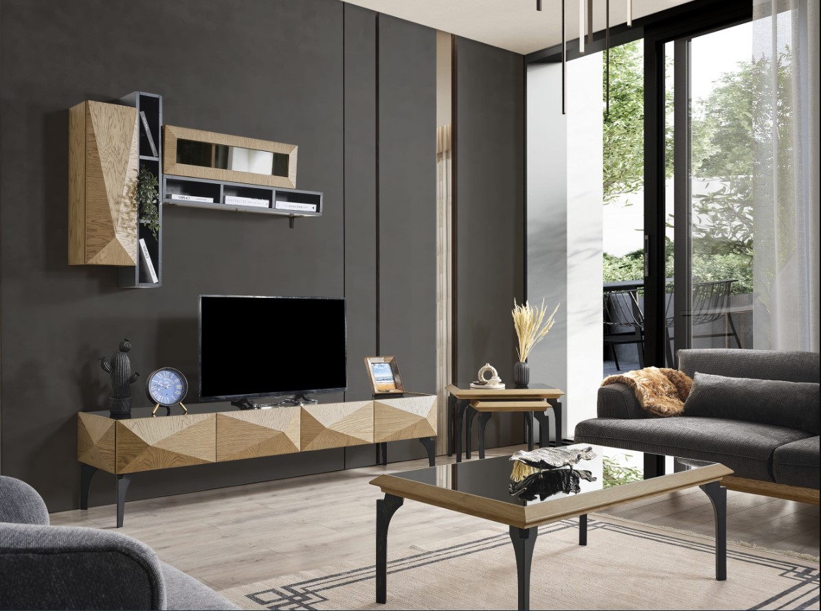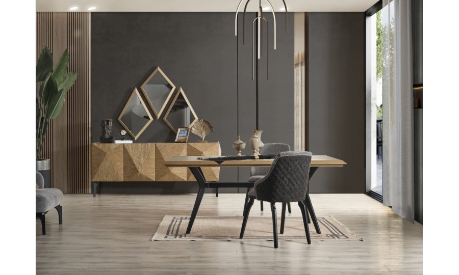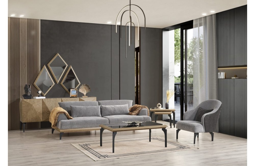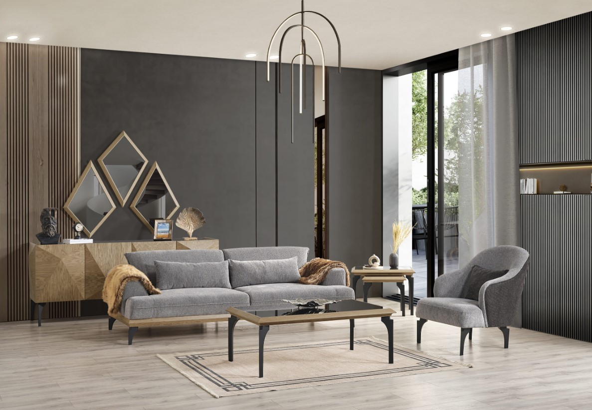 Koltuk Takımı(3+3+1+1), Yemek Odası(Konsol+ayna+masa+6ad.sandalye), TV ünitesinden oluşmaktadır