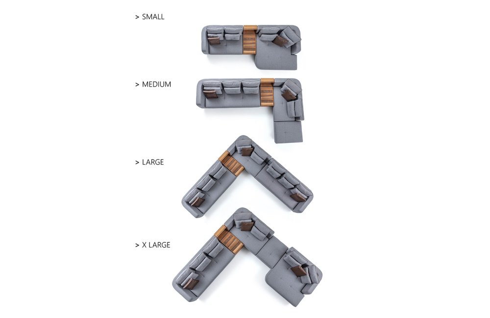 2ad. kanepe modül, 1ad. sehpa, 1ad. ikili kollu modülden oluşmaktadır. Diğer modüller opsiyonel olarak satışa sunulmuştur. Dilediğiniz parçaları seçerek köşenizi oluşturabilirsiniz.
