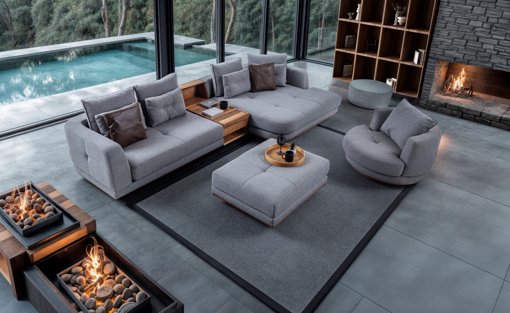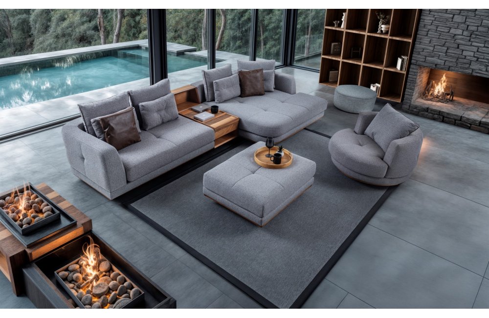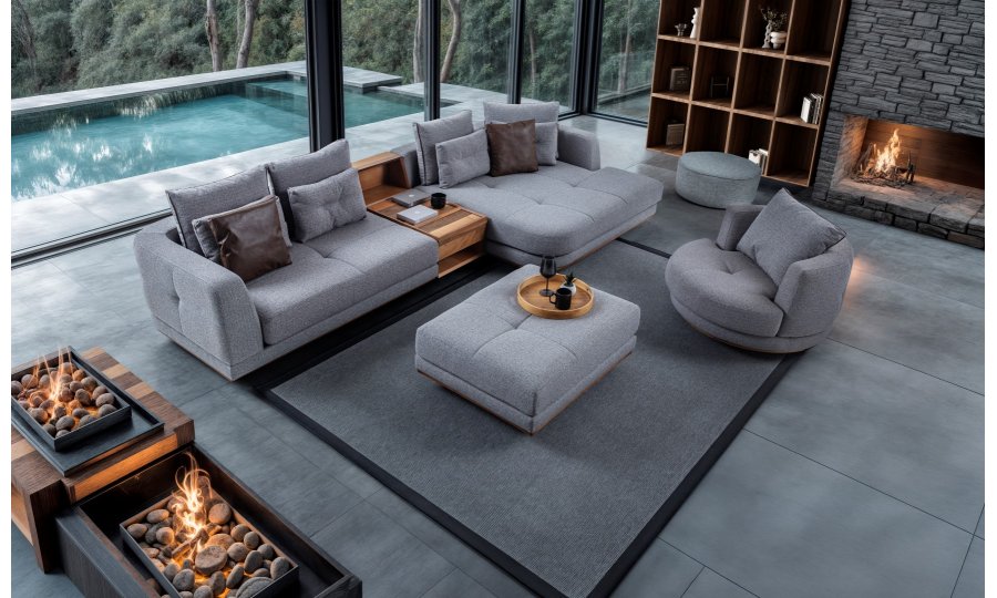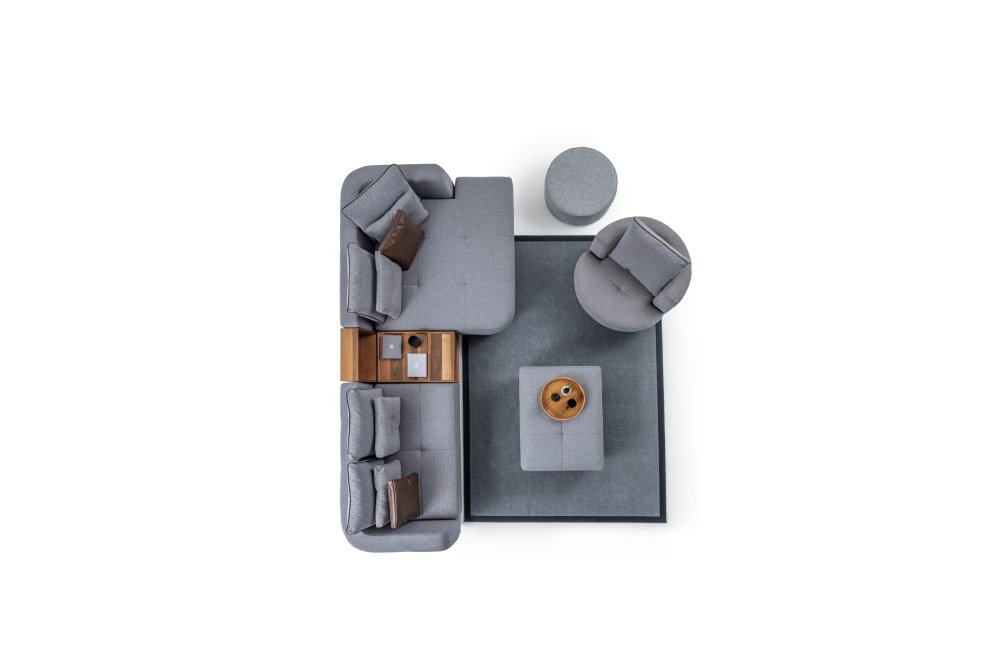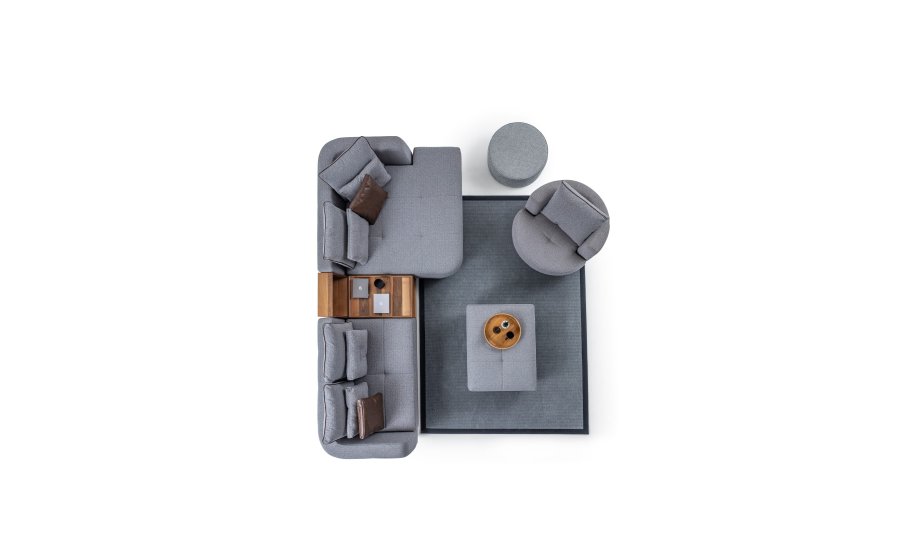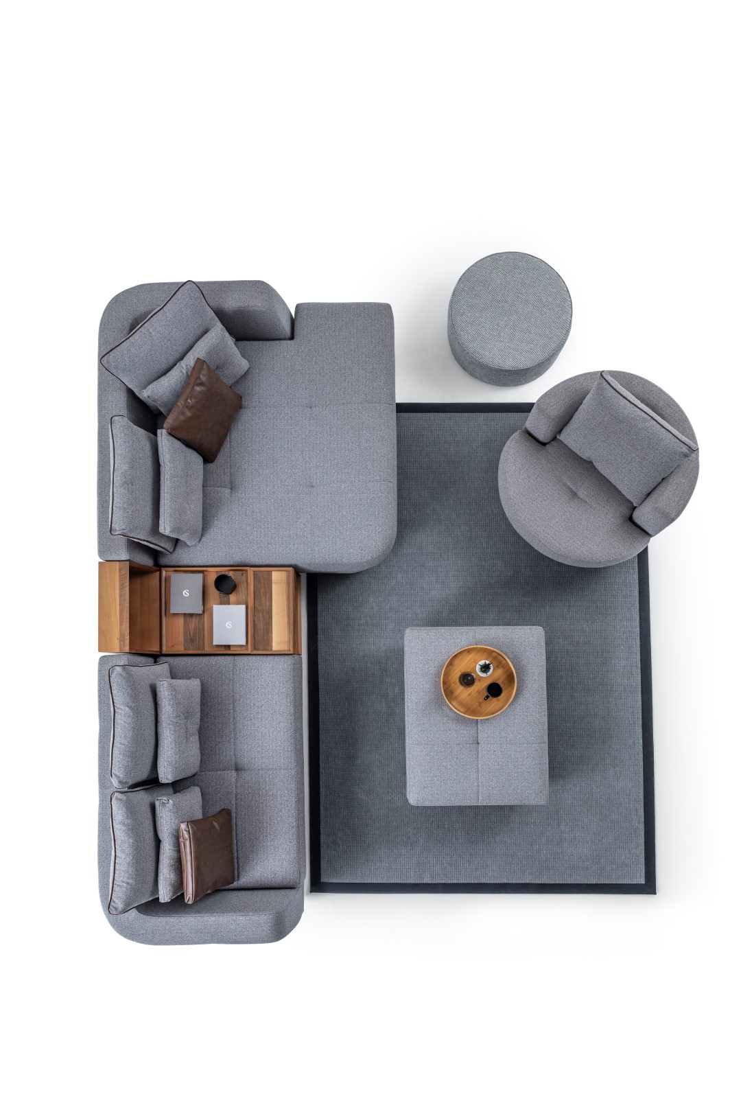 1 ad. 2'li kollu modül, 1ad. ahşap sehpa, 1ad. relax modülden oluşmaktadır. Diğer modüller opsiyonel olarak satışa sunulmuştur.