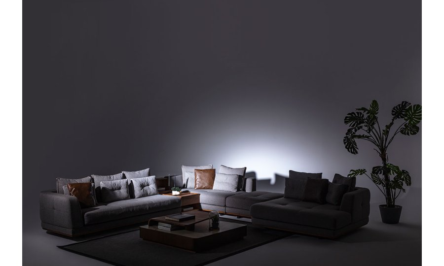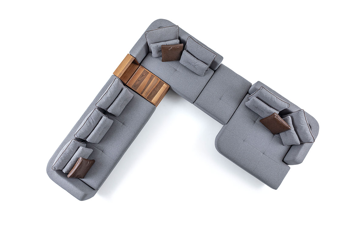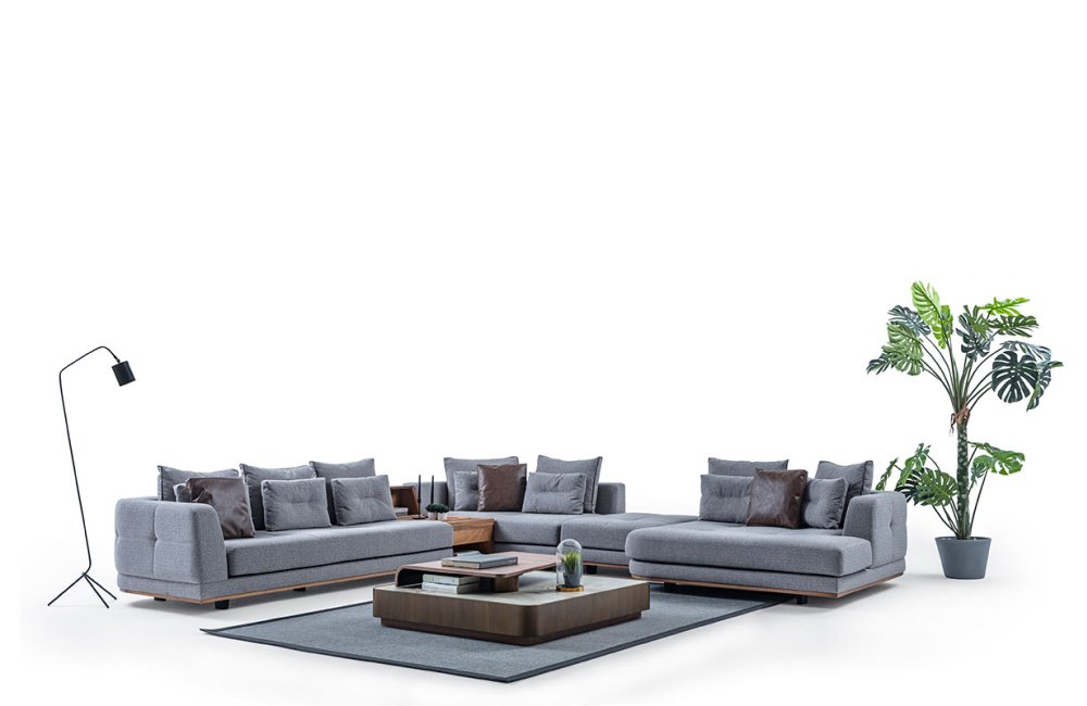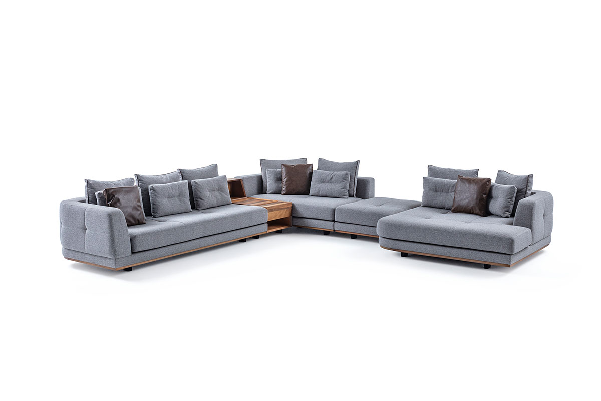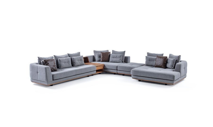 1ad. kanepe modül, 1ad. sehpa, 1ad. ikili kollu modül, 1ad. puf, 1ad. relax modülden oluşmaktadır. Diğer modüller opsiyonel olarak satışa sunulmuştur. Dilediğiniz parçaları seçerek köşenizi oluşturabilirsiniz.